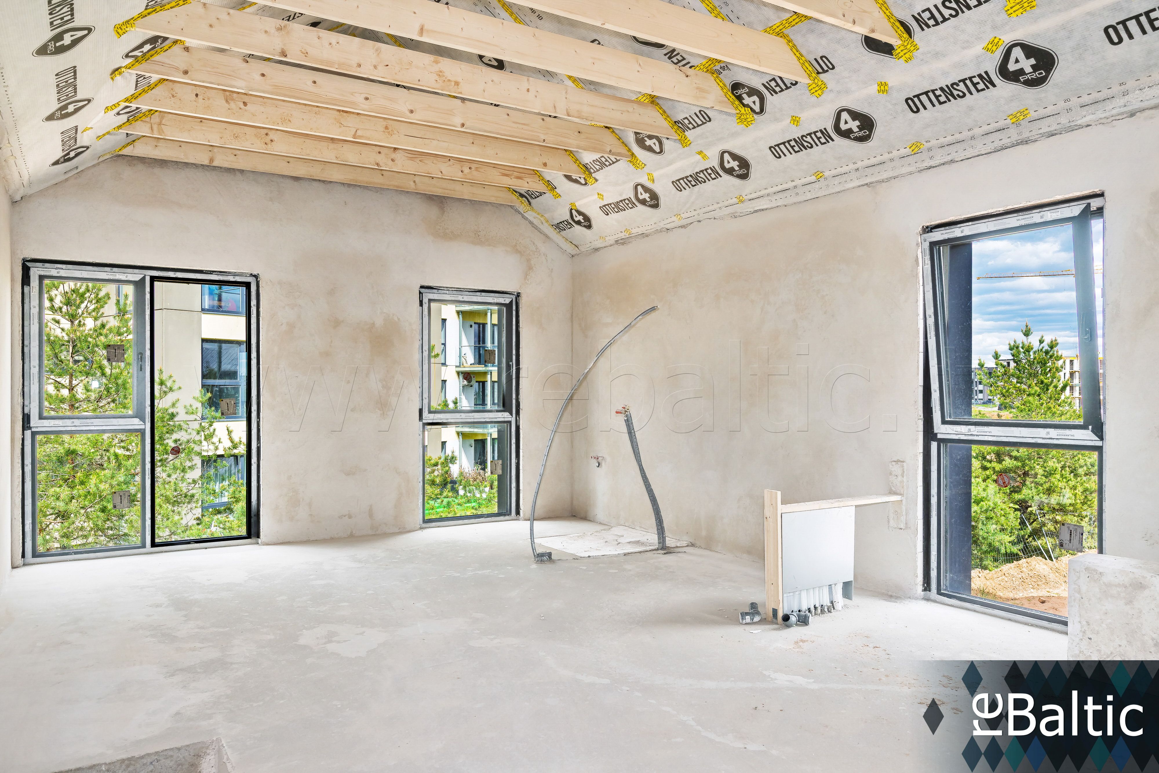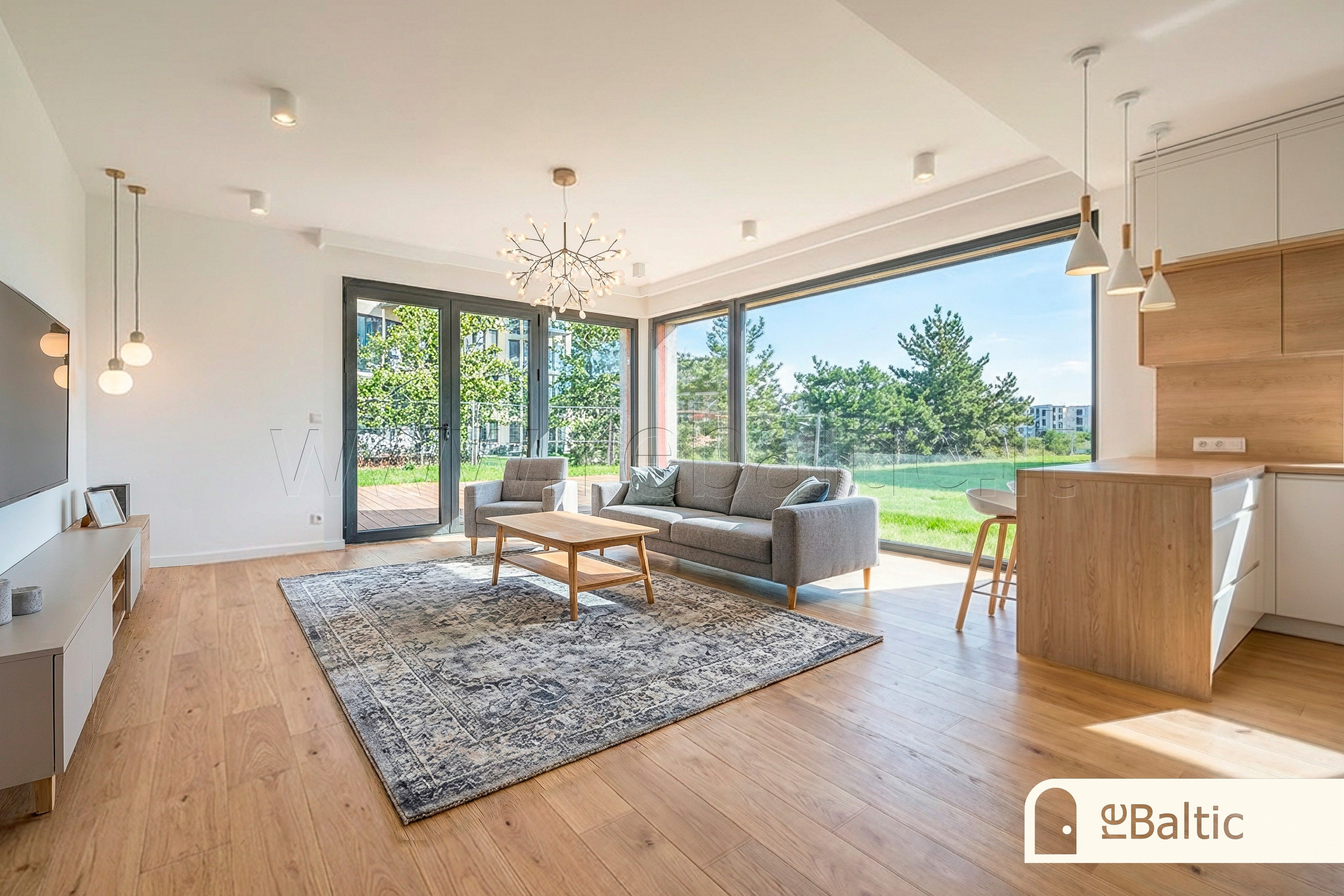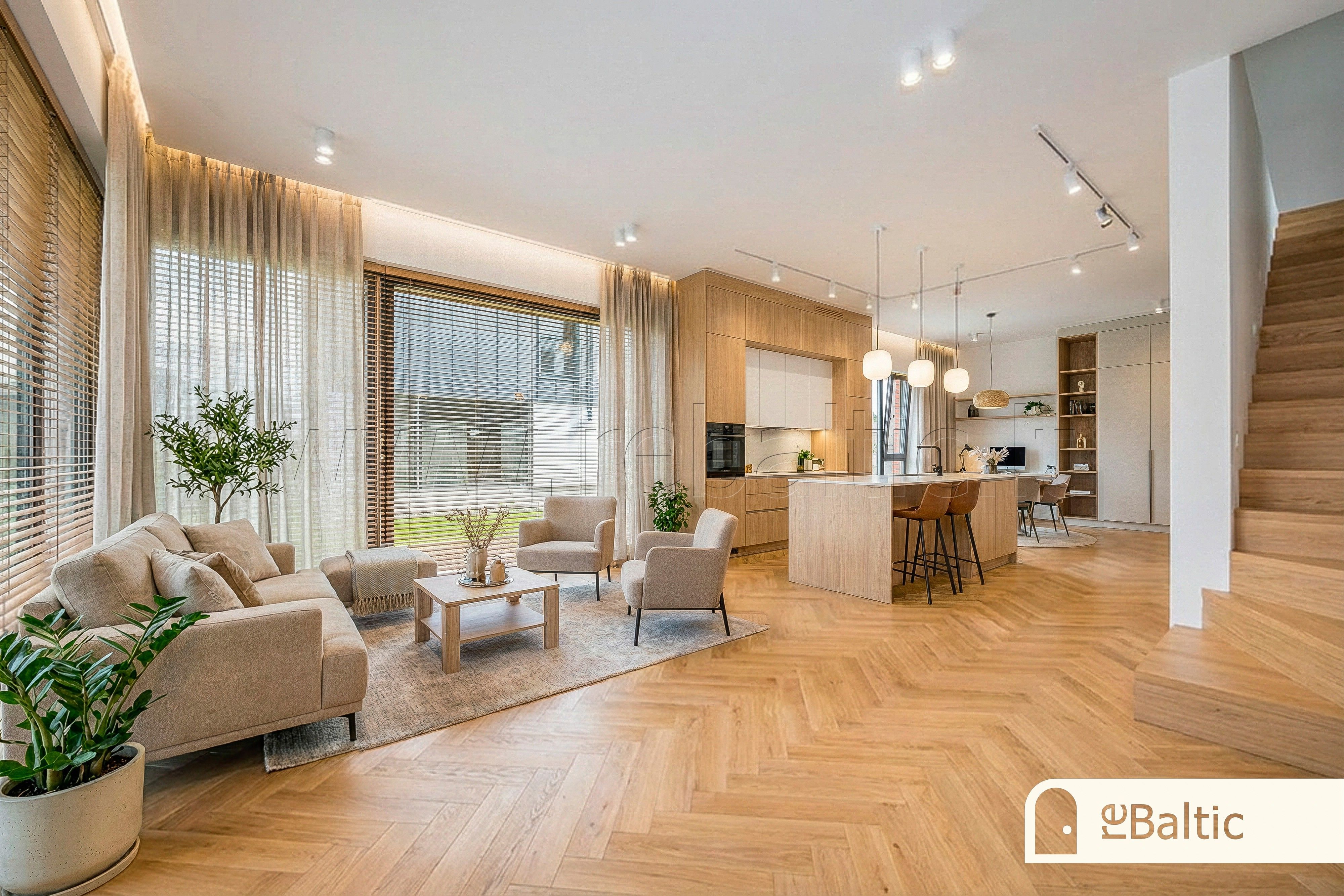 ✓ Svetainėje ~2,8 m. lubos, dideli langai rytų-pietų-šiaurės kryptimis