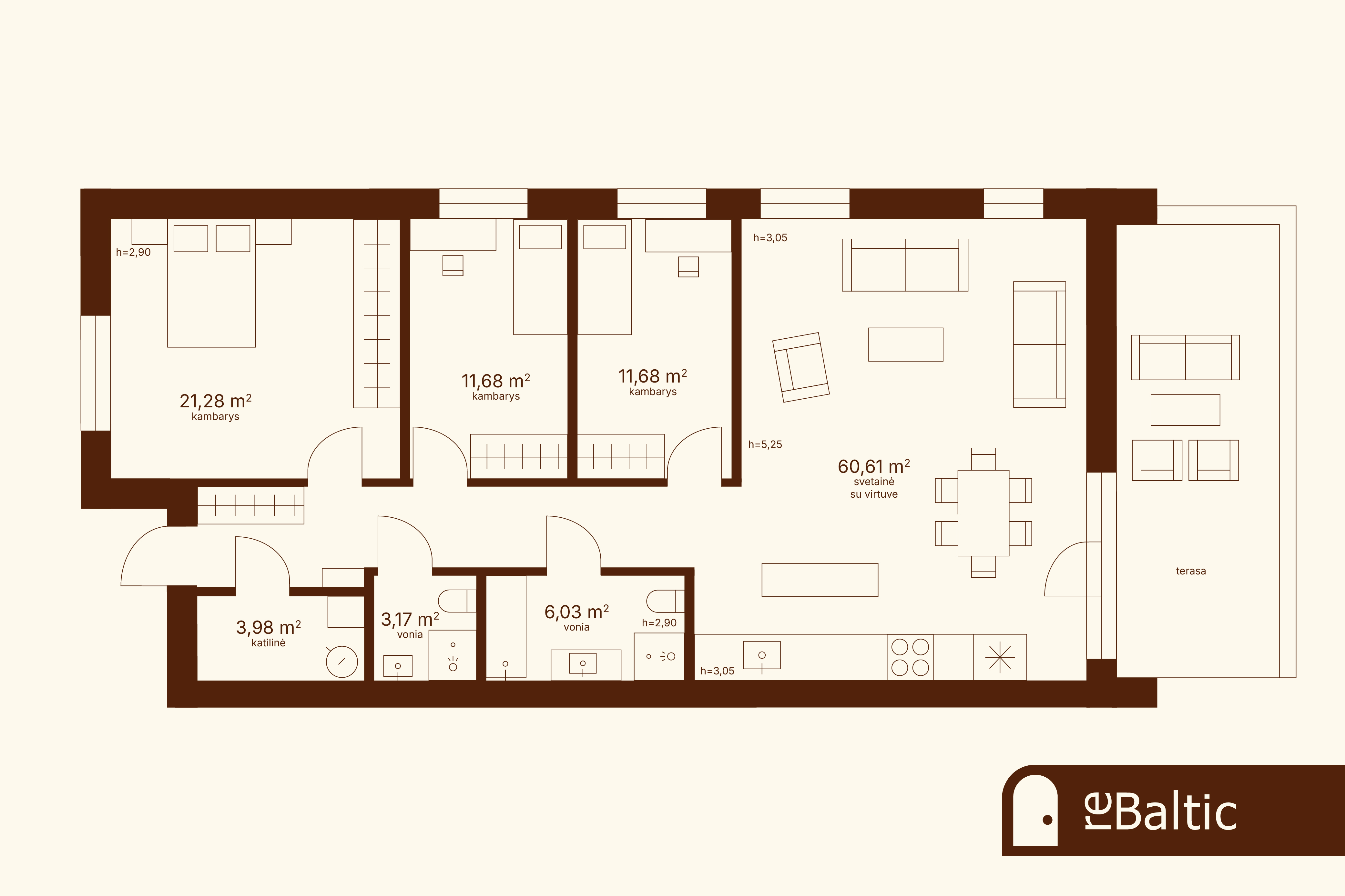- Geräumiges Wohnzimmer, Hauptschlafzimmer mit separater Ankleide, ein gemütliches Kinderzimmer und ein separates Arbeitszimmer.