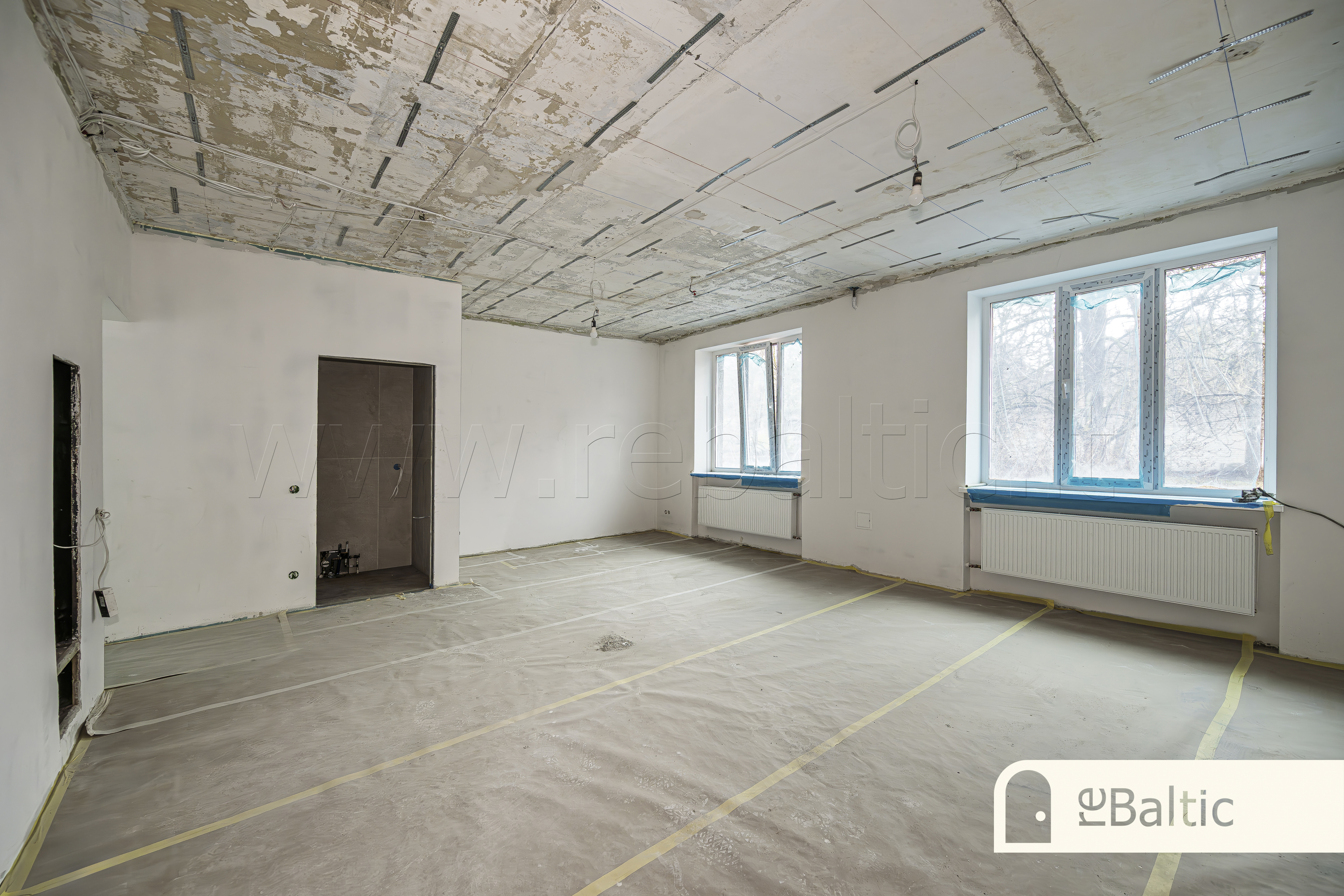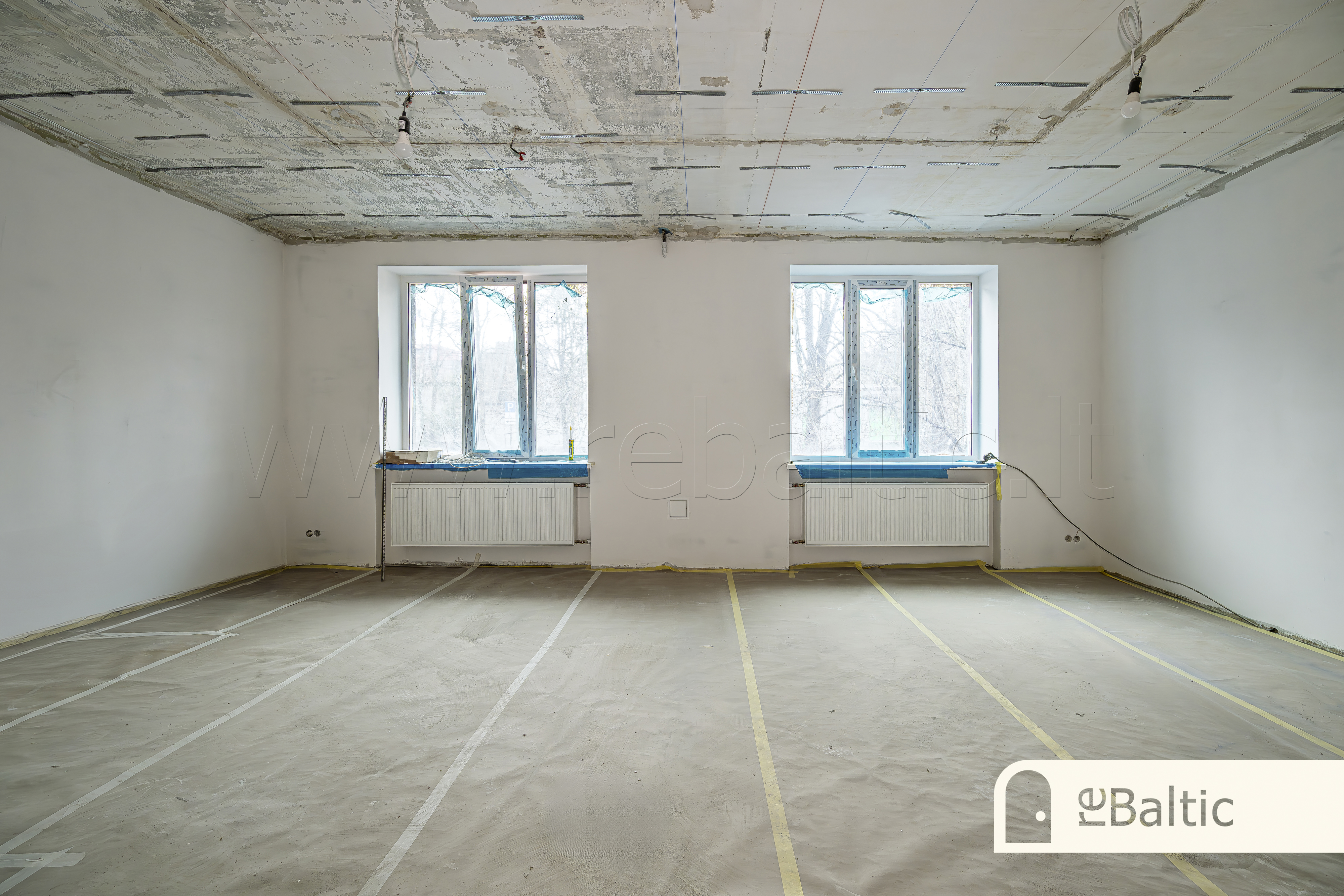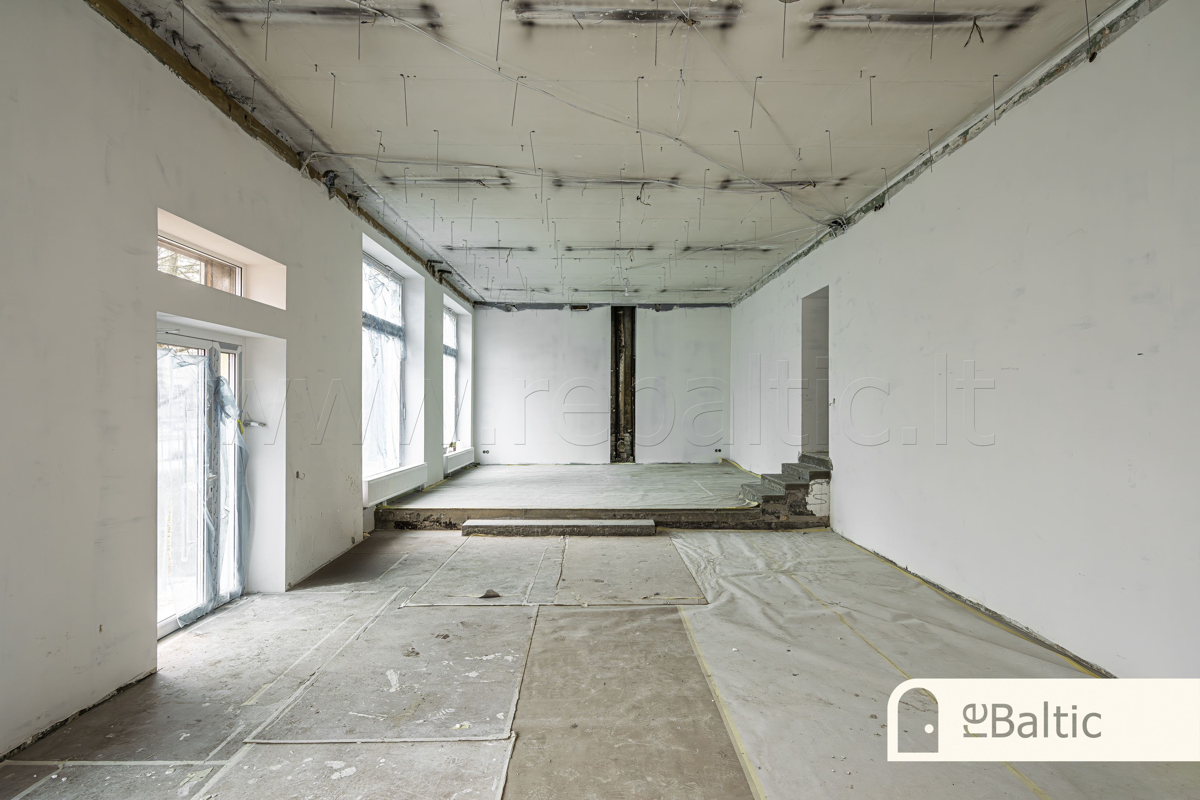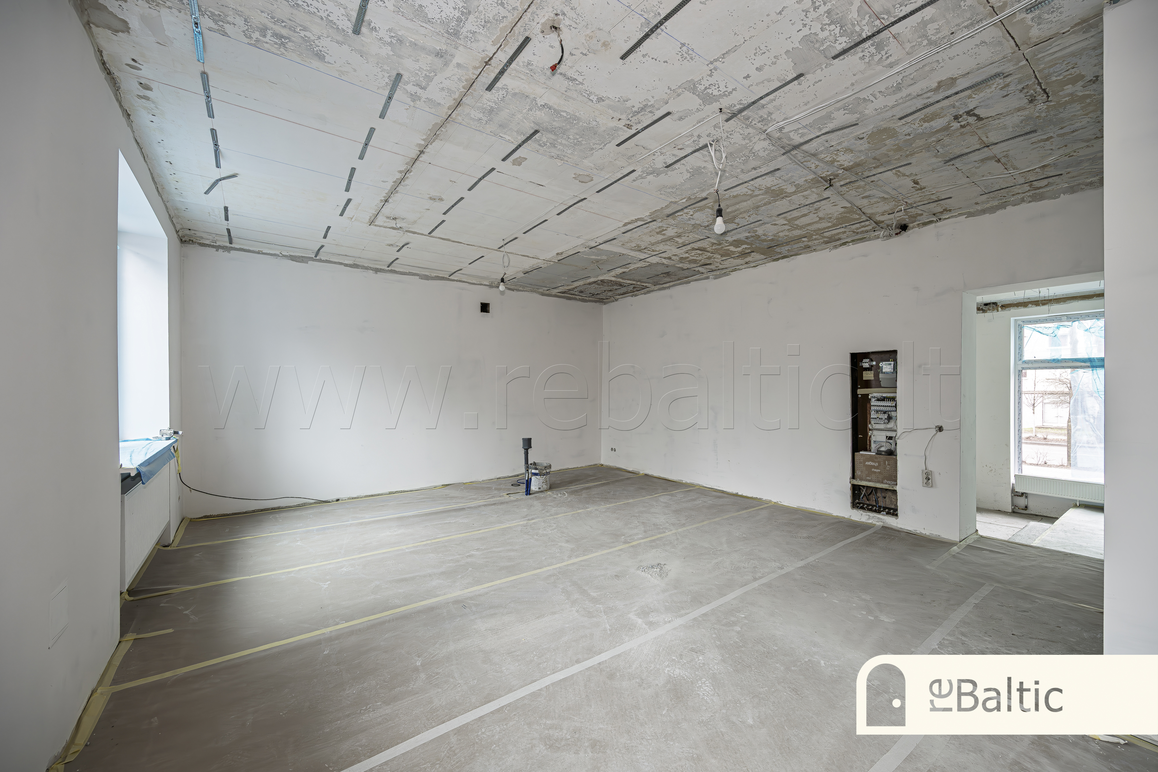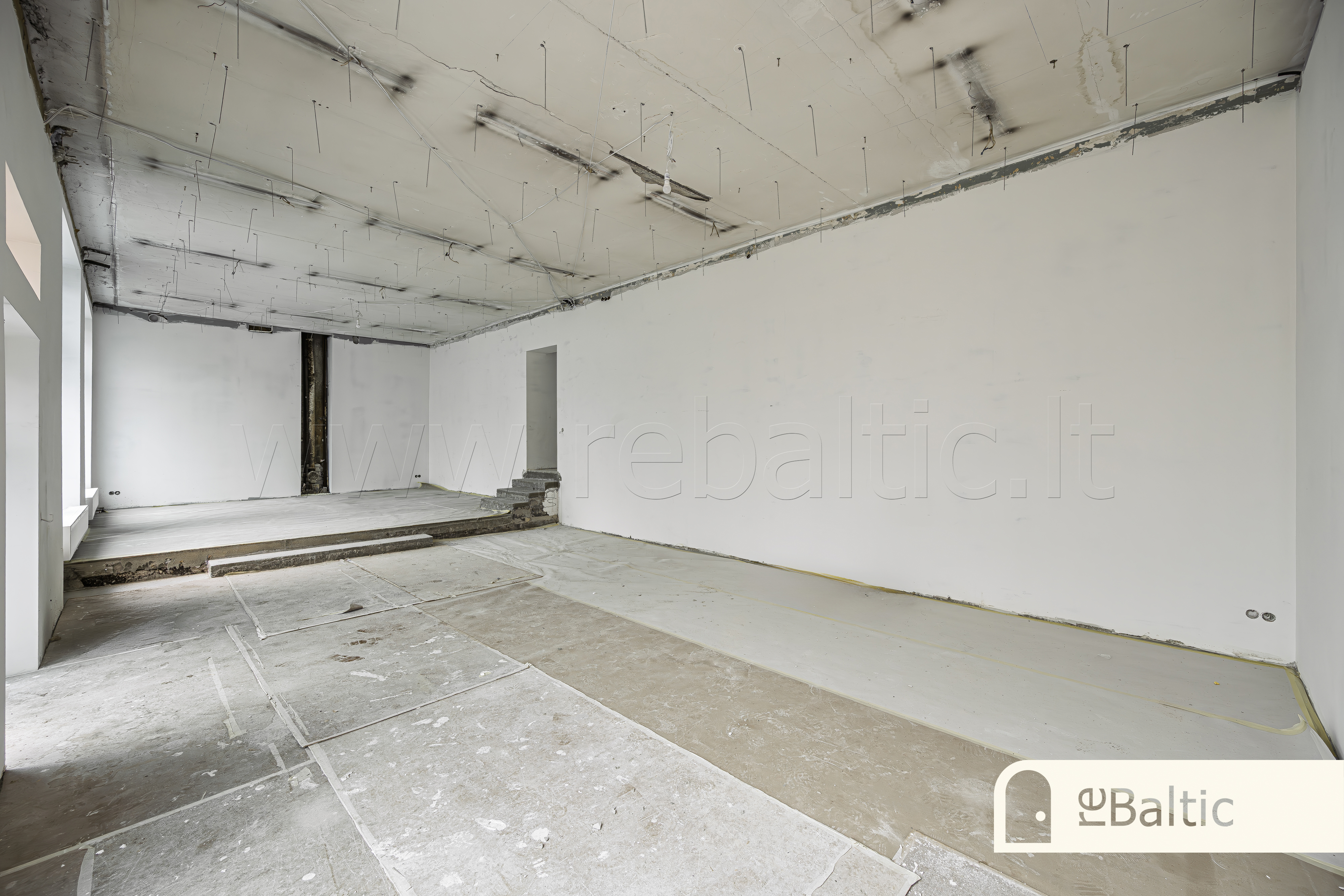 - Dabartinis išdėstymas - dvi didelės erdvės ir WC. Galimas erdvių formavimas pagal jūsų poreikius, savininkai gali atlikti kosmetinį remontą su ilgalaike nuomos sutartimi