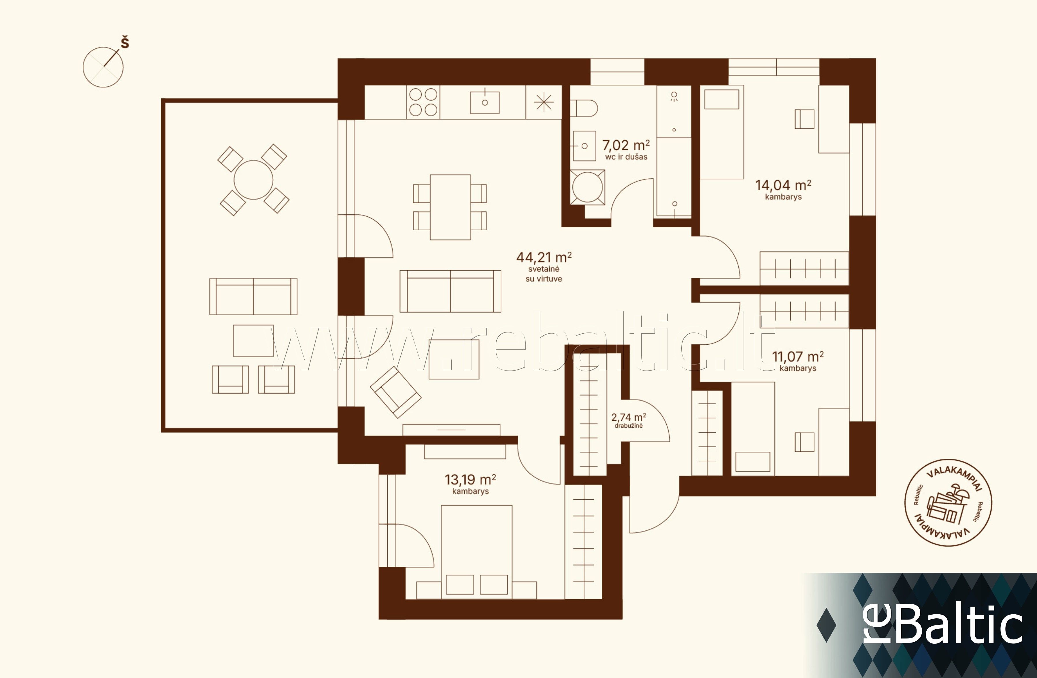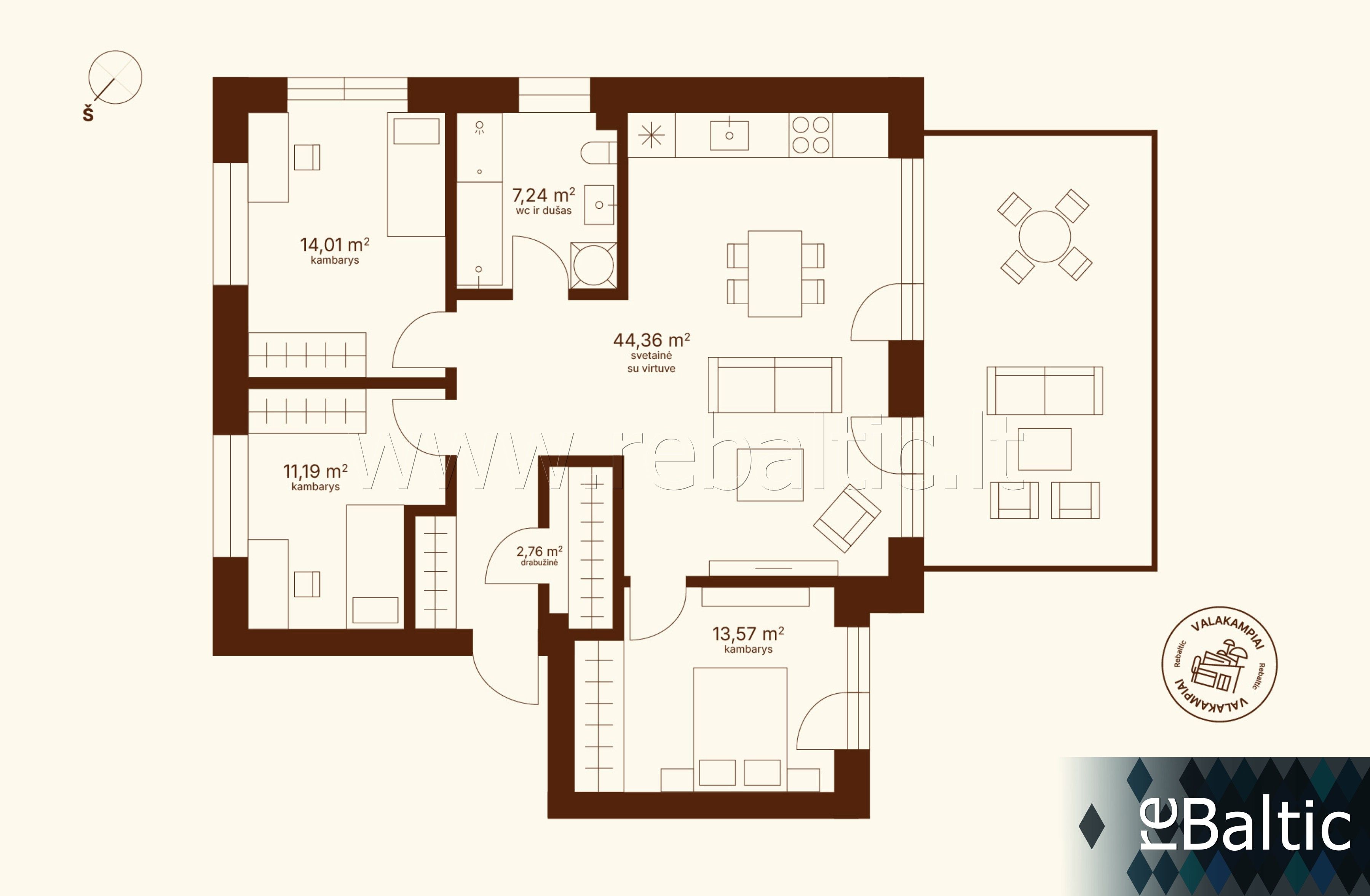 - Trys miegamieji kambariai