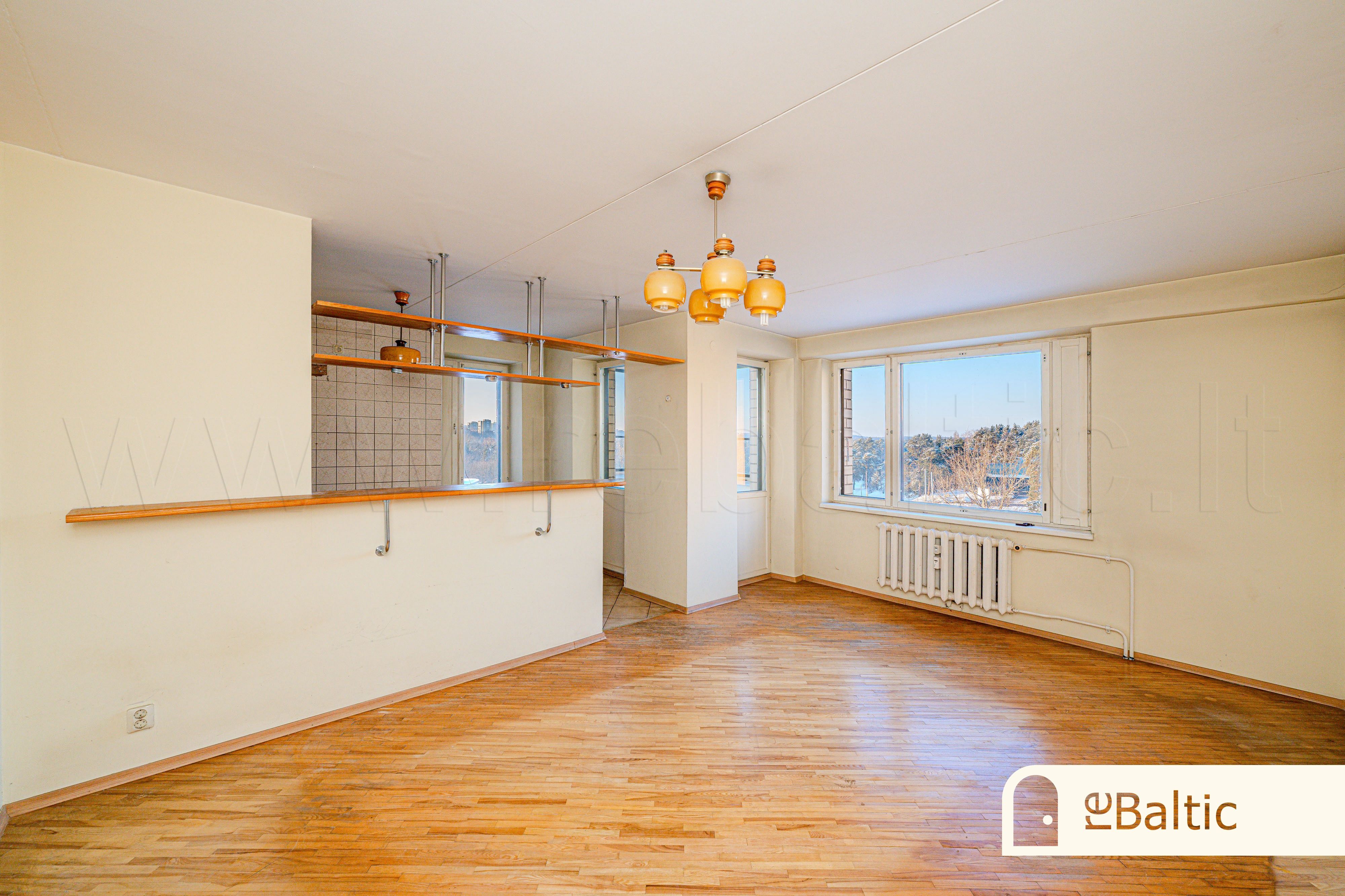 • Erdvi svetainė dalinai sujungta su virtuve (du išėjimai į balkoną).
