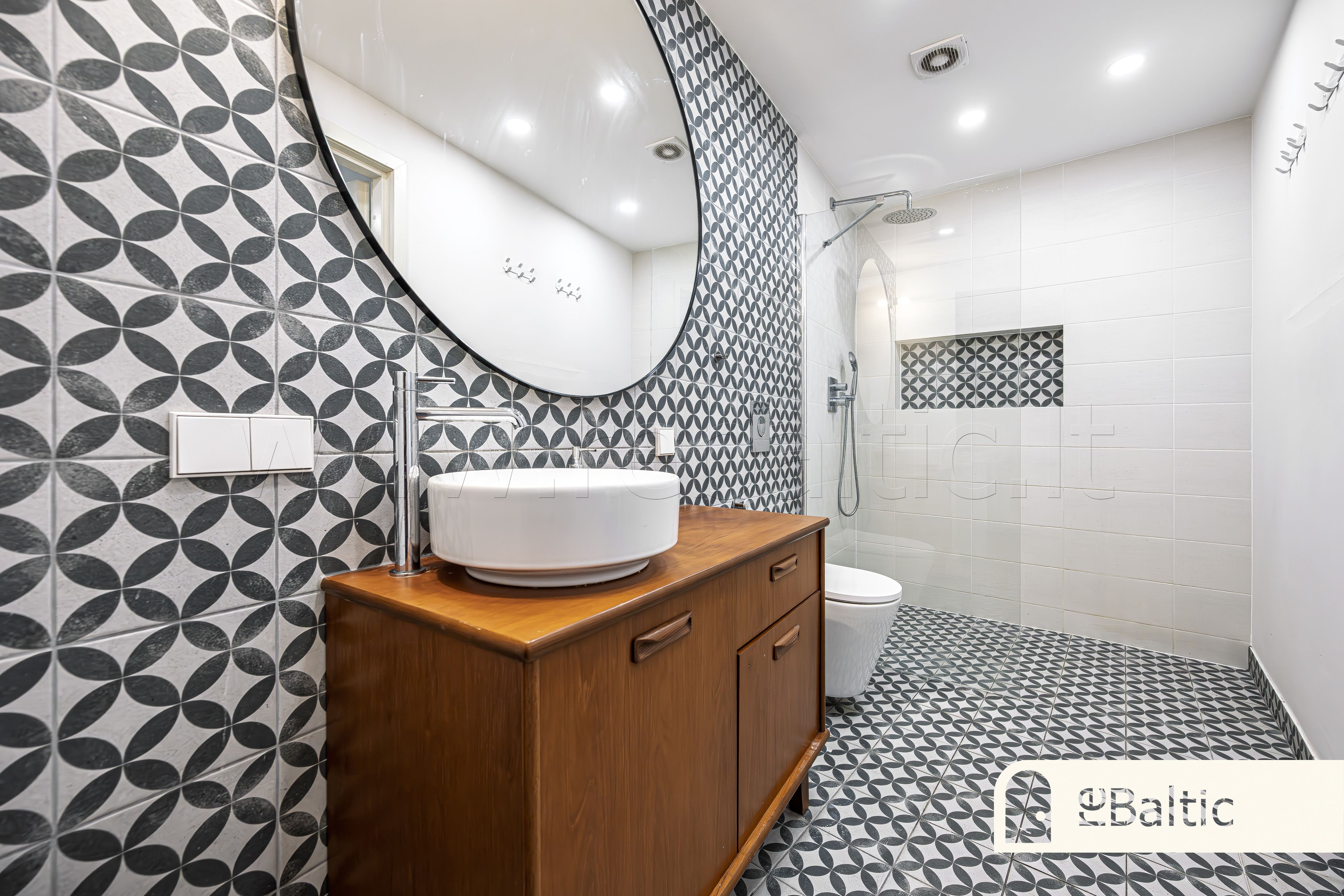 - Šildomos miegamojo, vonios kambarių ir virtuvės grindys