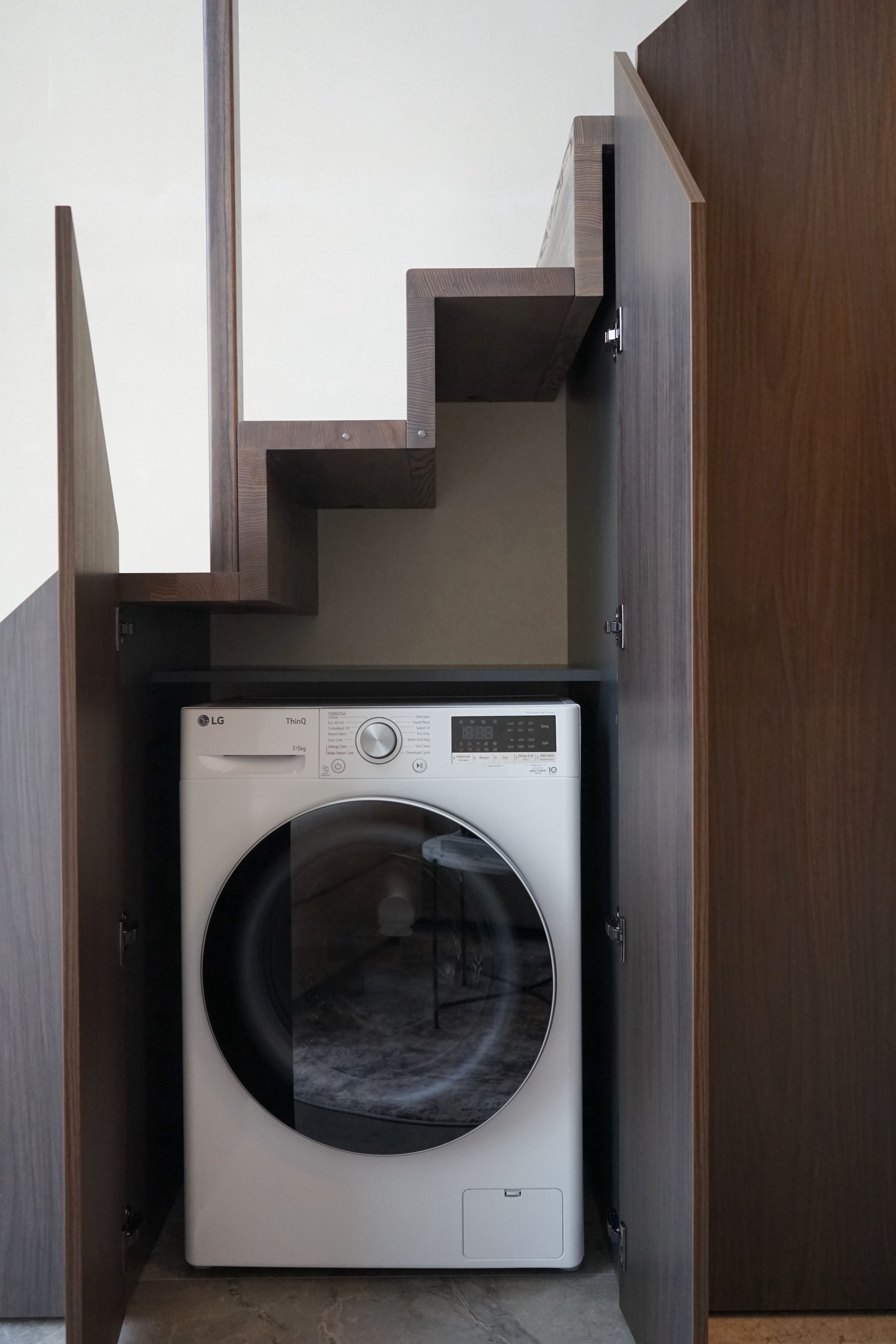 – Integruota buitinė technika: indaplovė, šaldytuvas, orkaitė, skalbyklė su džiovinimo funkcija