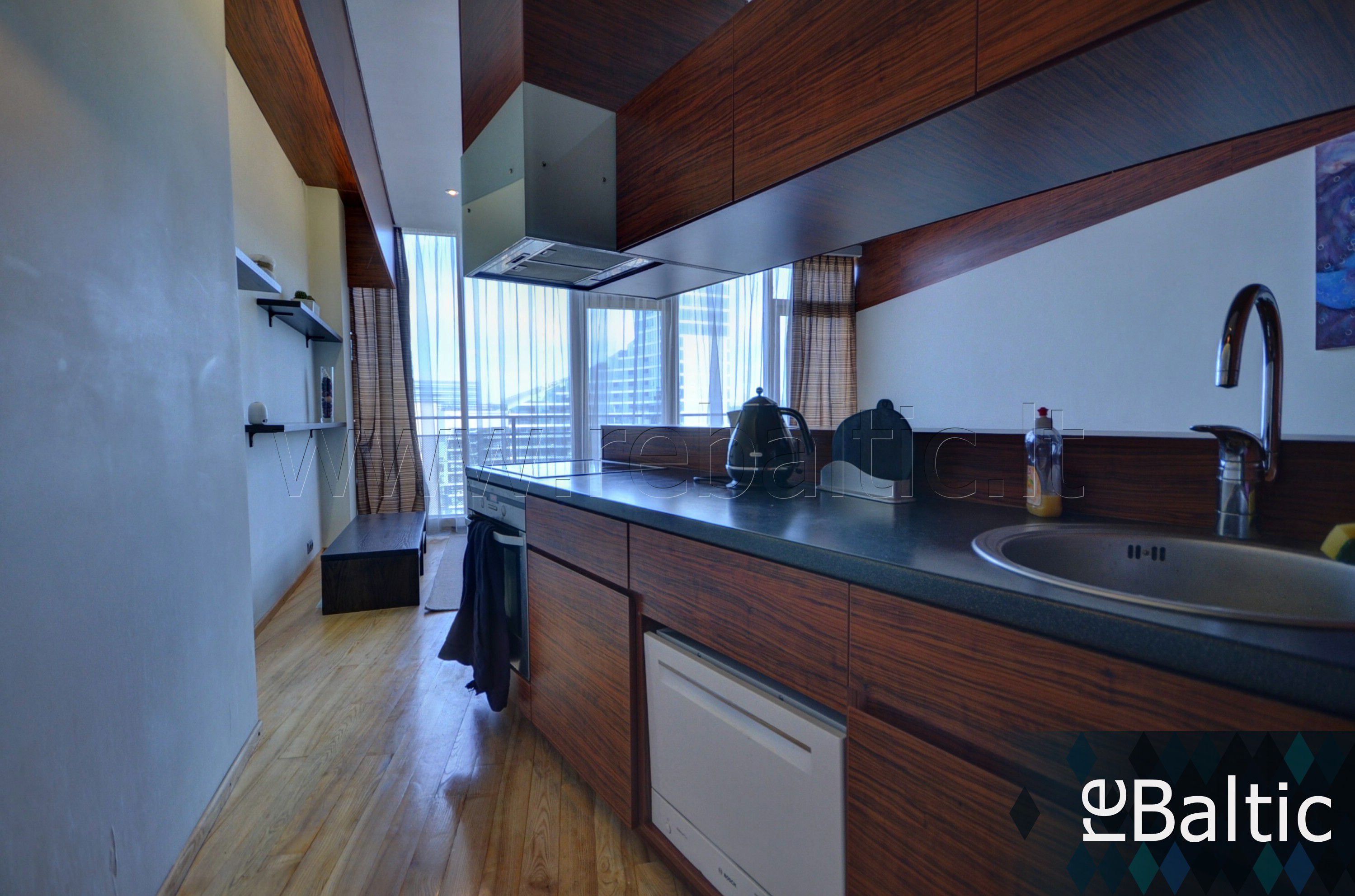 - Pilnai įrengta virtuvė su įmontuota reikalinga buitine technika.