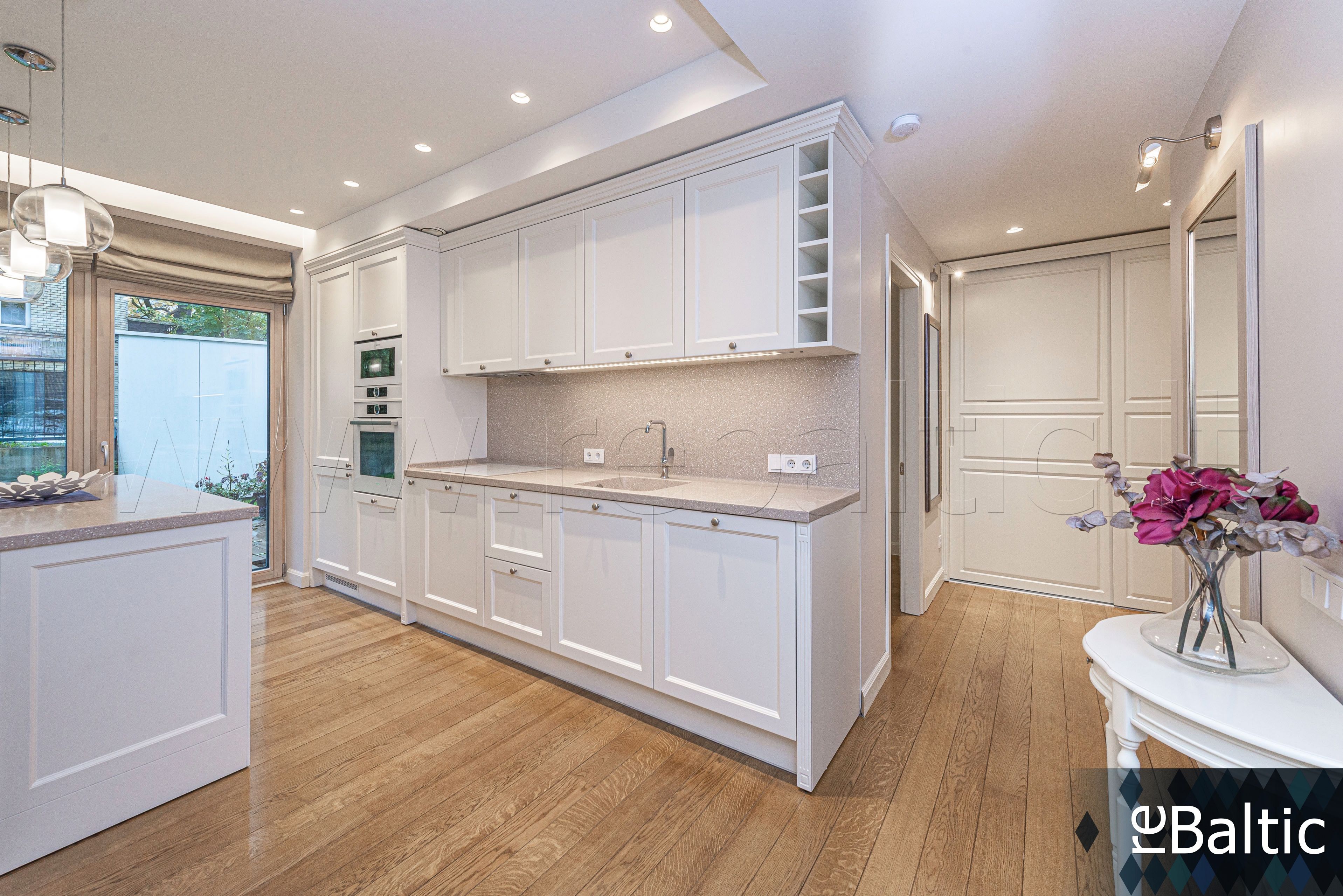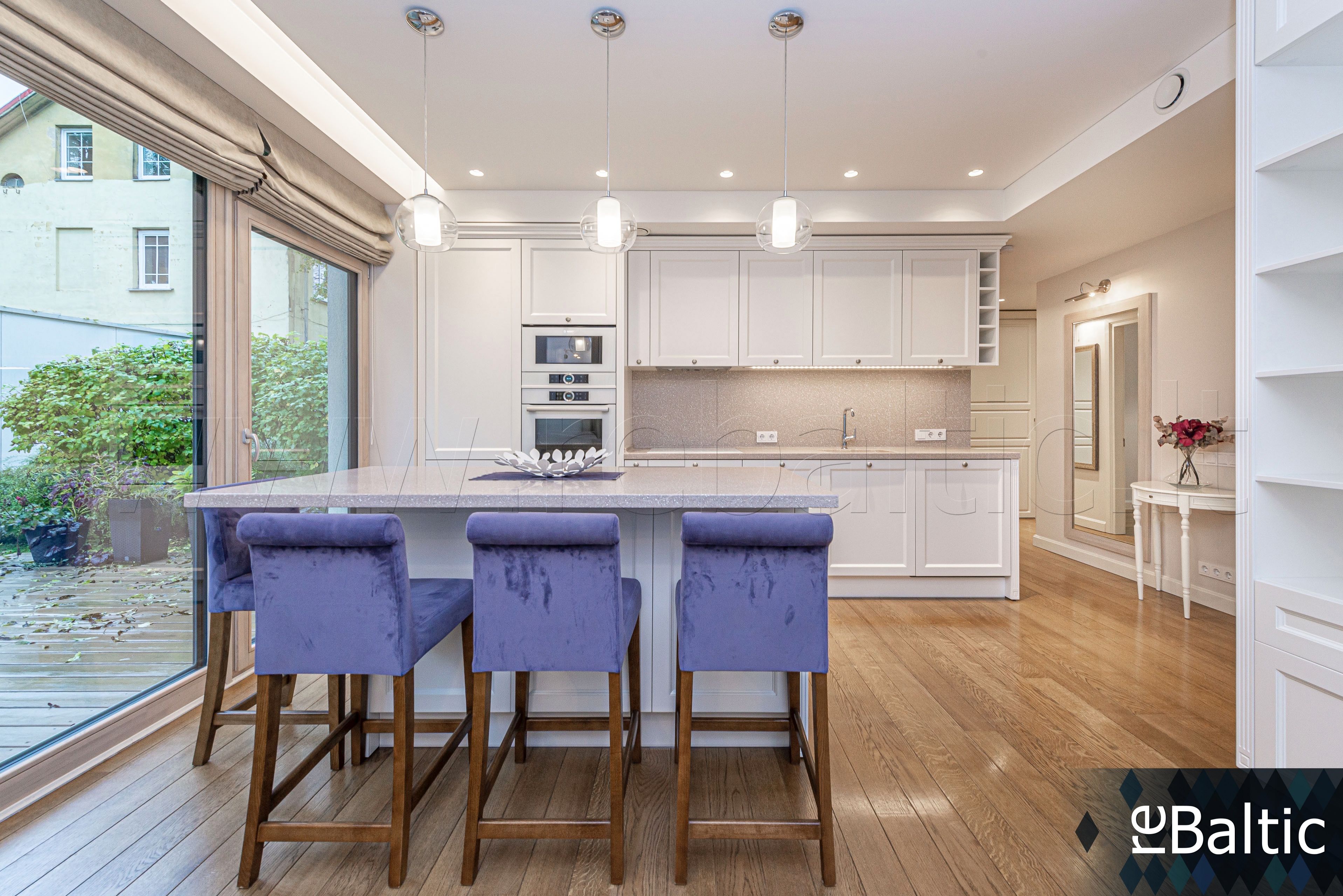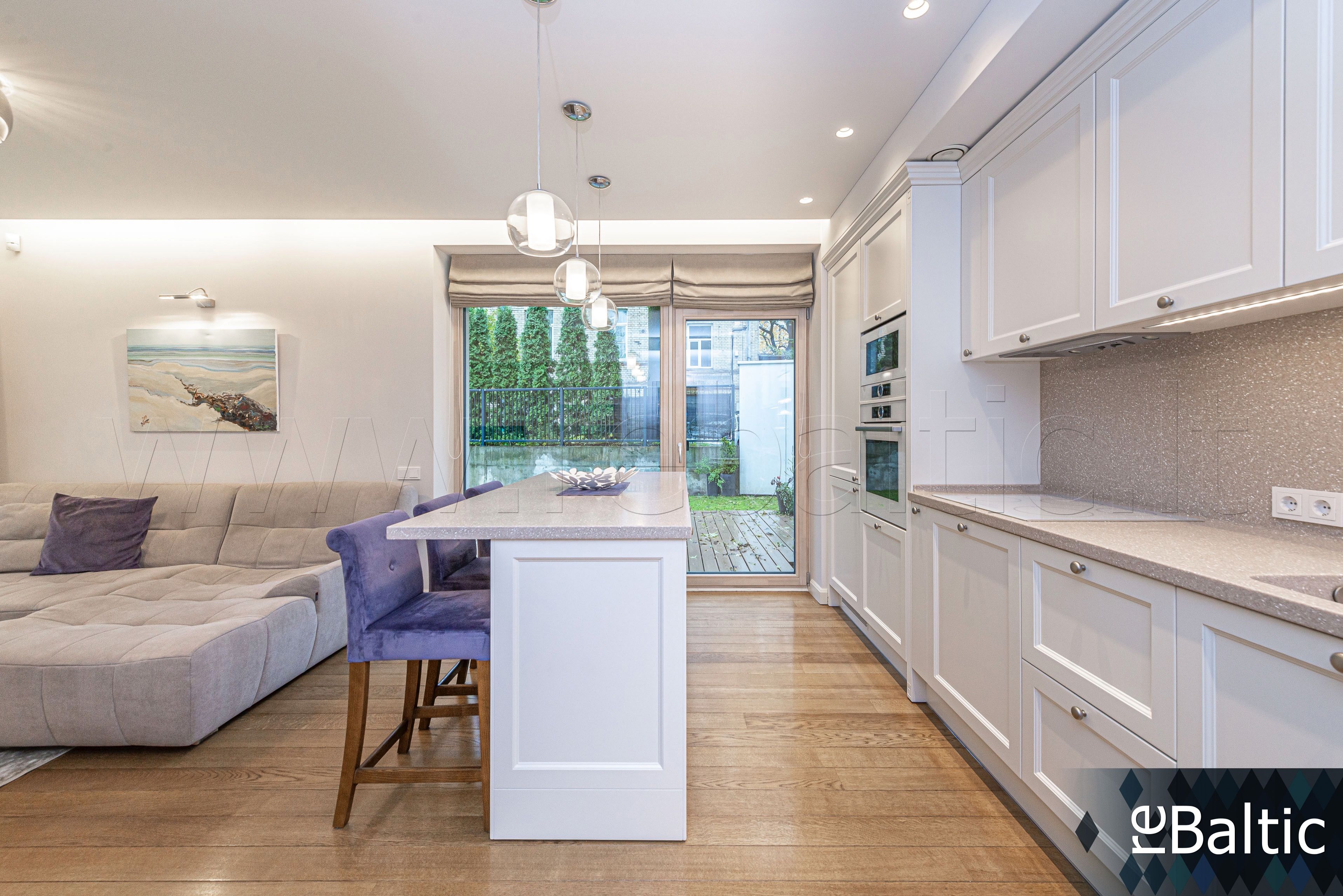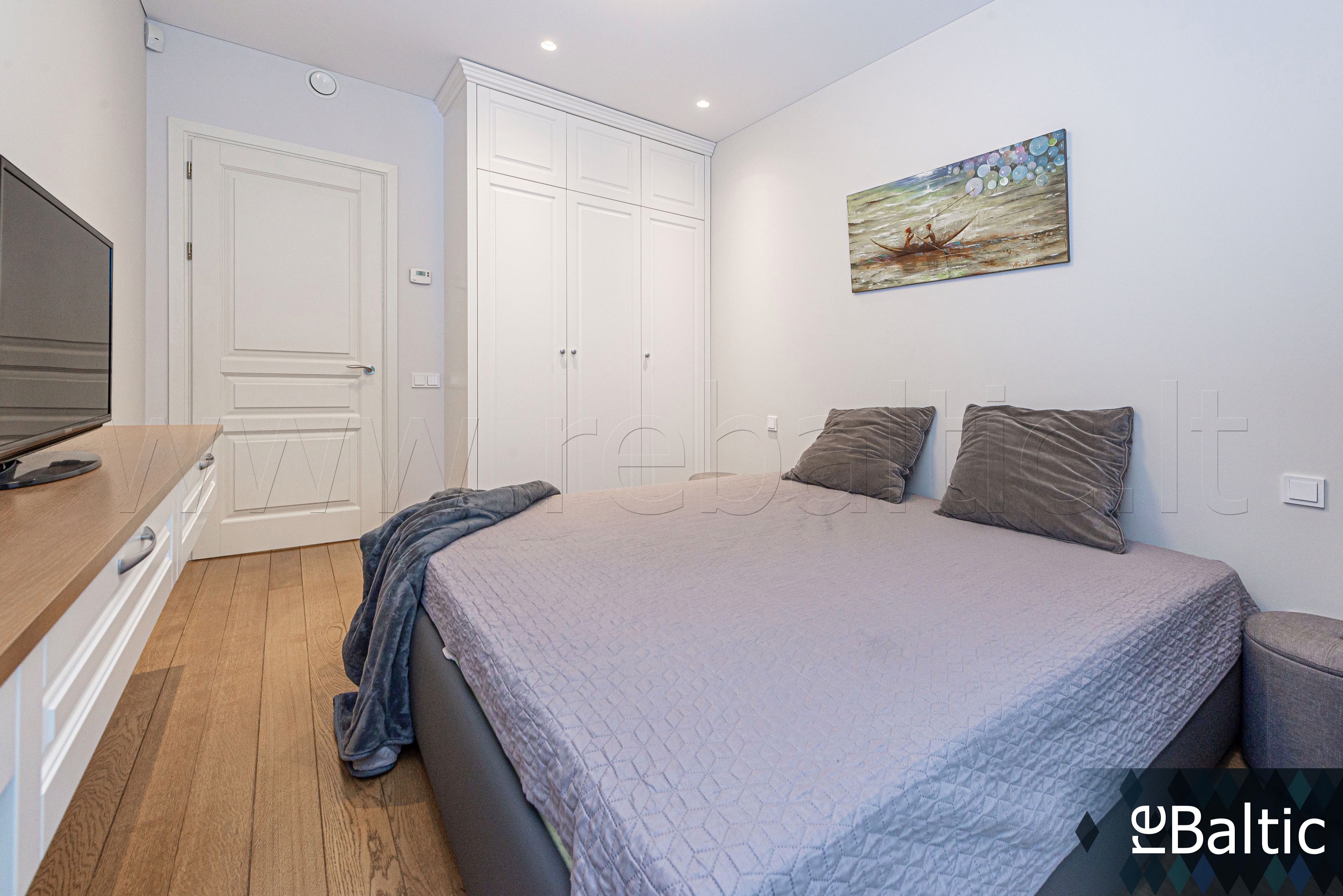 - Dizainerių kurtas interjeras, baldai gaminti pagal individualų užsakymą, ąžuolo masyvo grindys, lieto akmens stalviršiai virtuvėje ir vonioje, modernūs šviestuvai