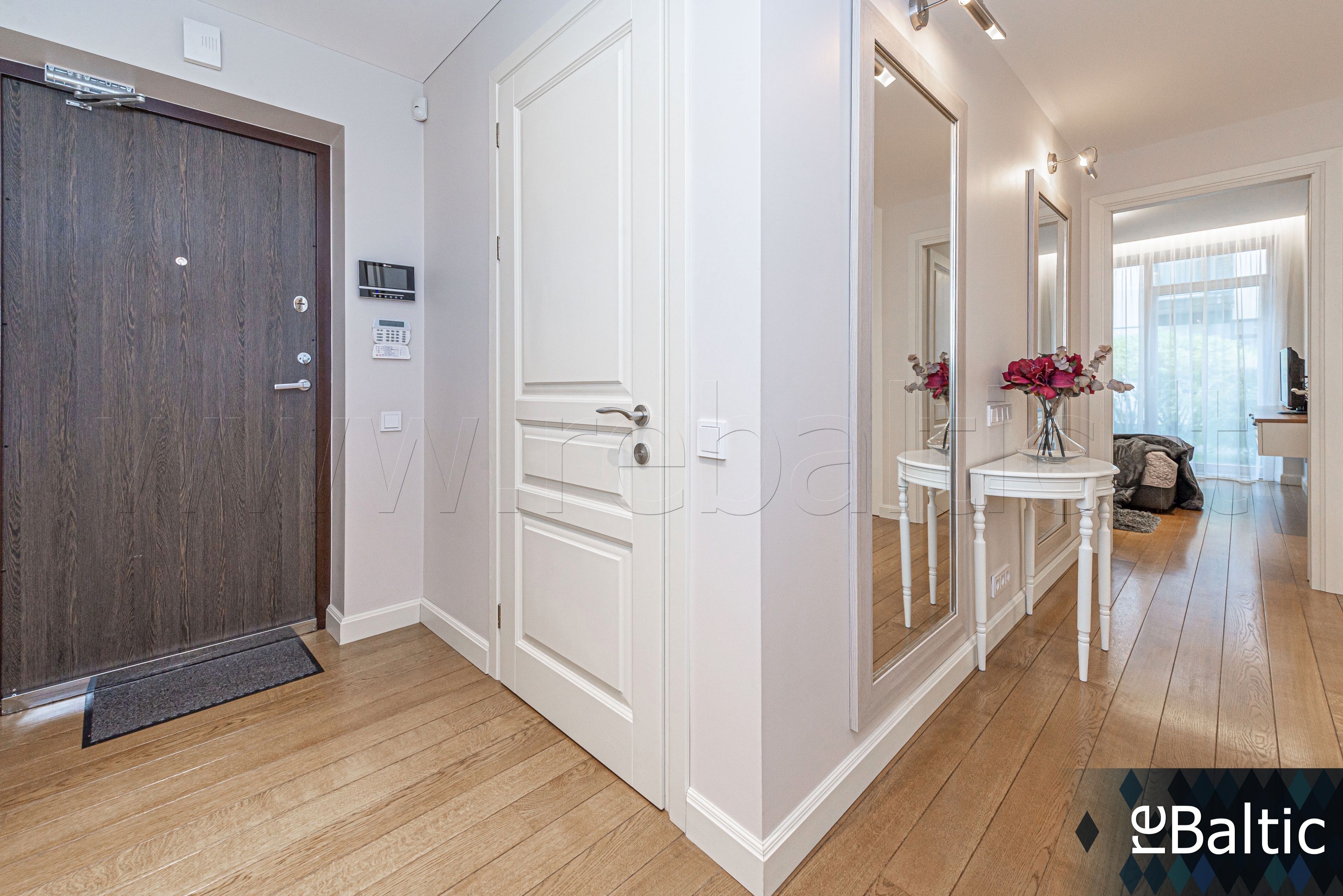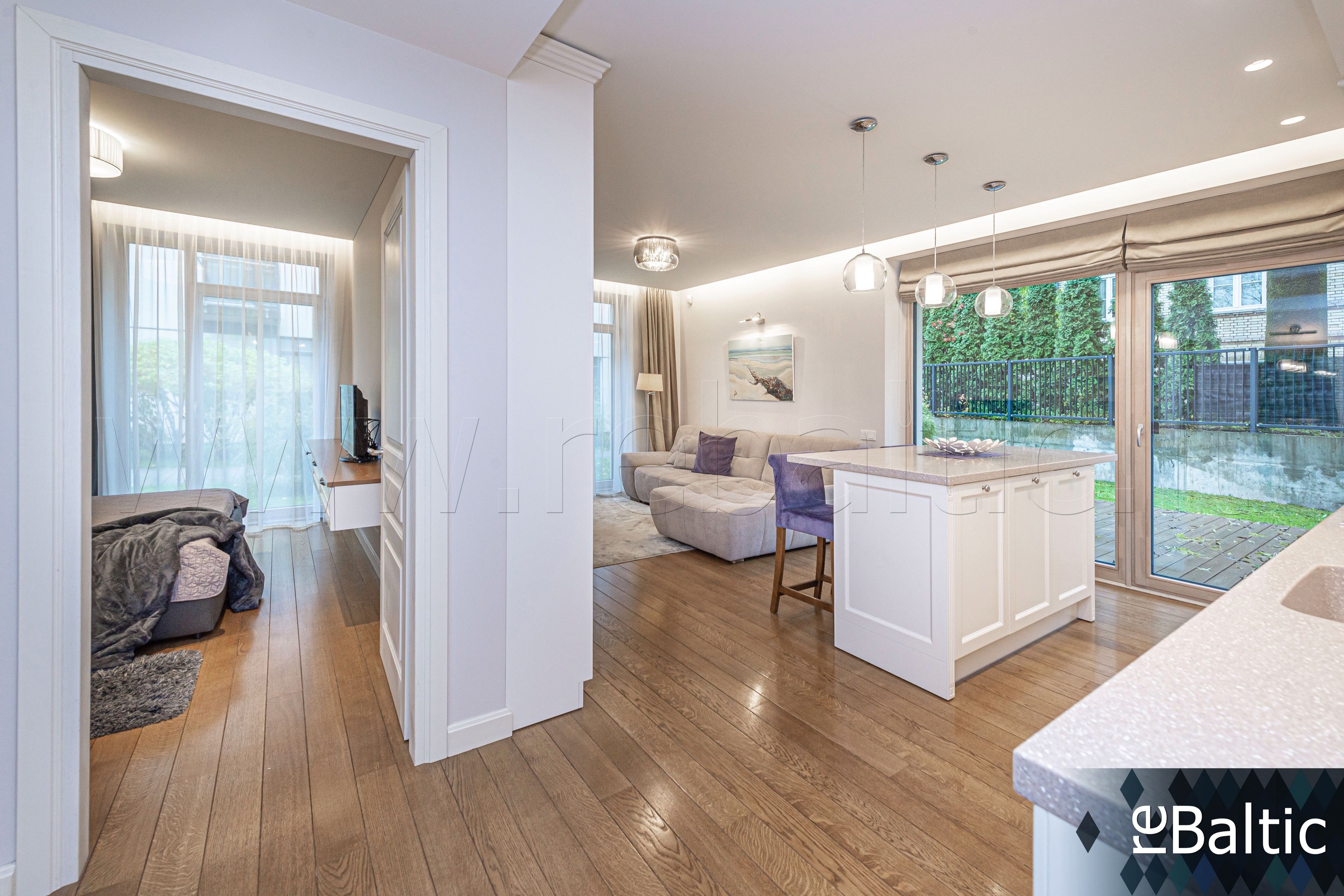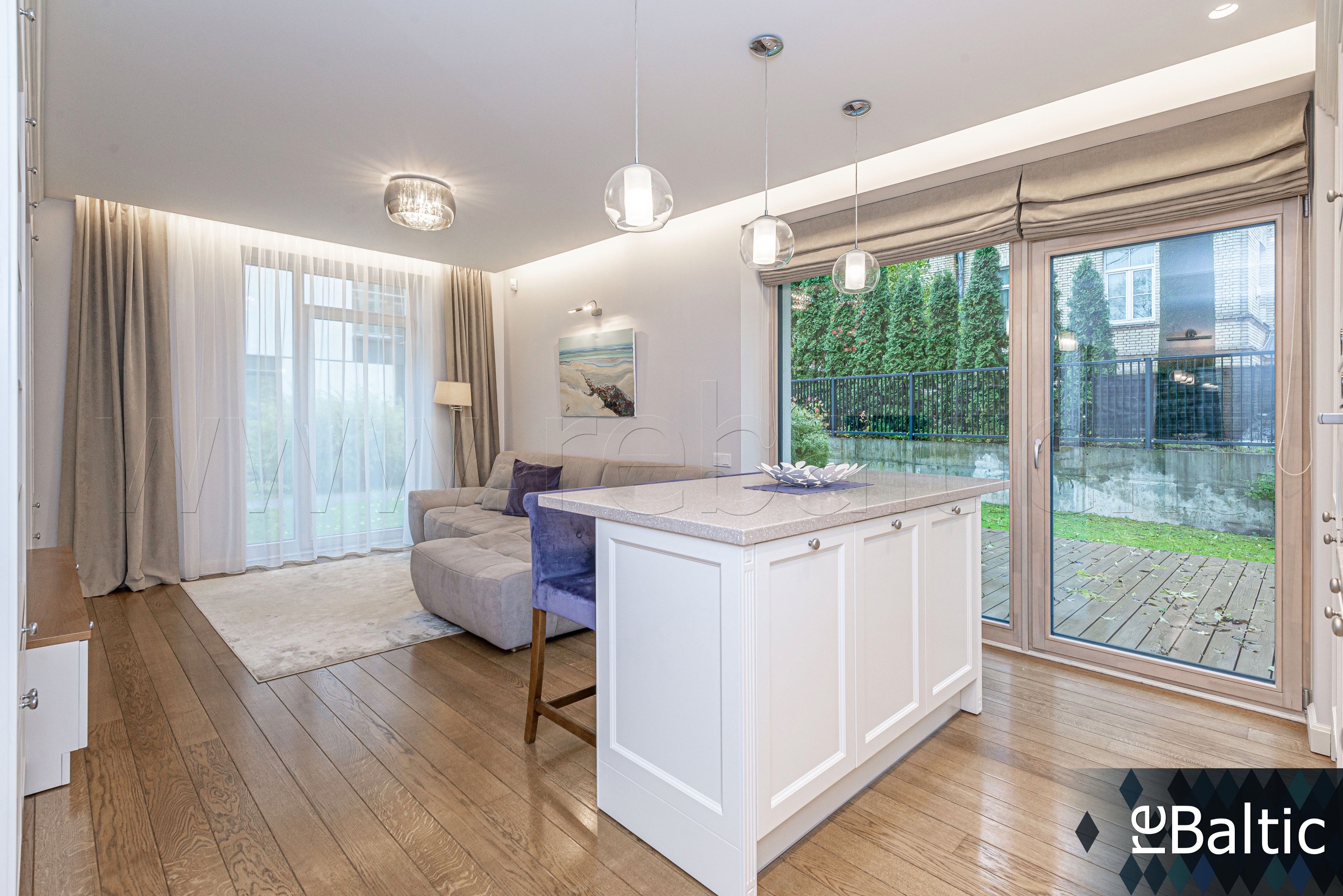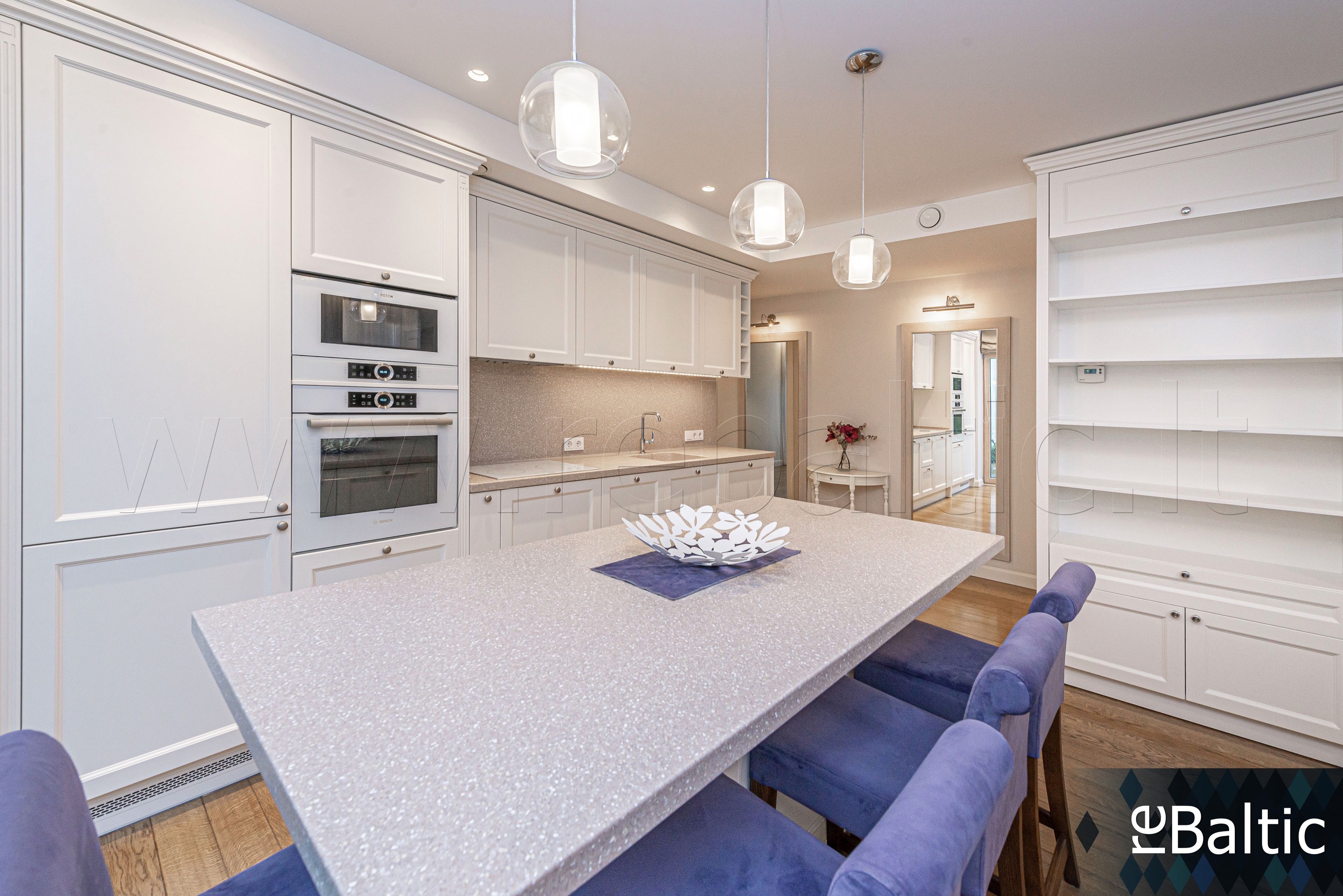 - Dizainerių kurtas interjeras, baldai gaminti pagal individualų užsakymą, ąžuolo masyvo grindys, lieto akmens stalviršiai virtuvėje ir vonioje, modernūs šviestuvai