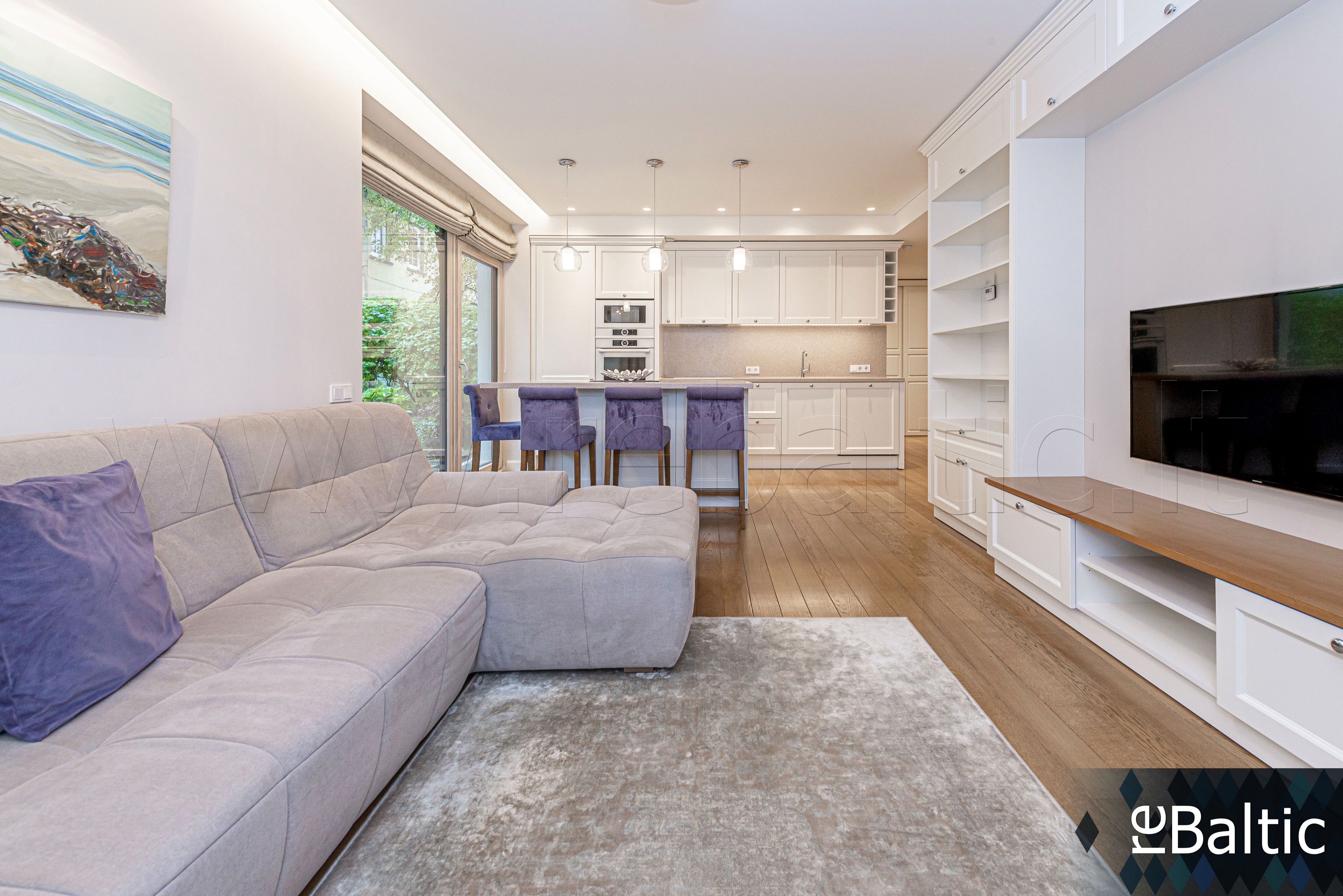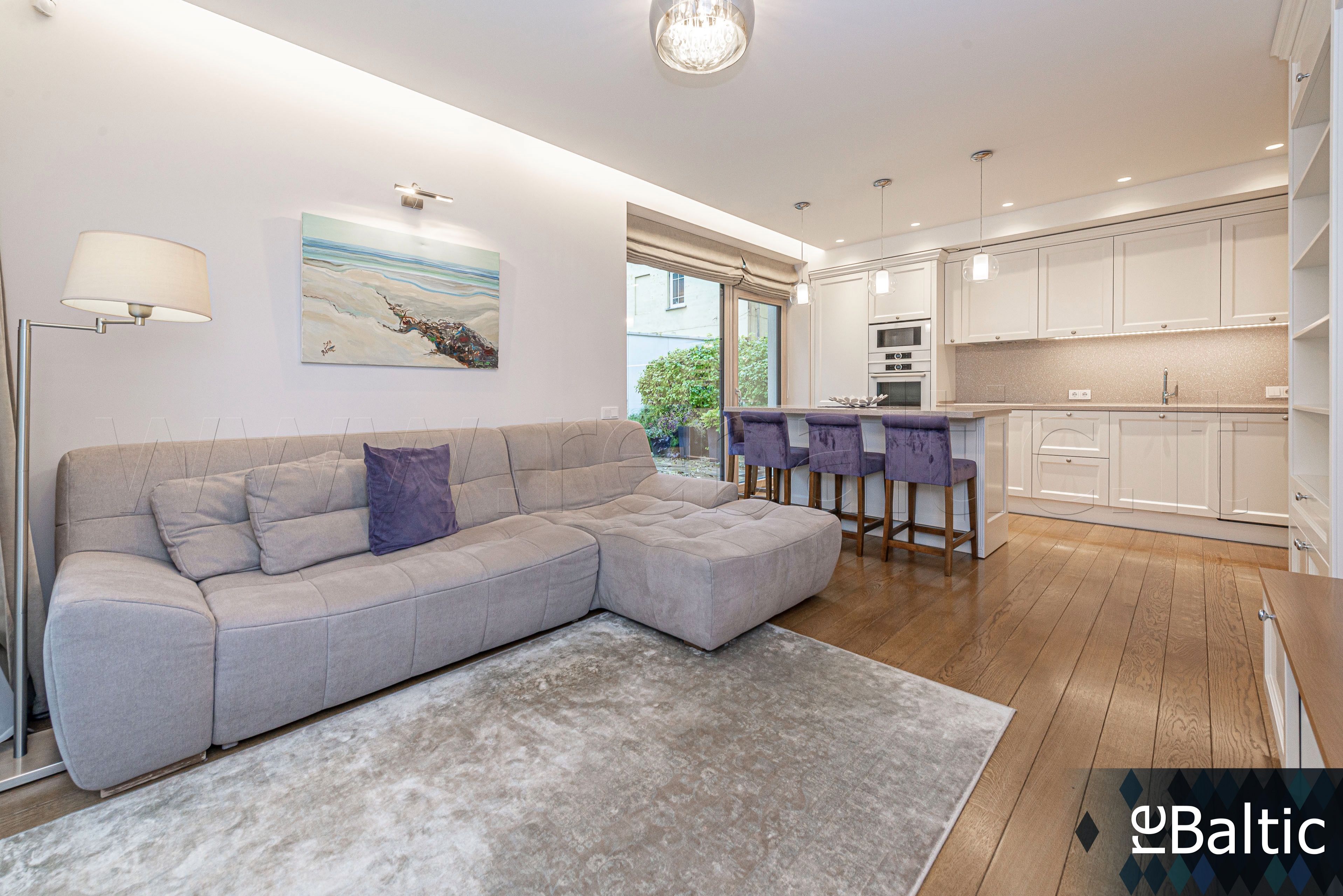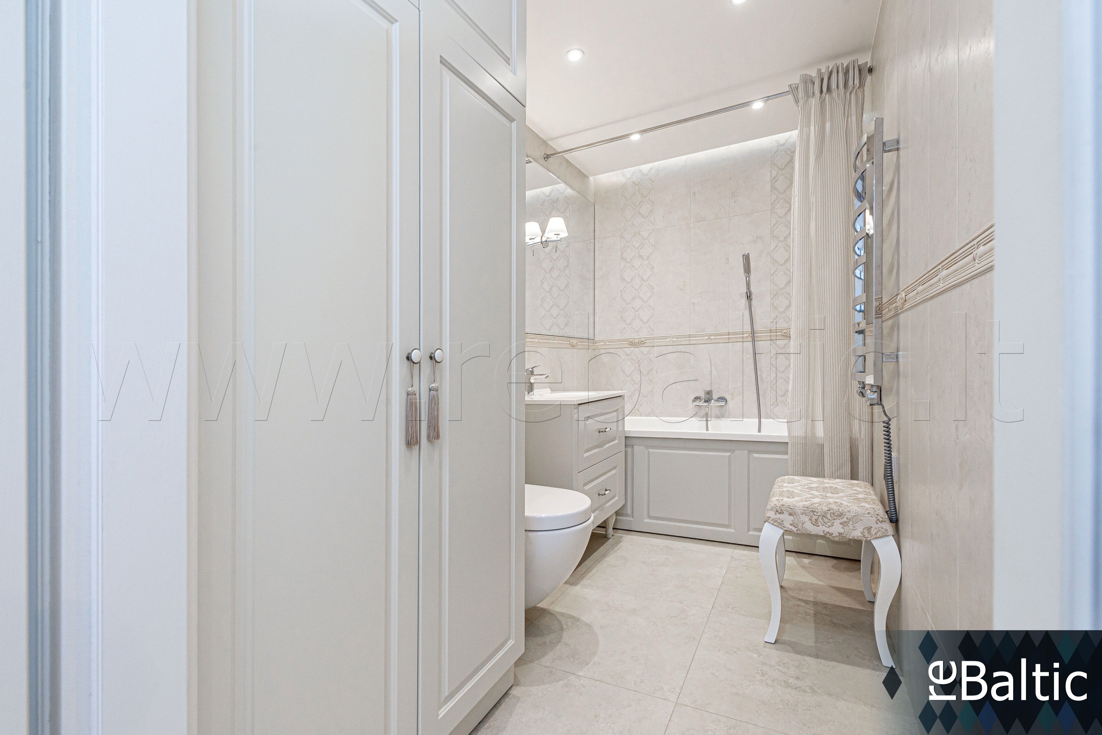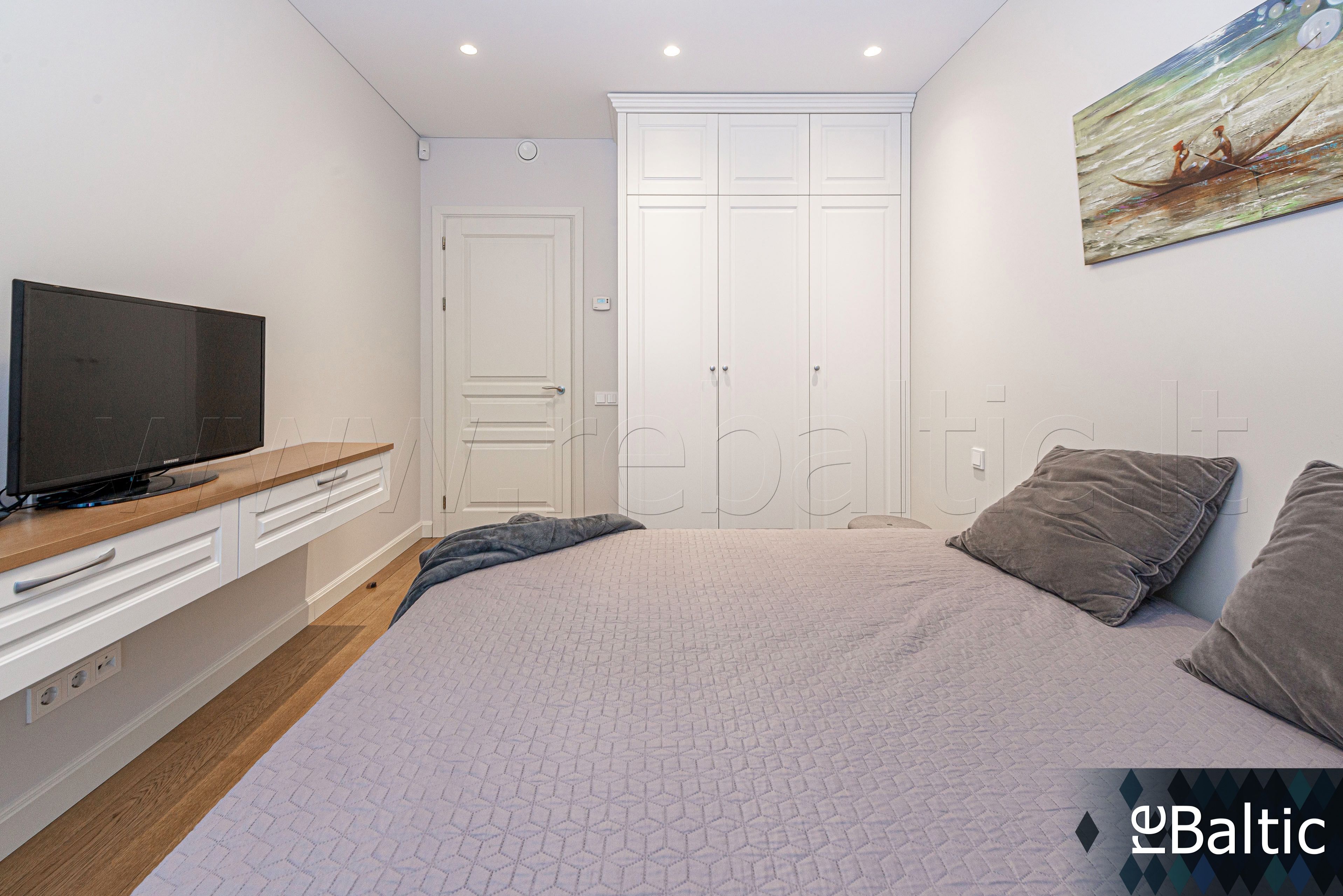 - Dizainerių kurtas interjeras, baldai gaminti pagal individualų užsakymą, ąžuolo masyvo grindys, lieto akmens stalviršiai virtuvėje ir vonioje, modernūs šviestuvai