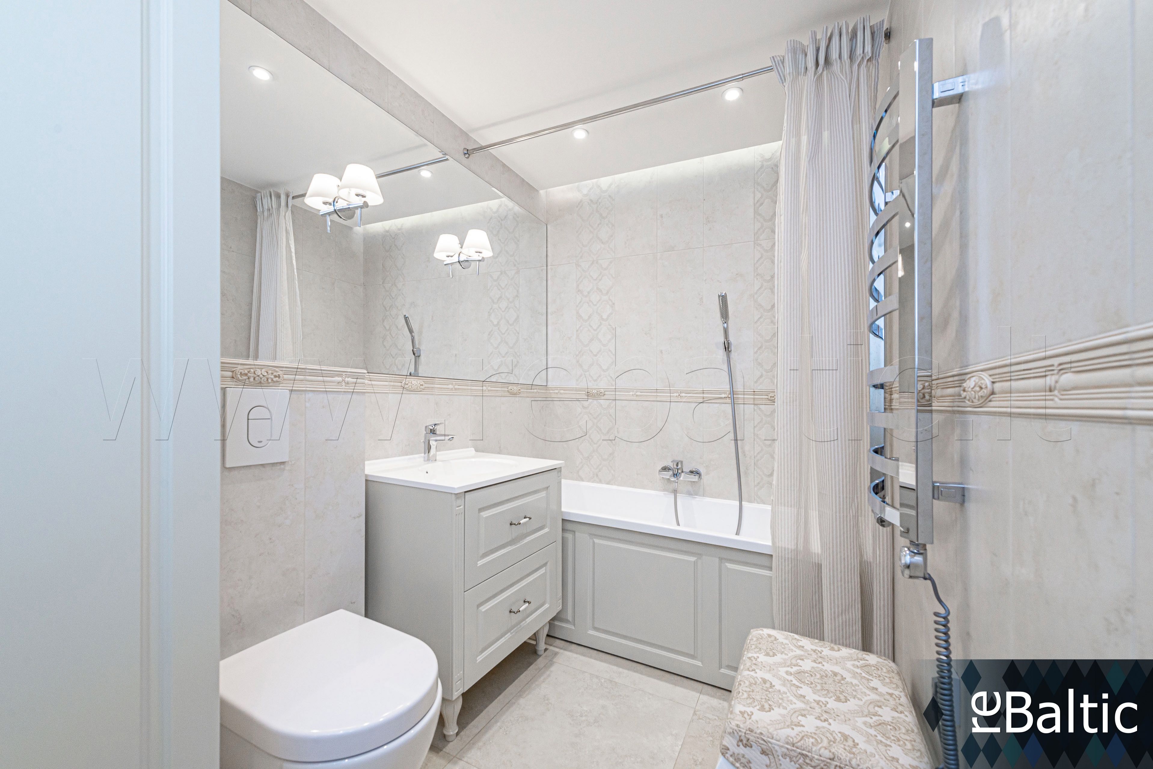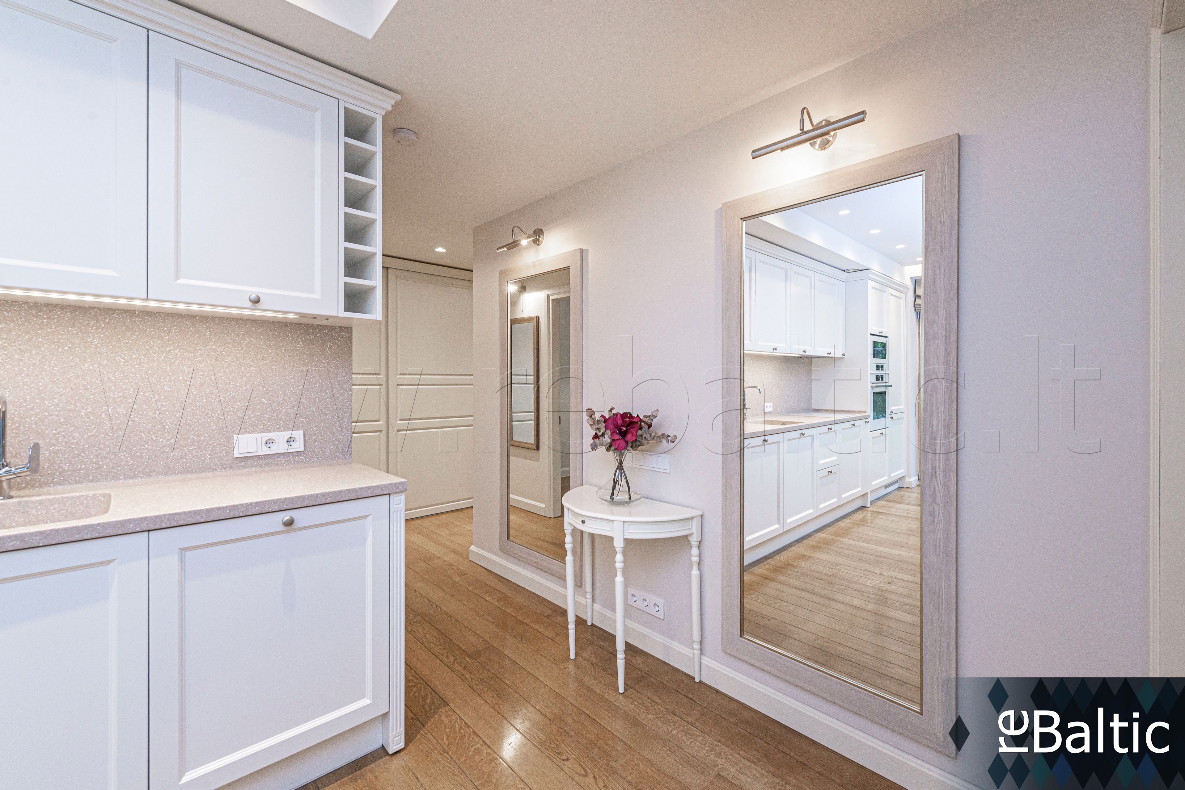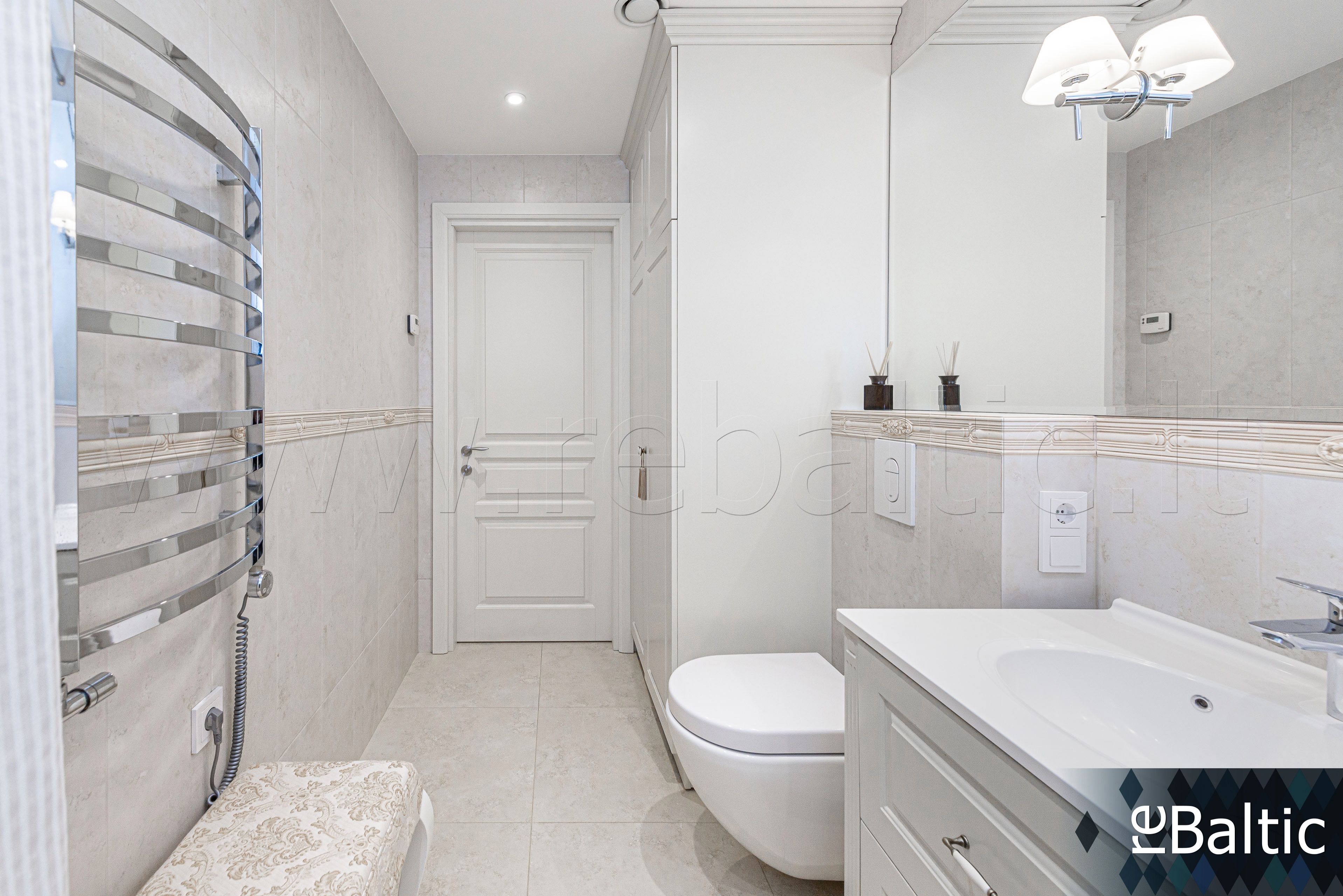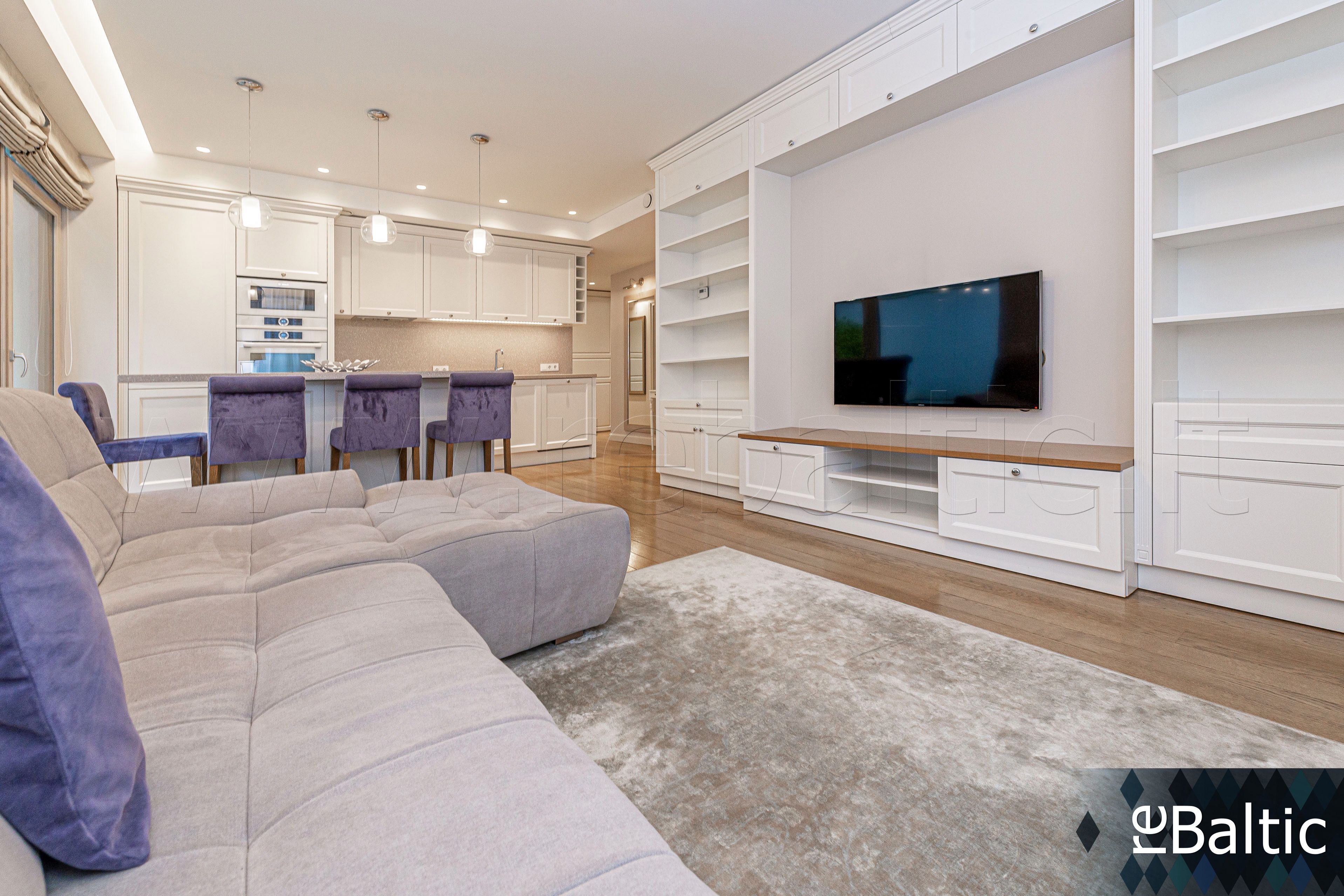- Dizainerių kurtas interjeras, baldai gaminti pagal individualų užsakymą, ąžuolo masyvo grindys, lieto akmens stalviršiai virtuvėje ir vonioje, modernūs šviestuvai
