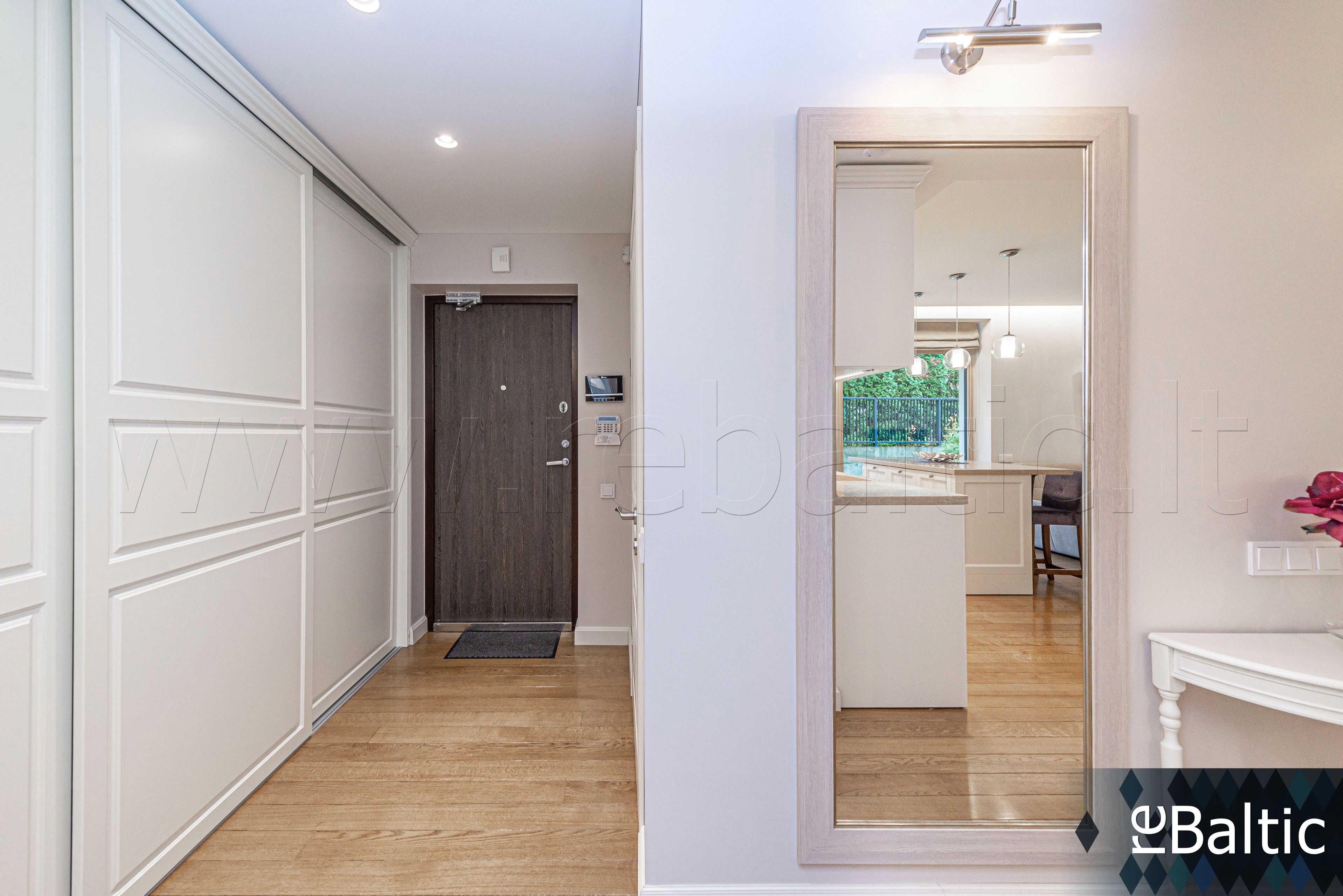 - Aukštos klasės namas, kuriame tik 14 butų, didelis privatumas. Teritorija aptverta, stebima vaizdo kameromis.