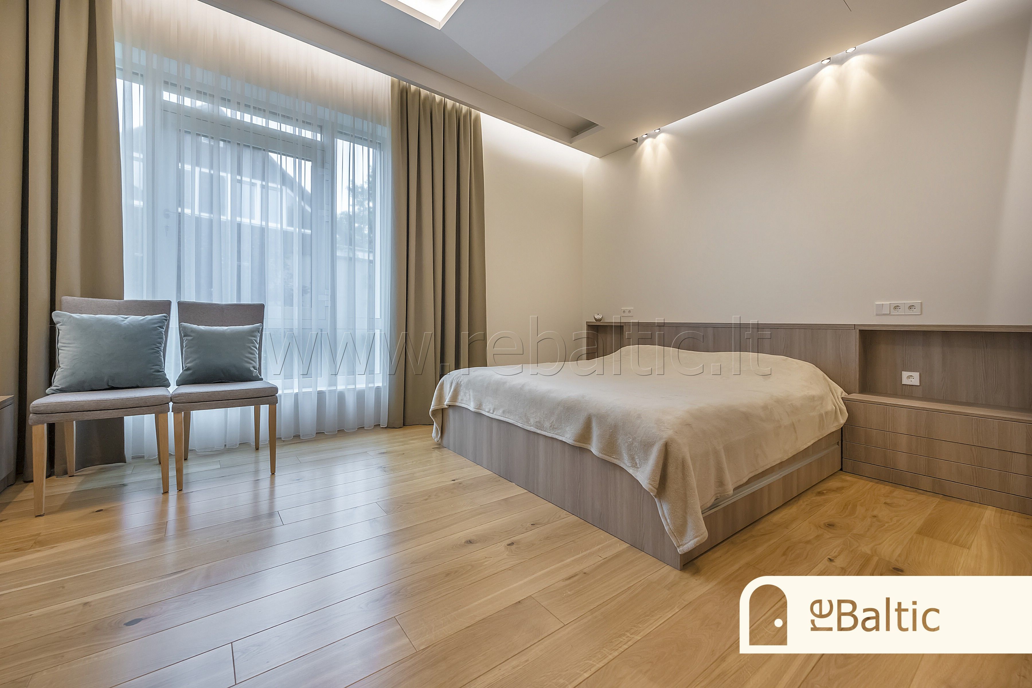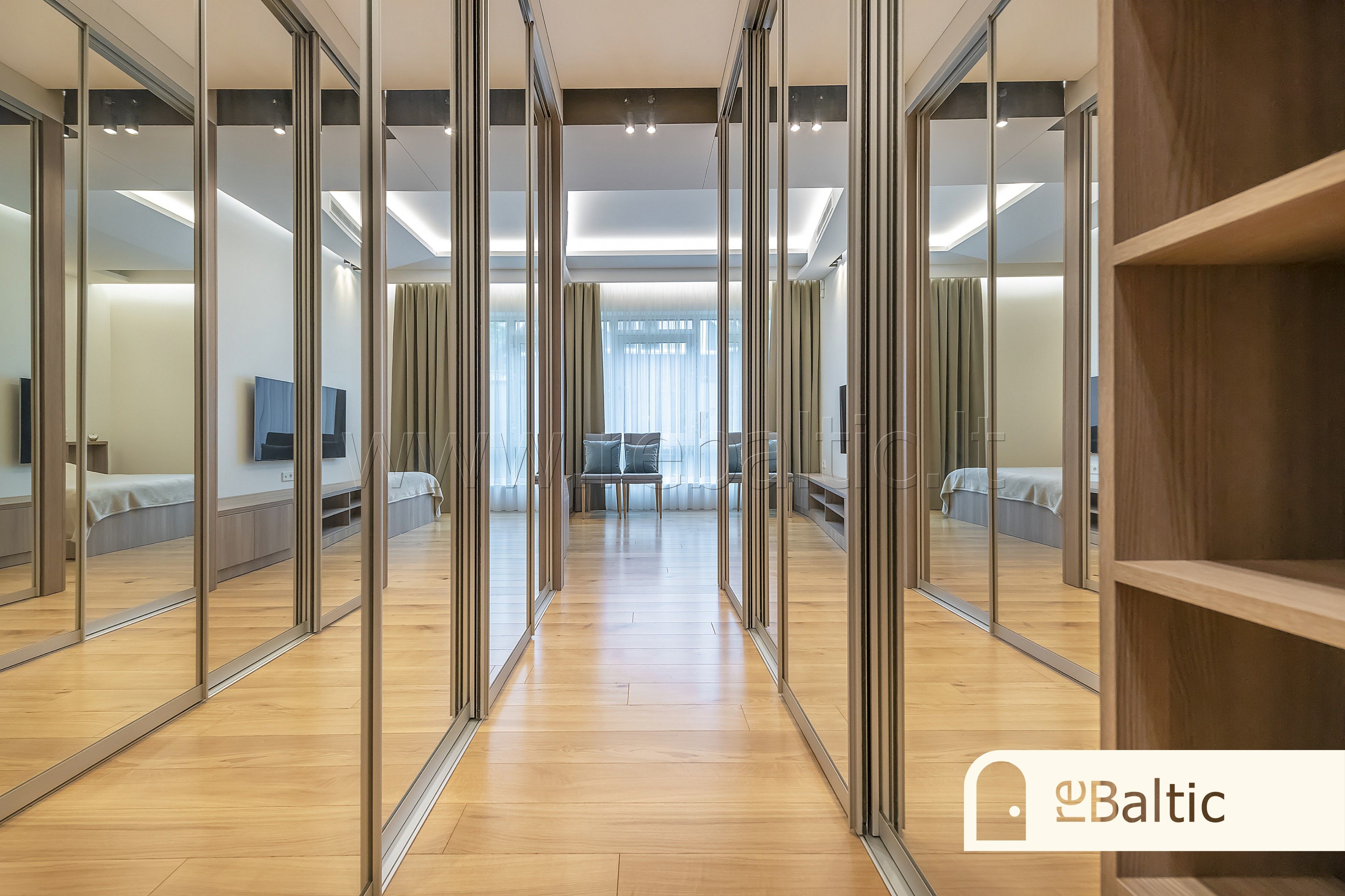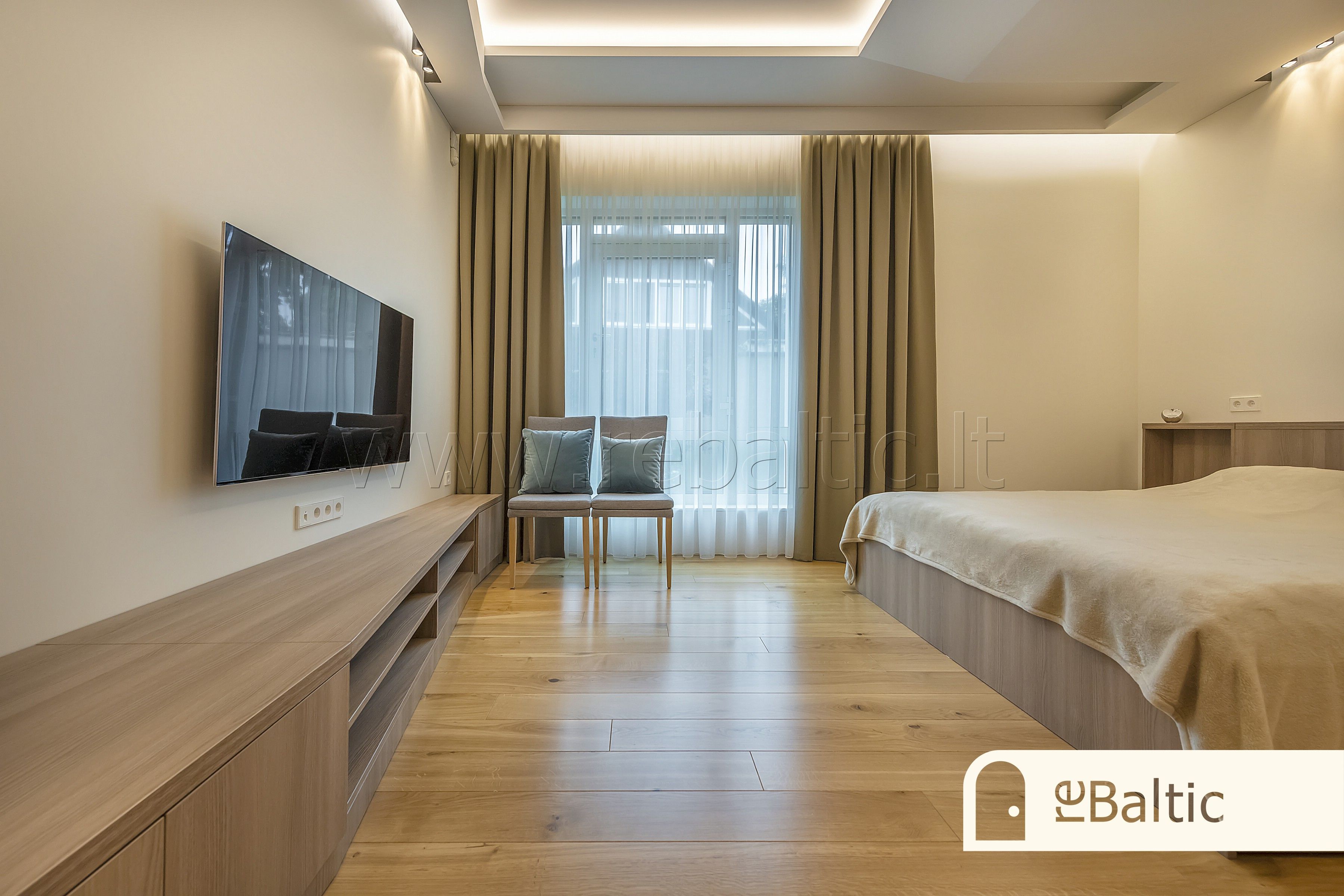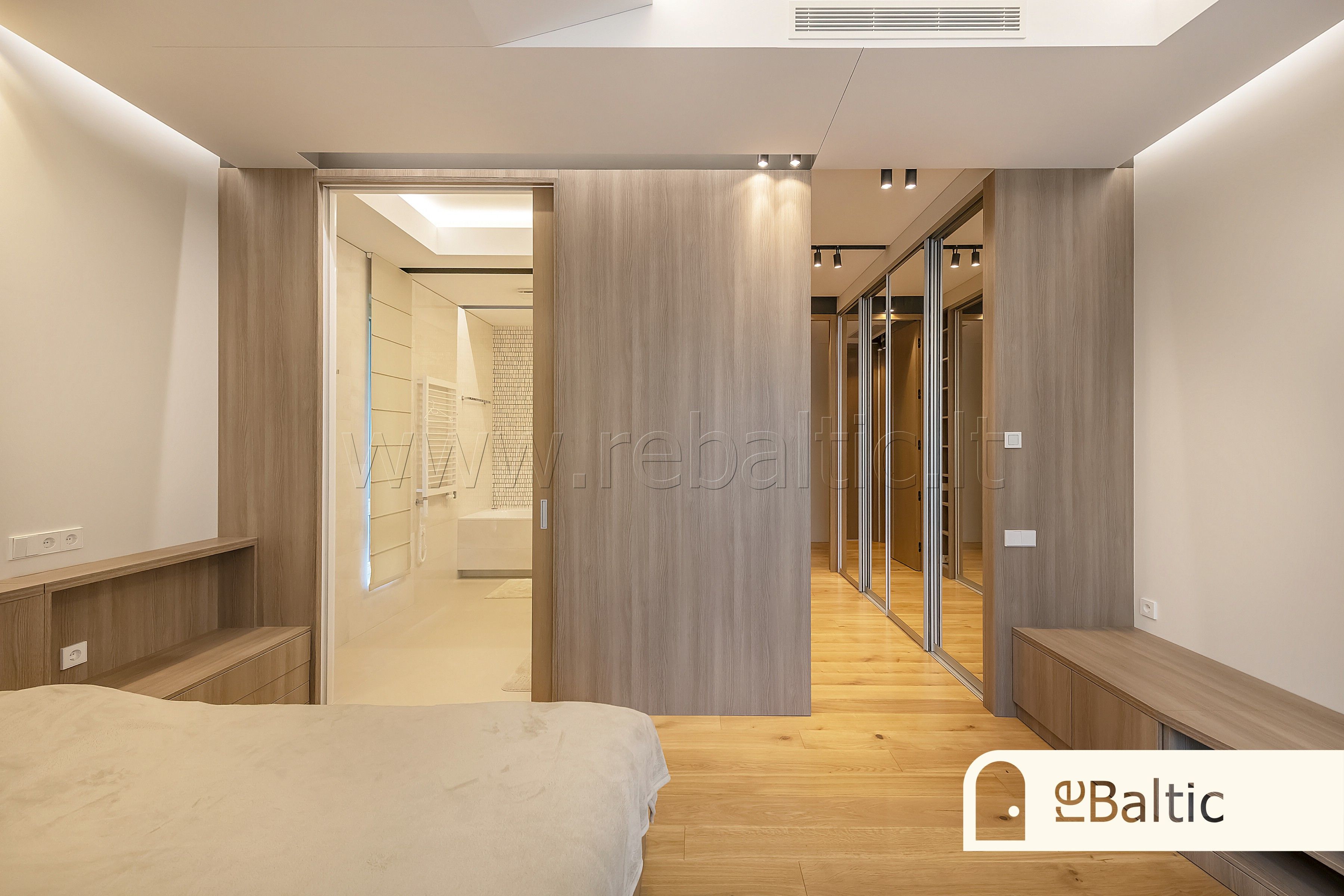 - Pagrindinis miegamasis su drabužine ir atskiru vonios kambariu