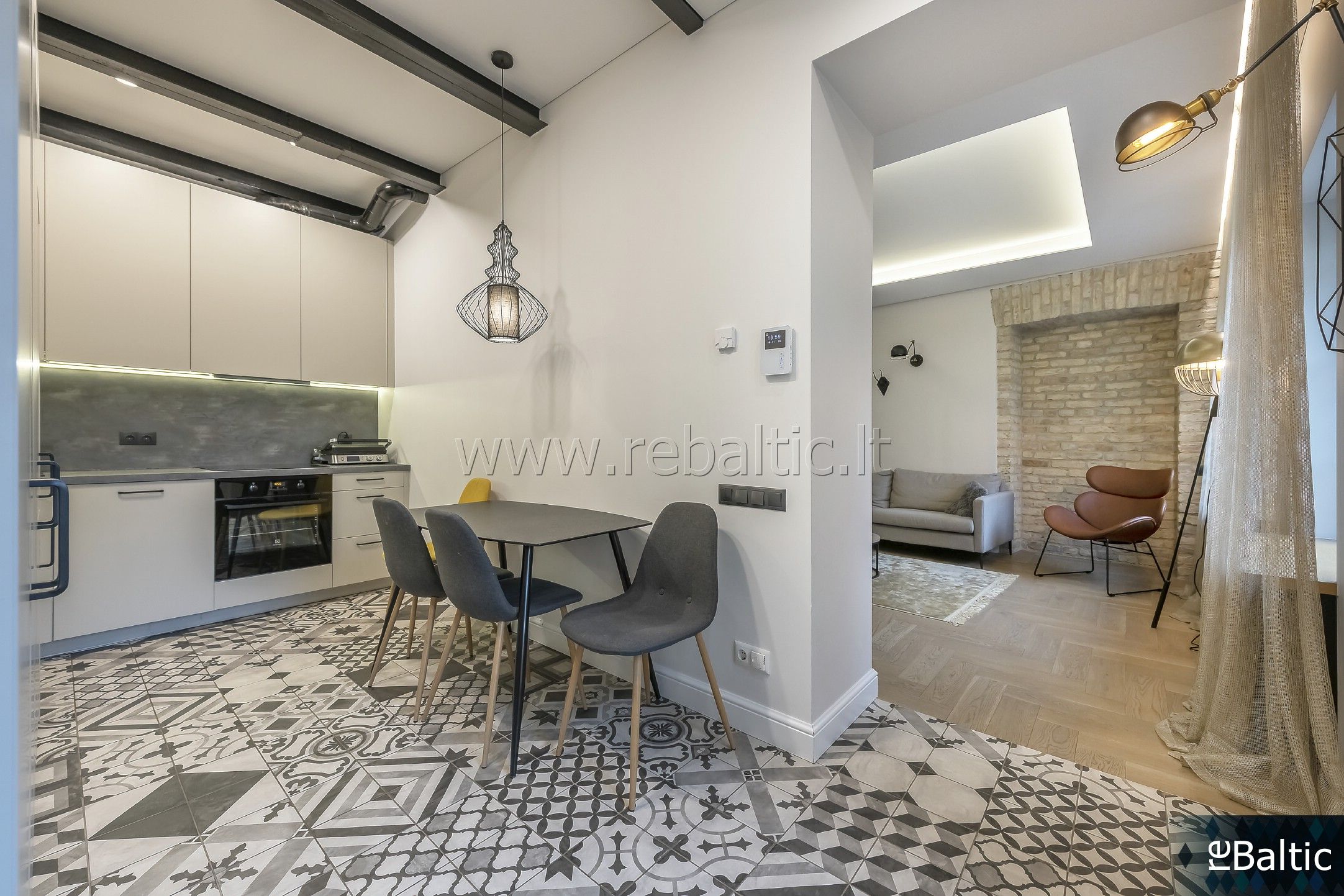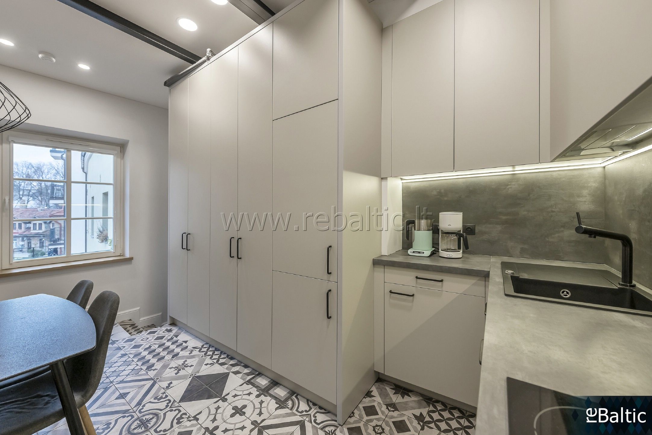 - Kokybiška integruota buitinė technika (indaplovė, kaitlentė, orkaitė, gartraukis, šaldytuvas)