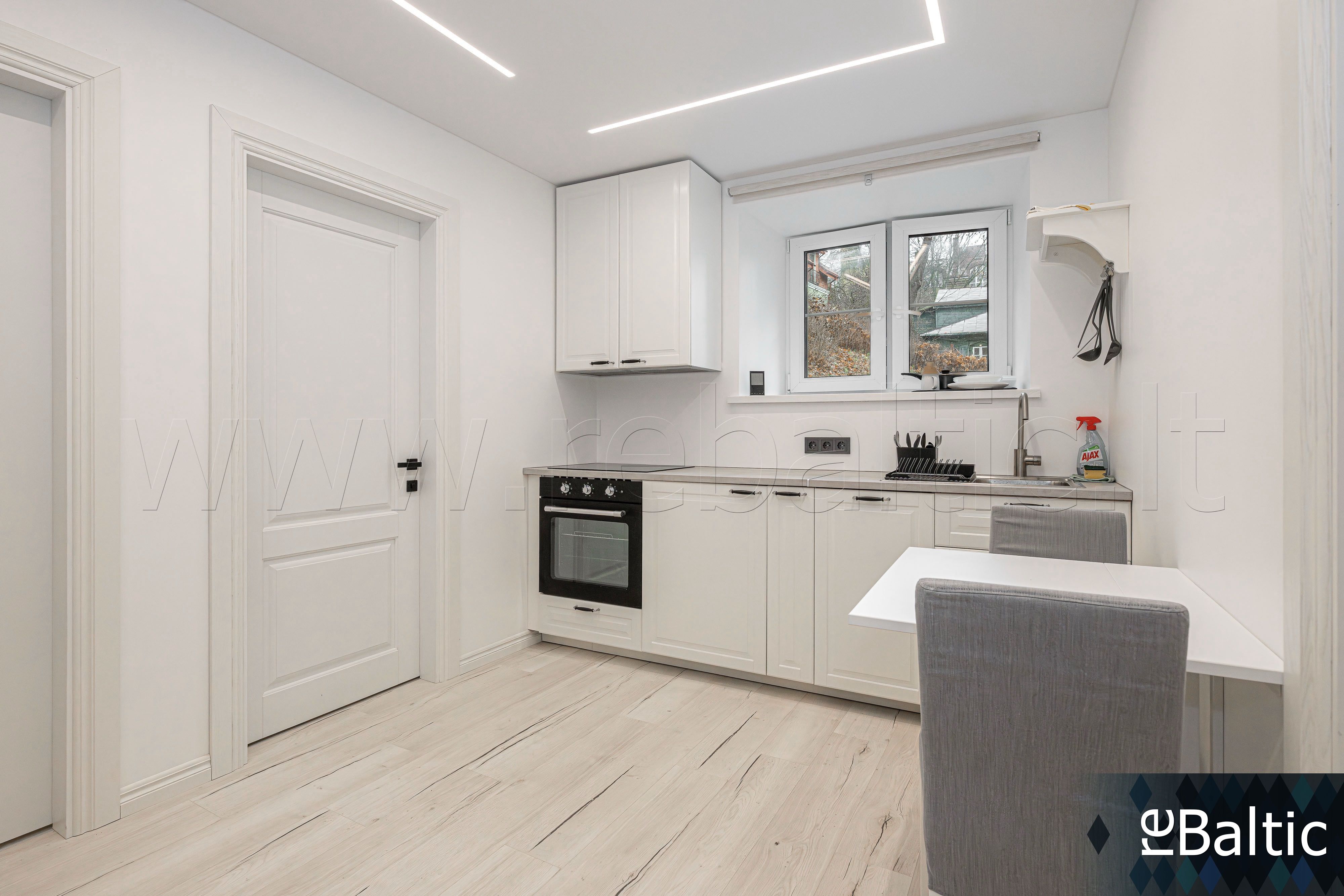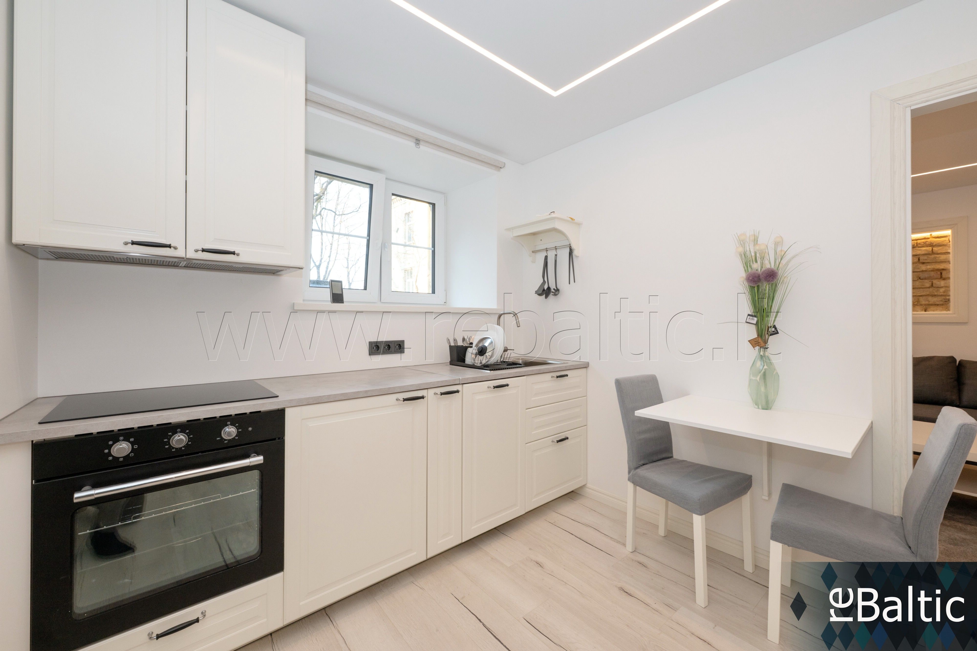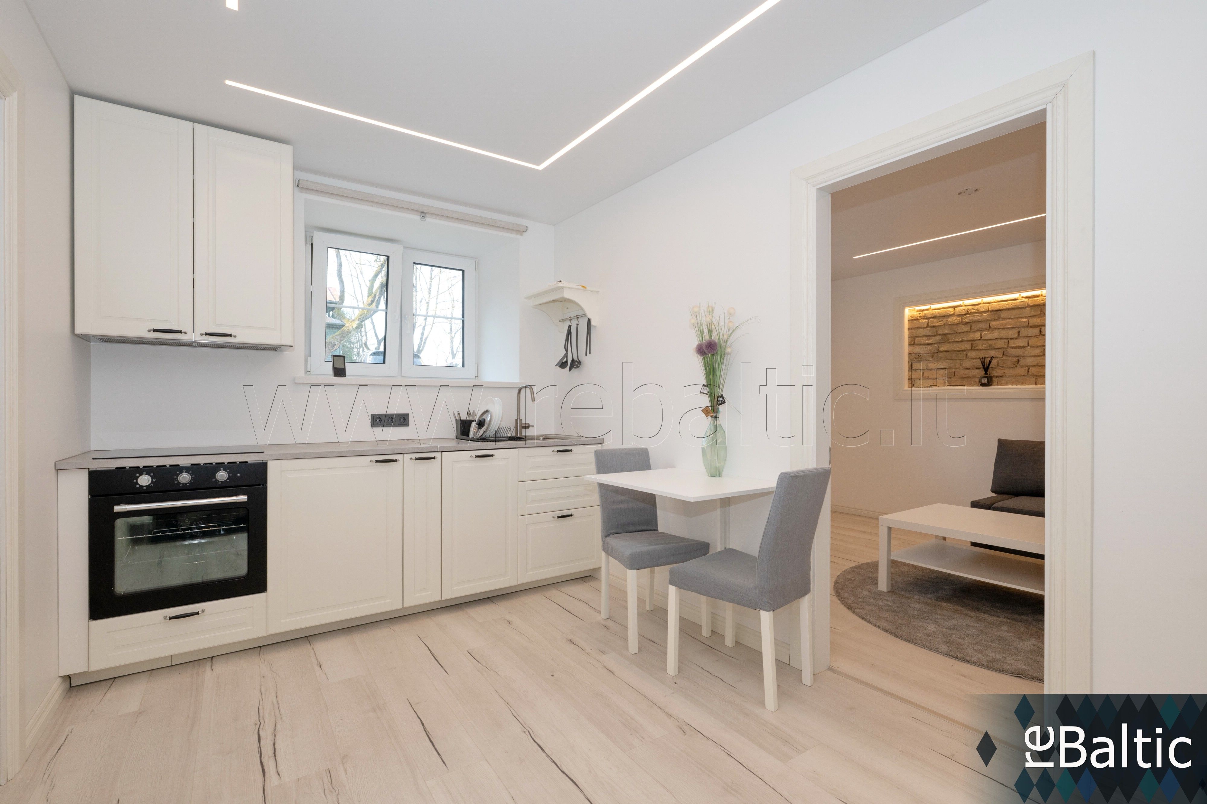 • Nuomojamas su nuotraukose matomais baldais ir buitine technika (indaplovė, kaitlentė, orkaitė, šaldytuvas, skalbyklė).