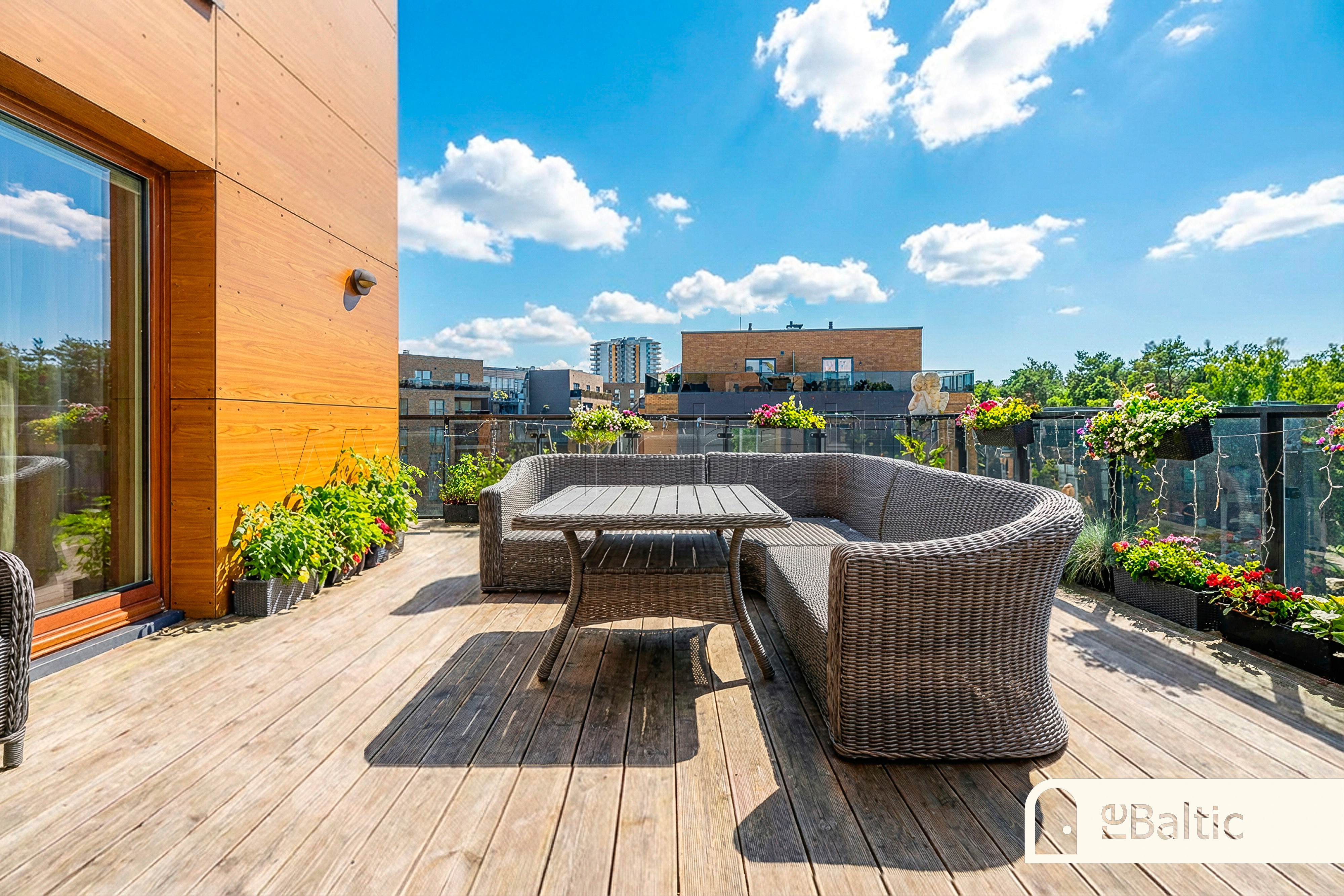 • Labai didelė terasa-balkonas (patogus patekimas iš svetainės ir virtuvės)