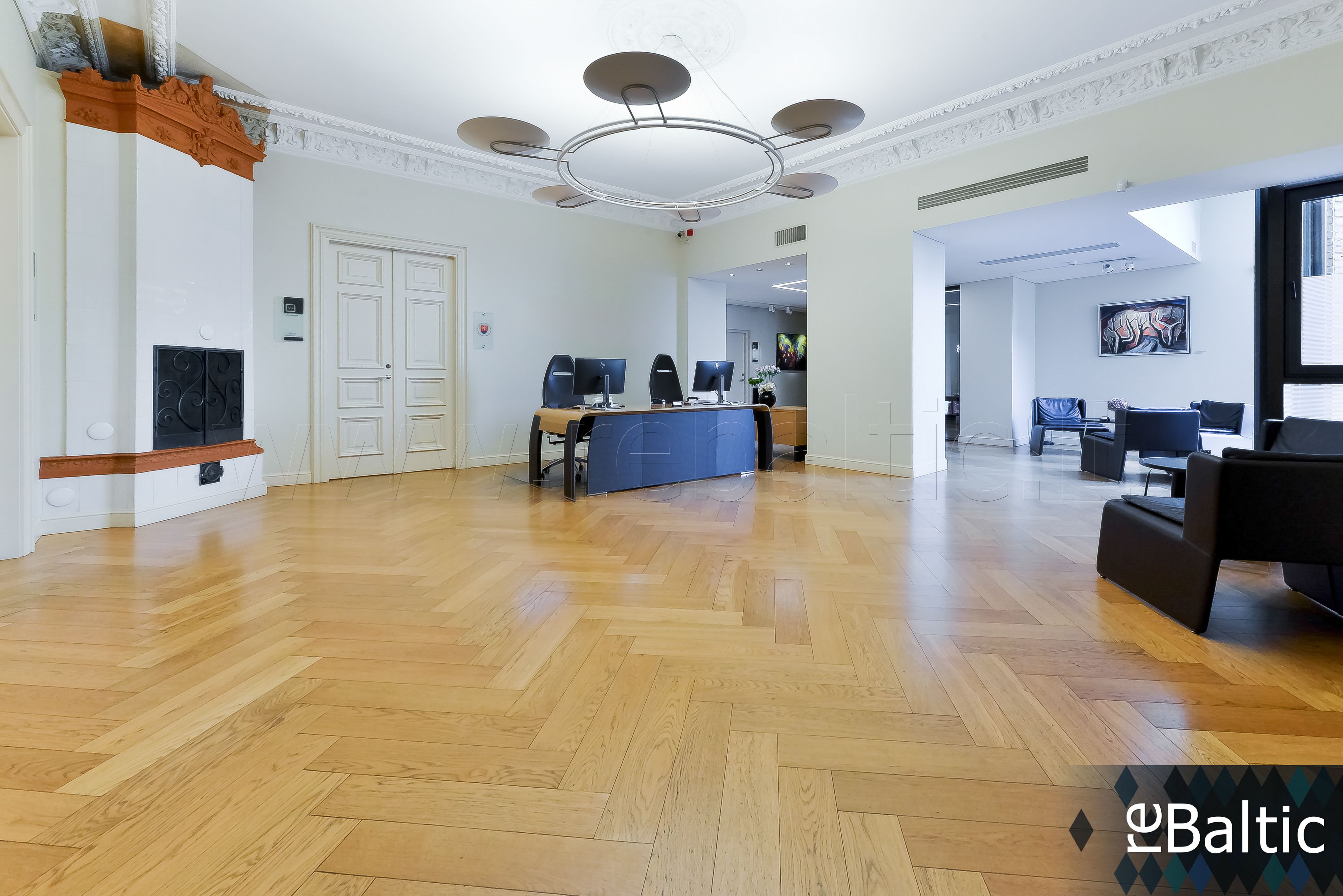 - Gerai įrengtos erdvios patalpos 3.2-3.8 metrų aukščio lubomis istoriniame pastate su autentiškais klasikinio dekoro elementais