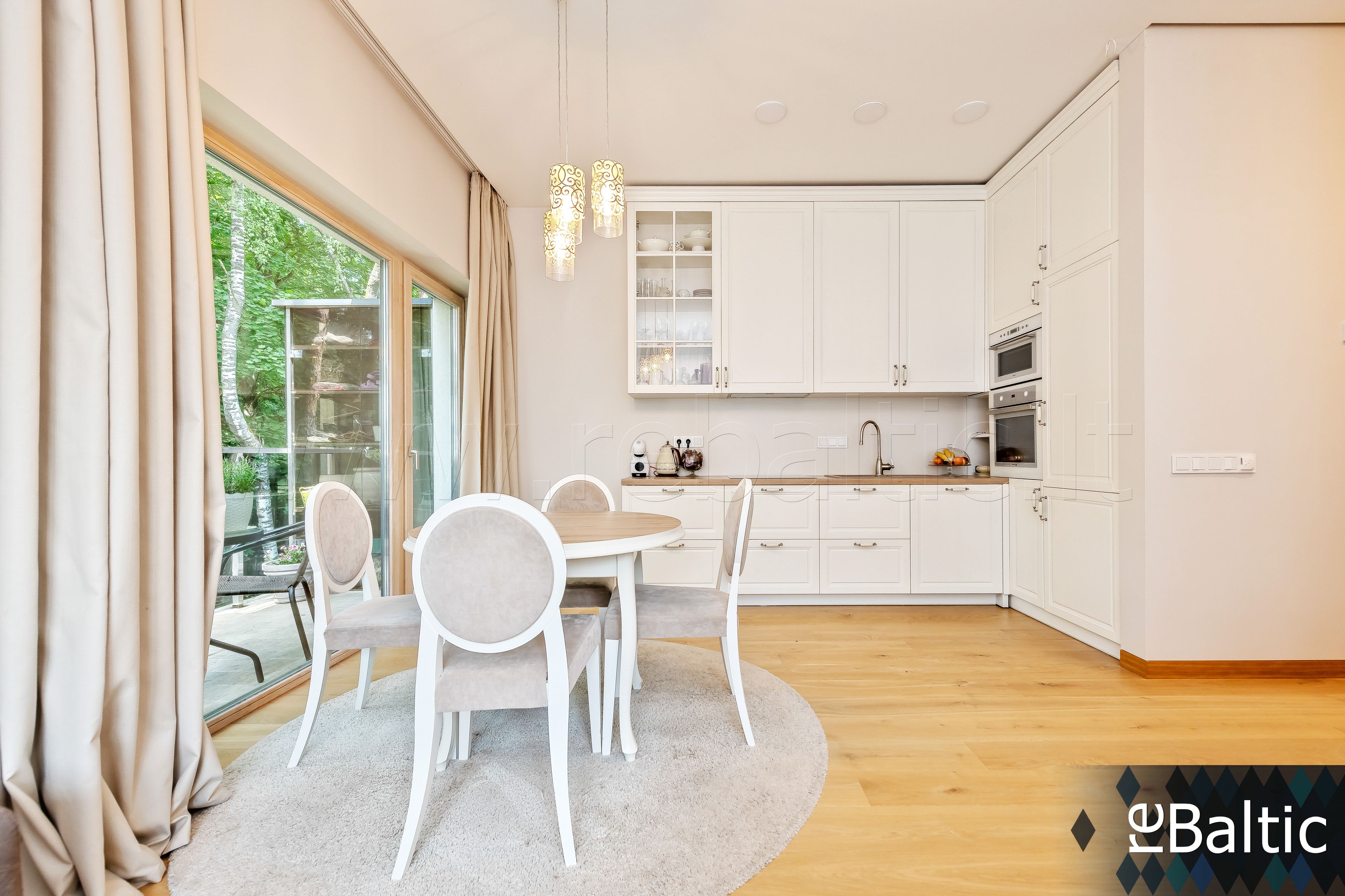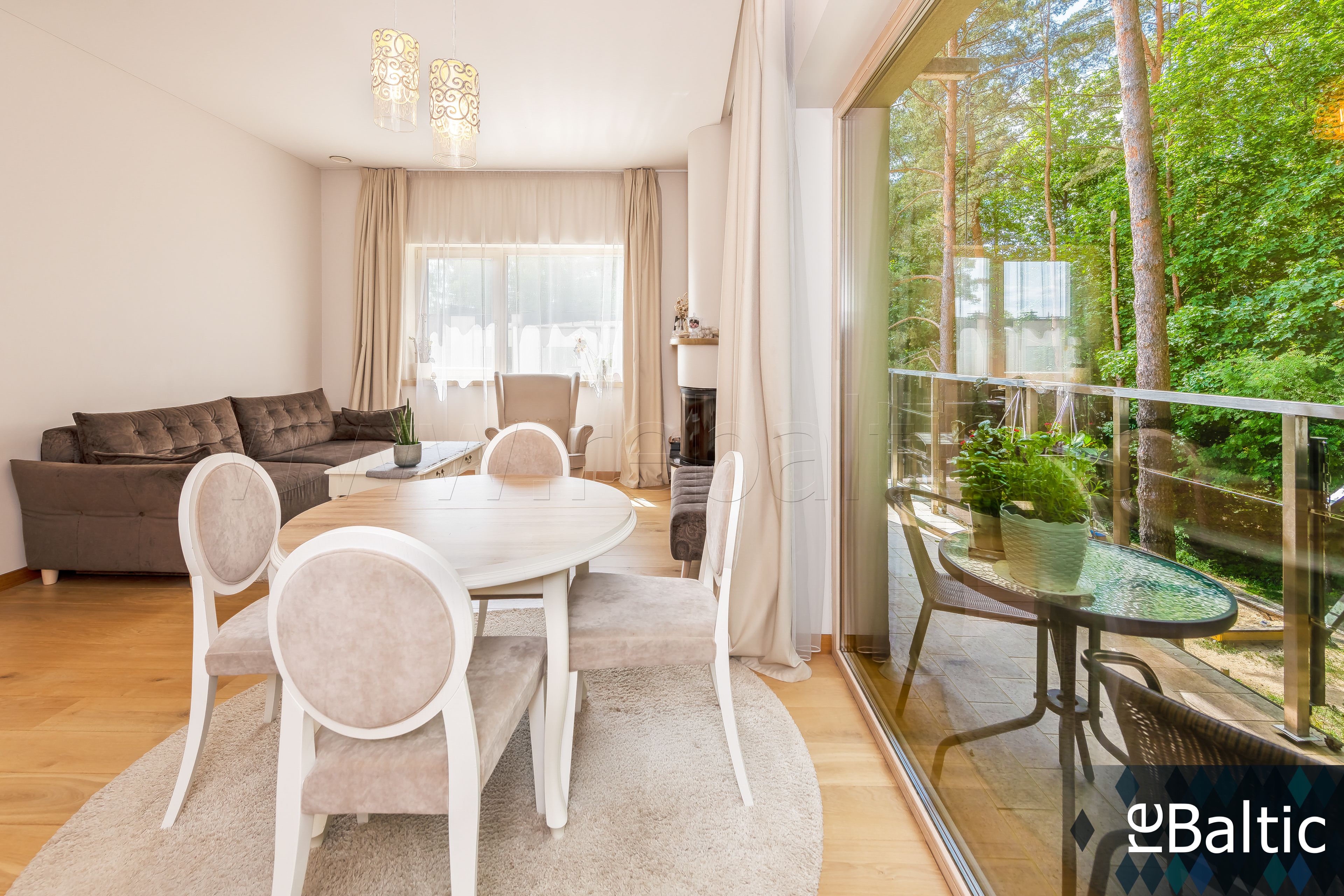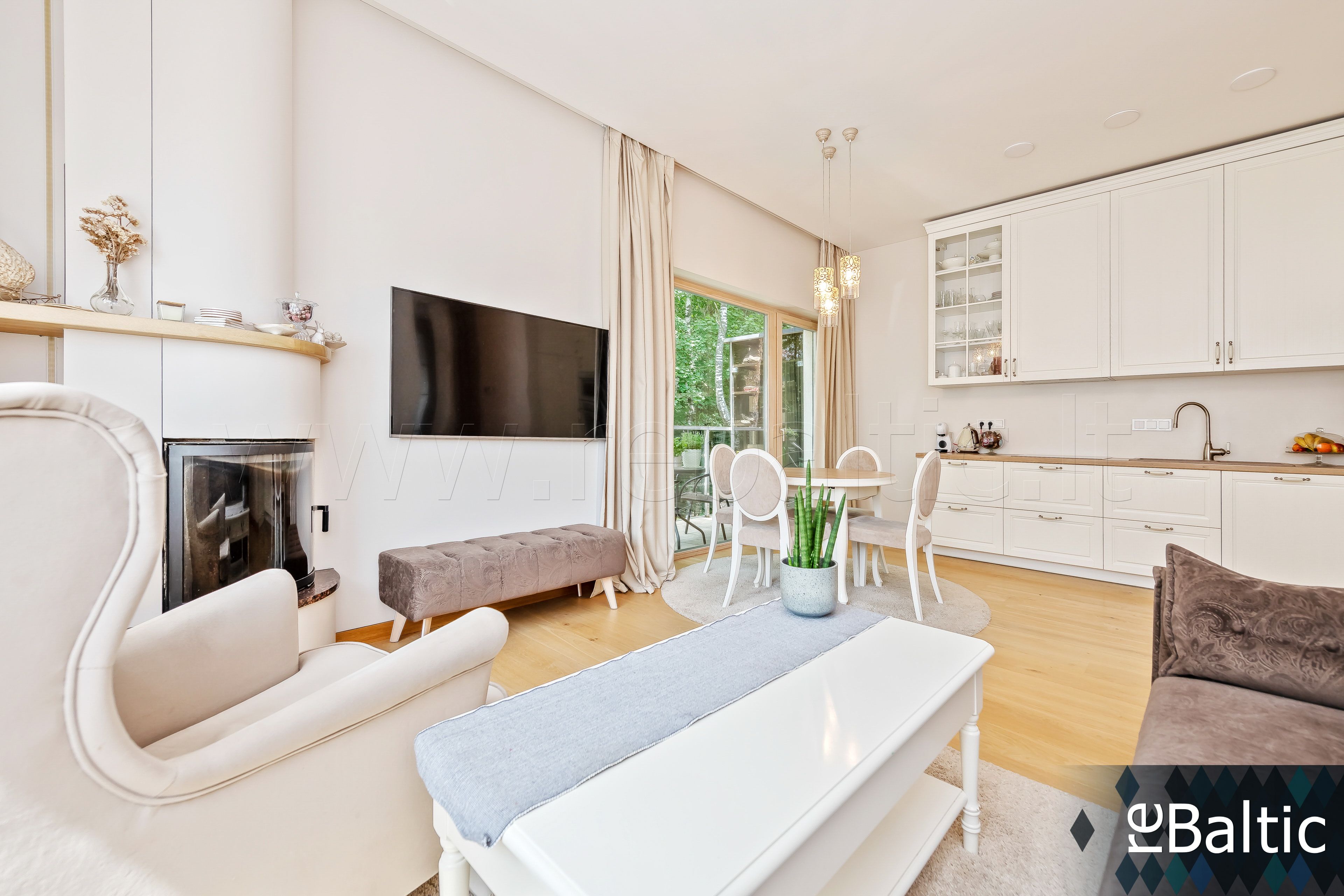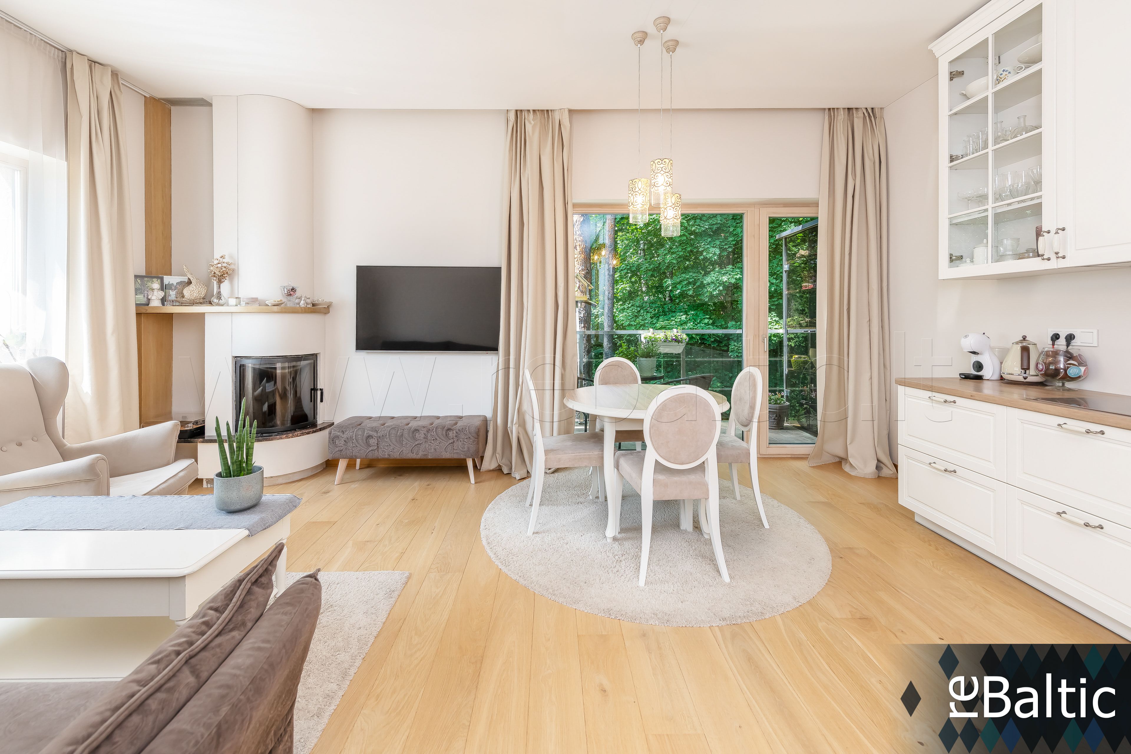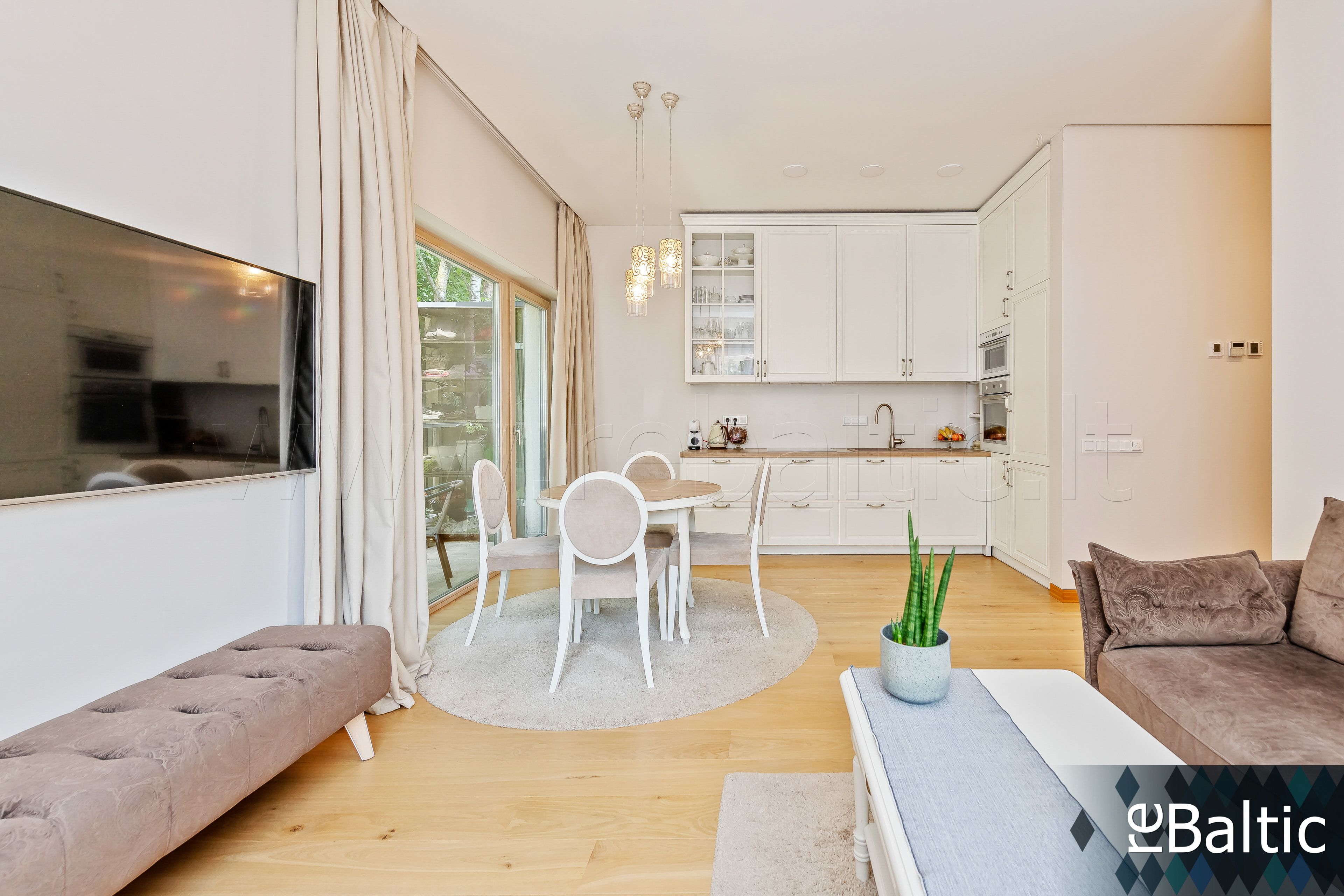 • Svetainė sujungta kartu su virtuve ir valgomuoju (visi langai pietų-vakarų kryptimis), išėjimas į terasą