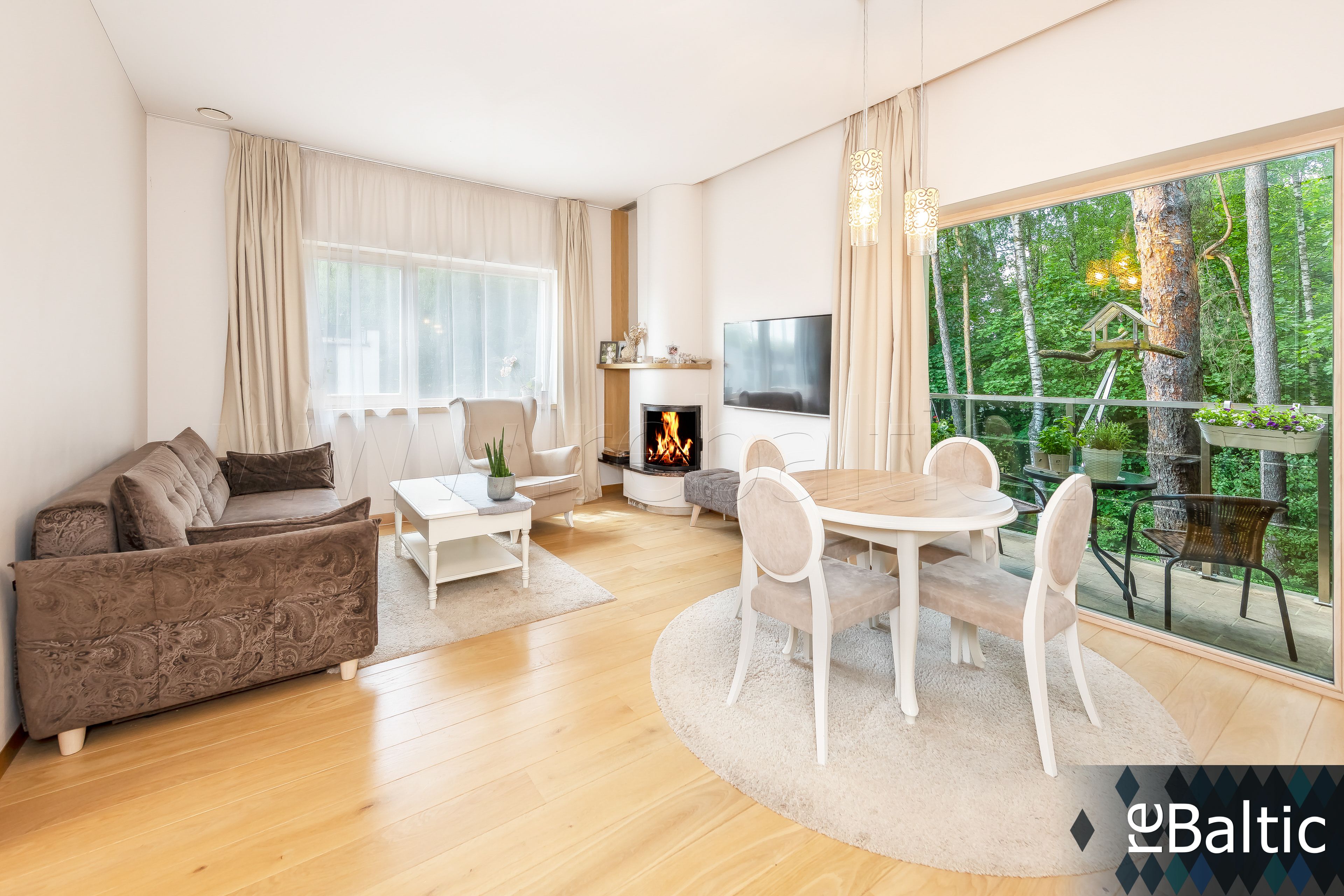 Parduodamas labai jaukus ir šviesus 3 kambarių butas šeimai su židiniu ir terasa Bajoruose, naujos statybos projekte prie pat pušyno „Bajorų Perlas“.
