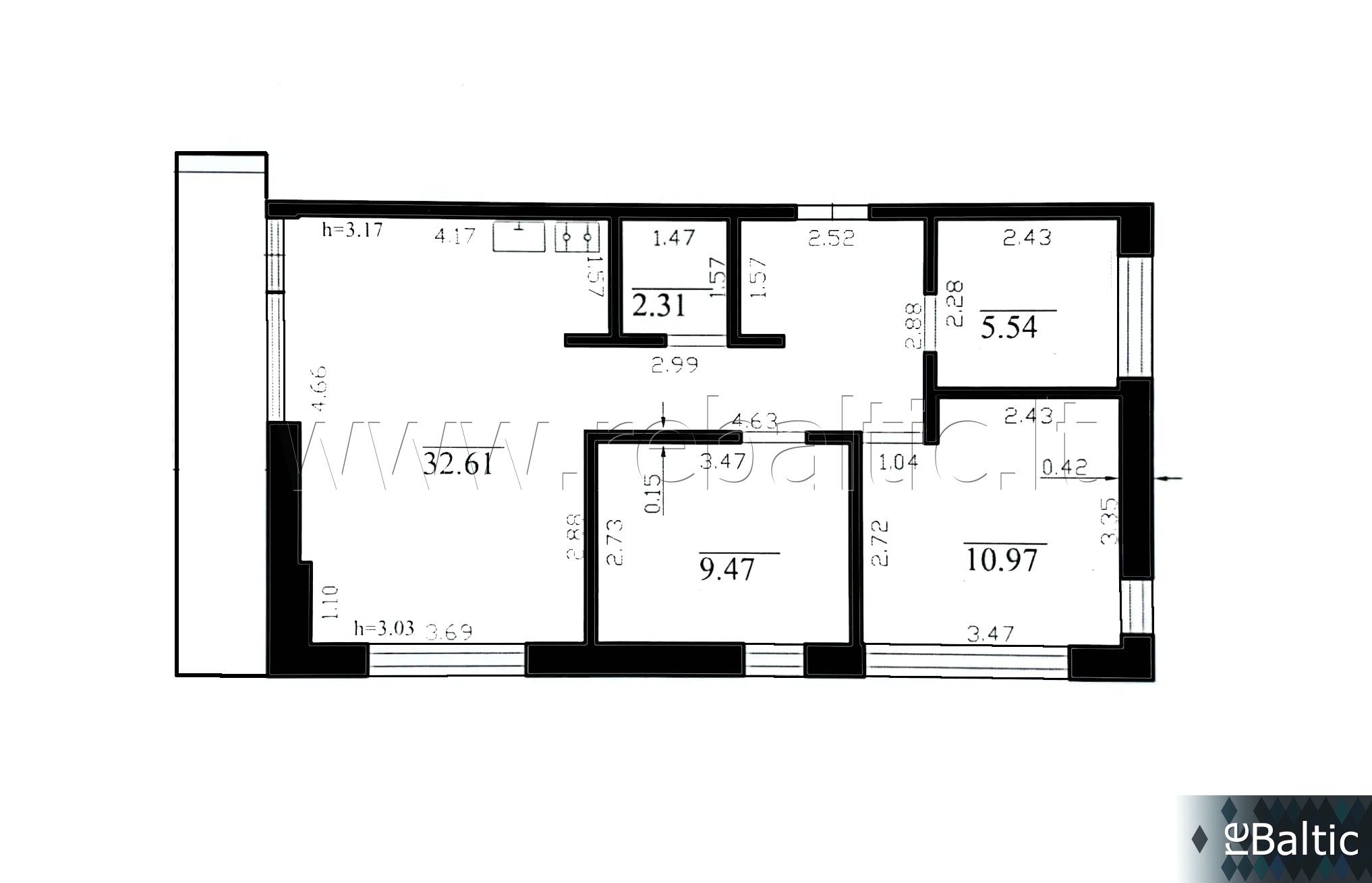 • Gerokai aukštesnės nei standartinės lubos - 3,17-3,03 m. - ypatingas erdvės pojūtis.