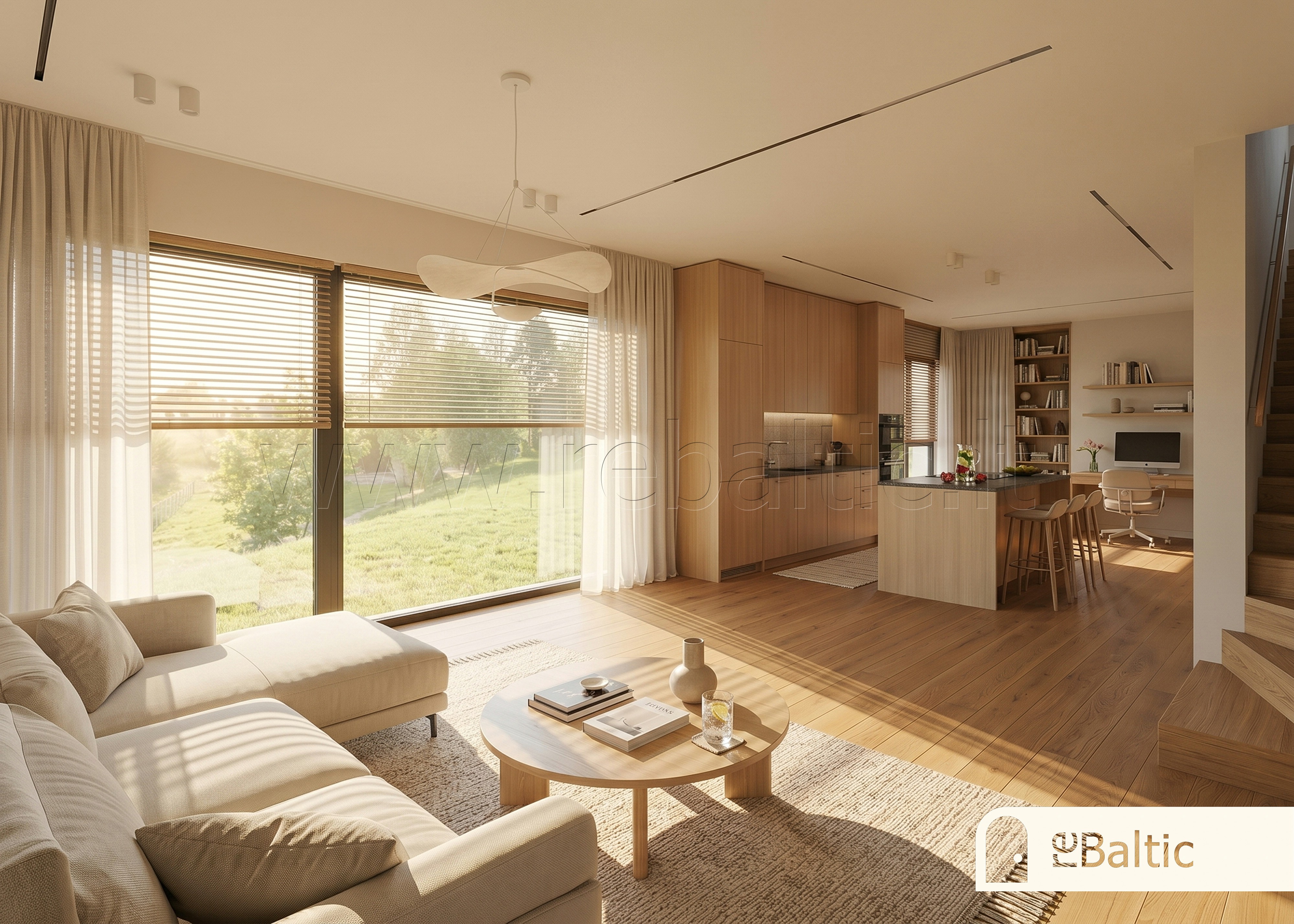 ✓ Svetainėje ~2,8 m. lubos, dideli langai rytų-pietų-šiaurės kryptimis