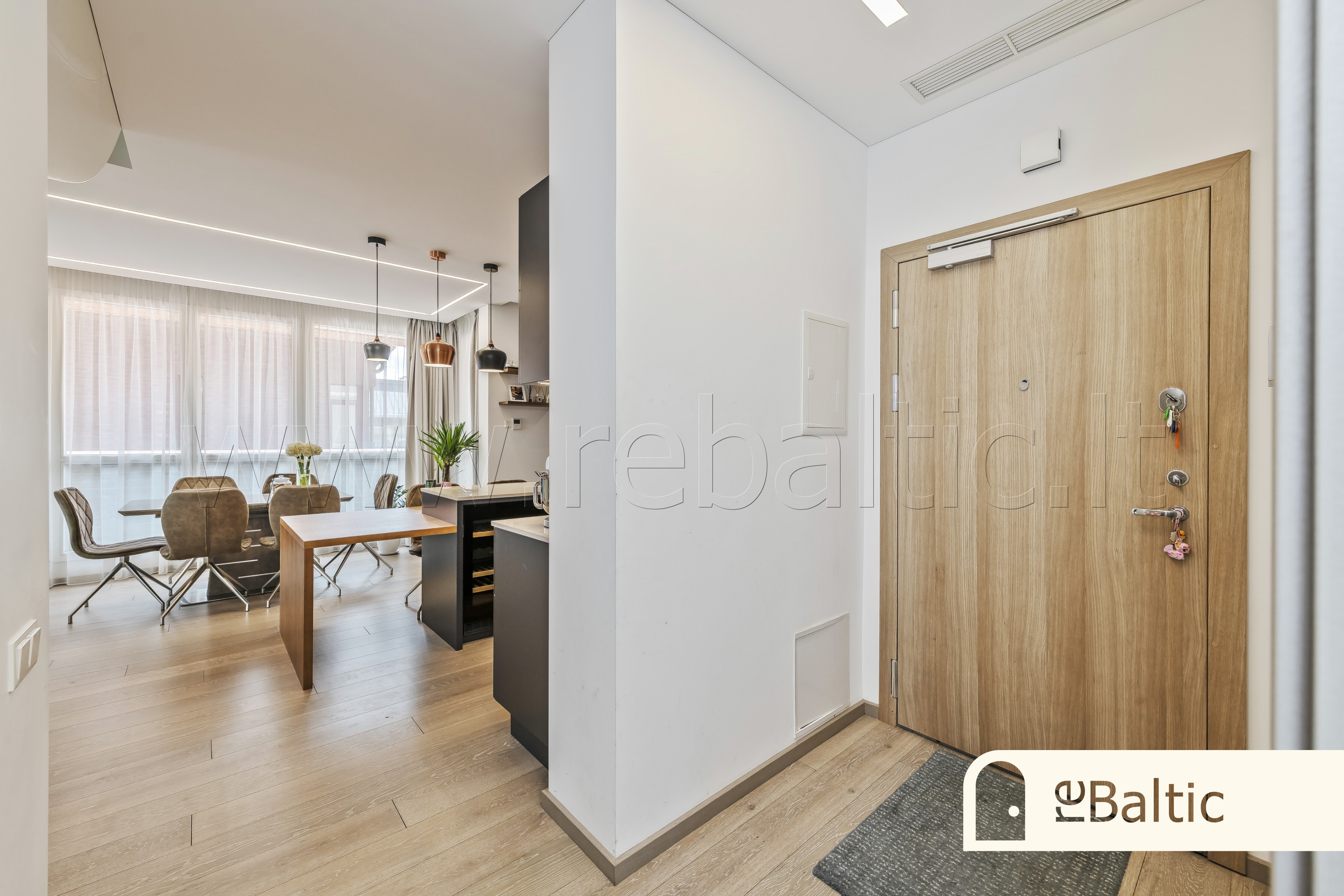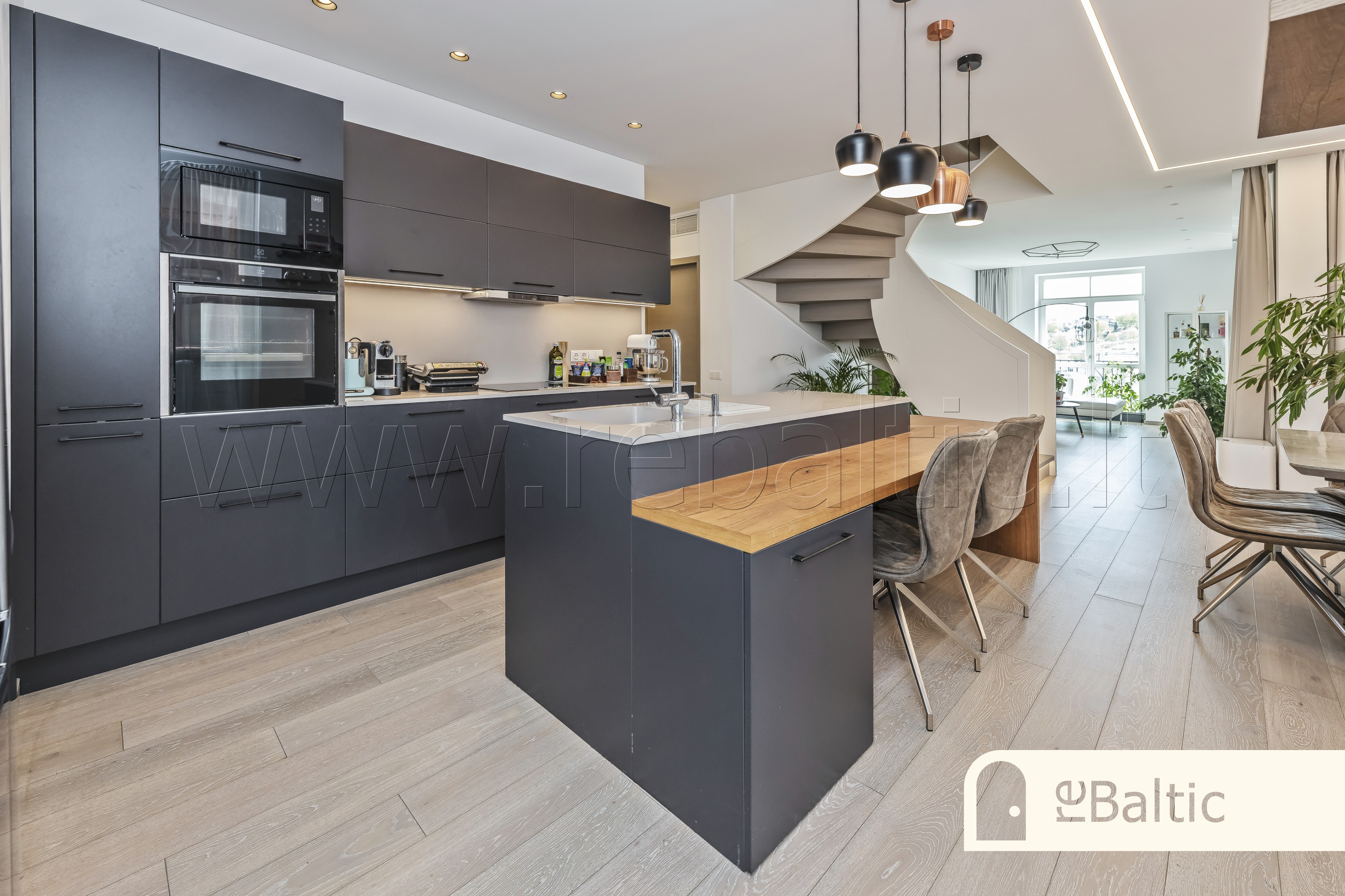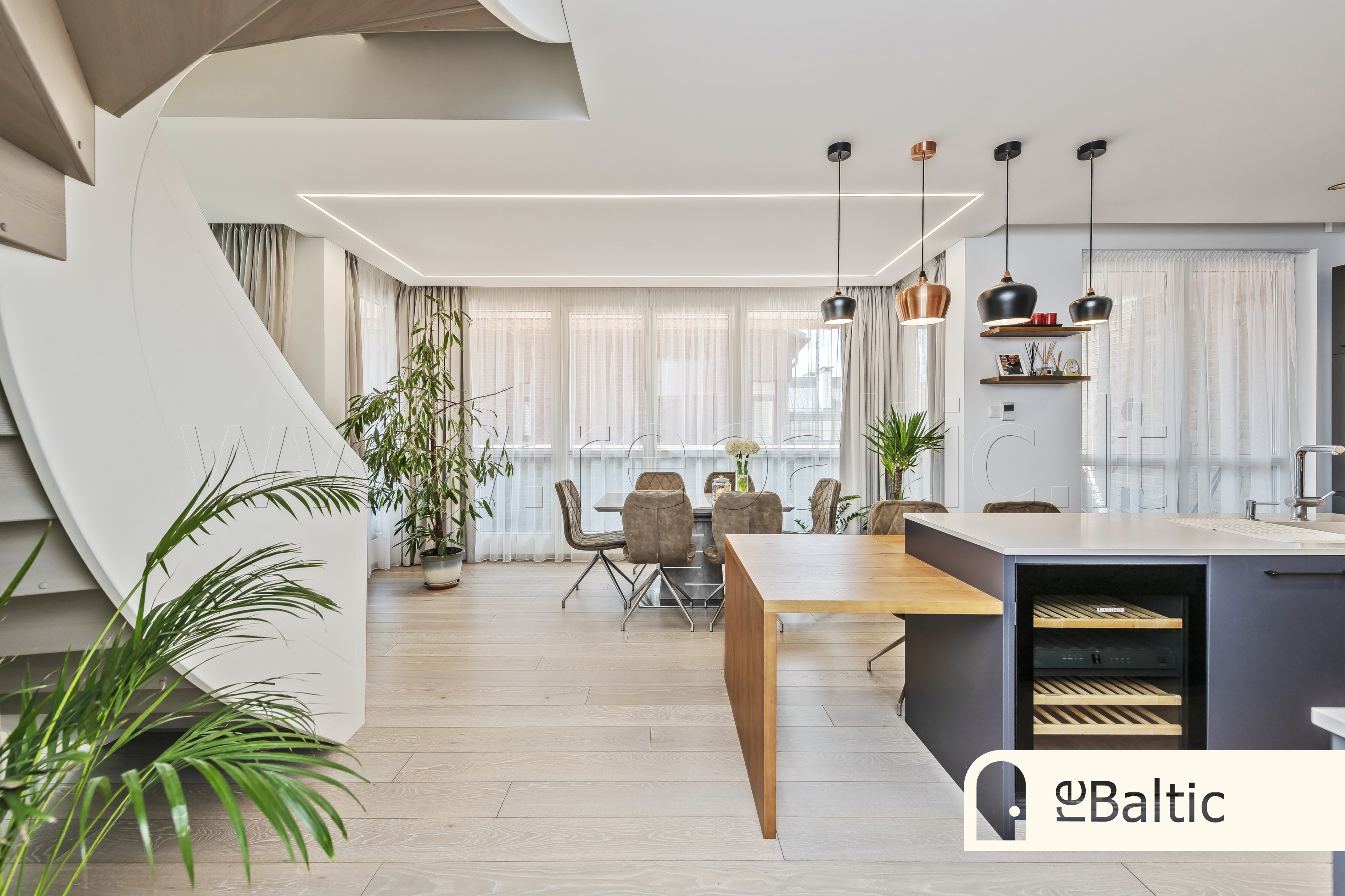 - Dizainerių kurtas išskirtinis interjeras, ažuolinės parketlentės, stilingi šviestuvai, įmontuojami baldai gaminti pagal individualų užsakymą