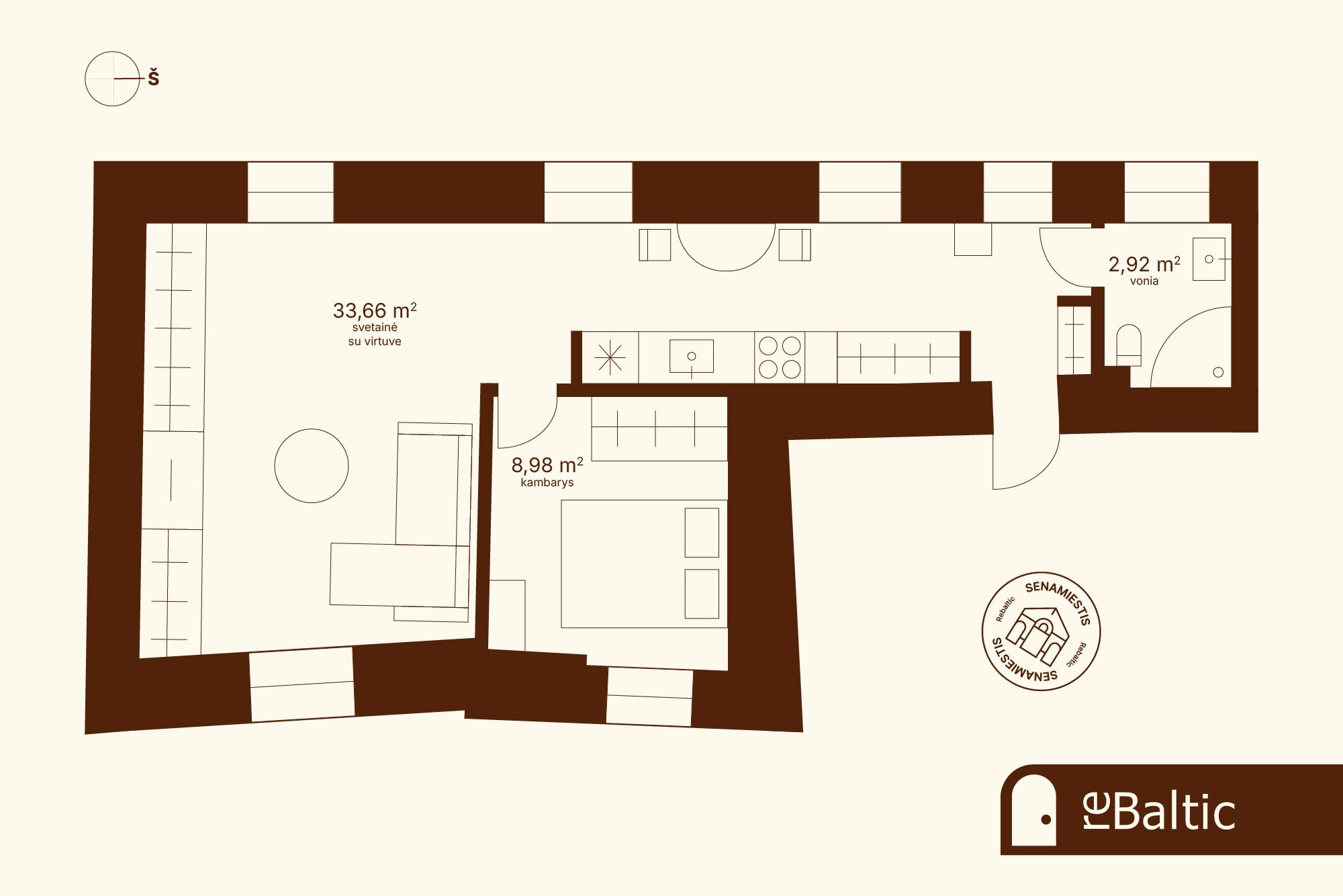 - Įrengta virtuvė su integruota buitine technika