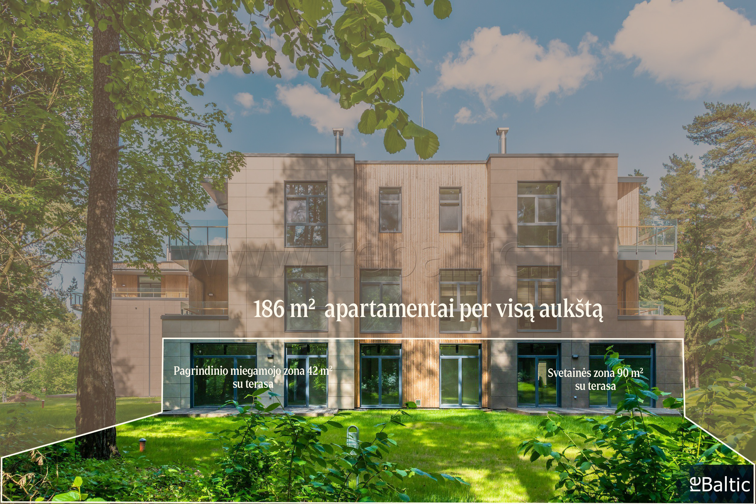 Išskirtiniai penkių kambarių apartamentai su vaizdais į pušyną ir dviem lauko terasomis projekte "Turniškių Dominija", Valakampiuose