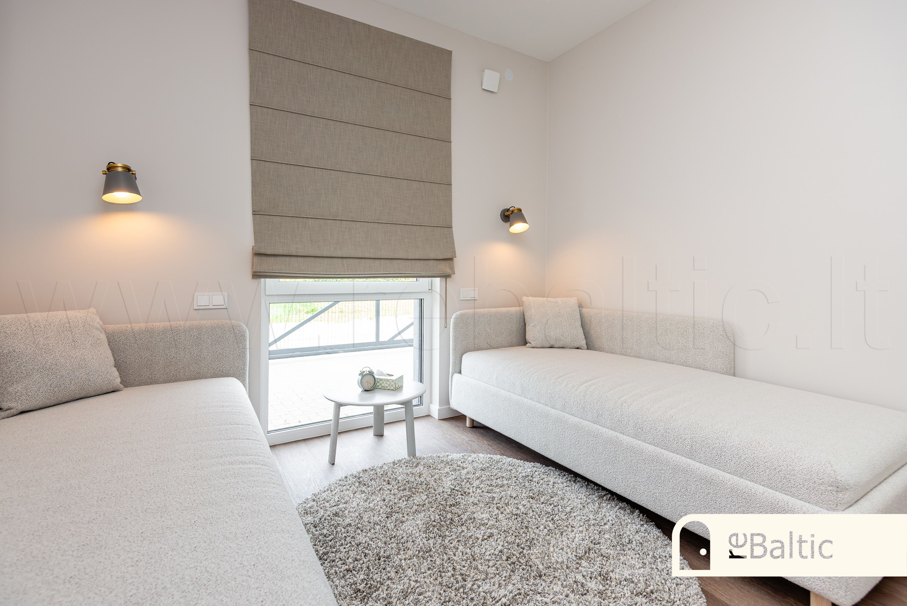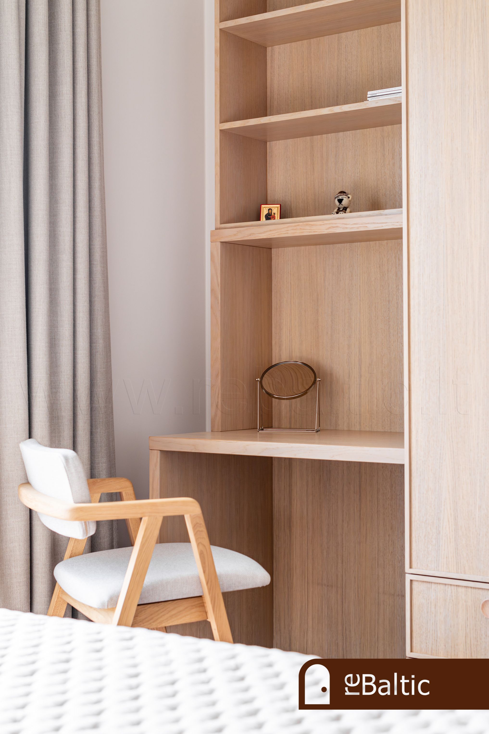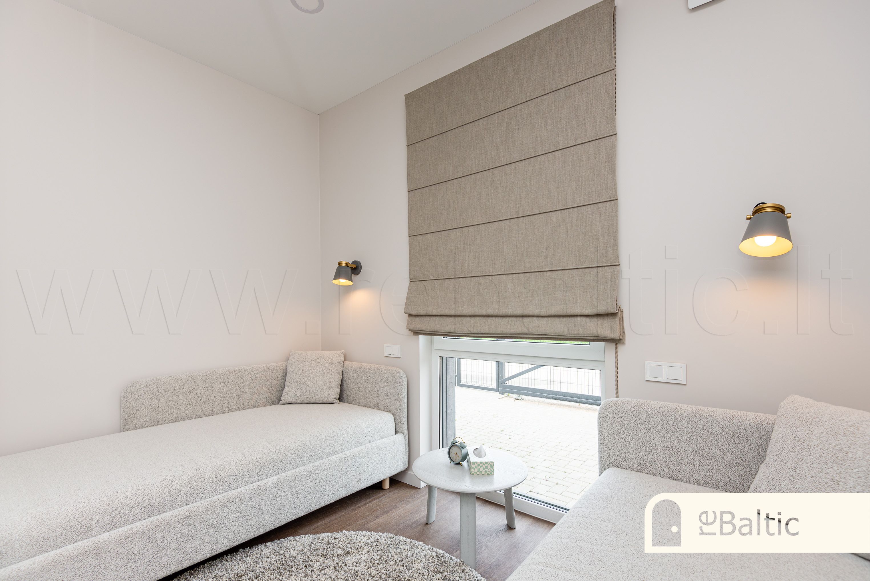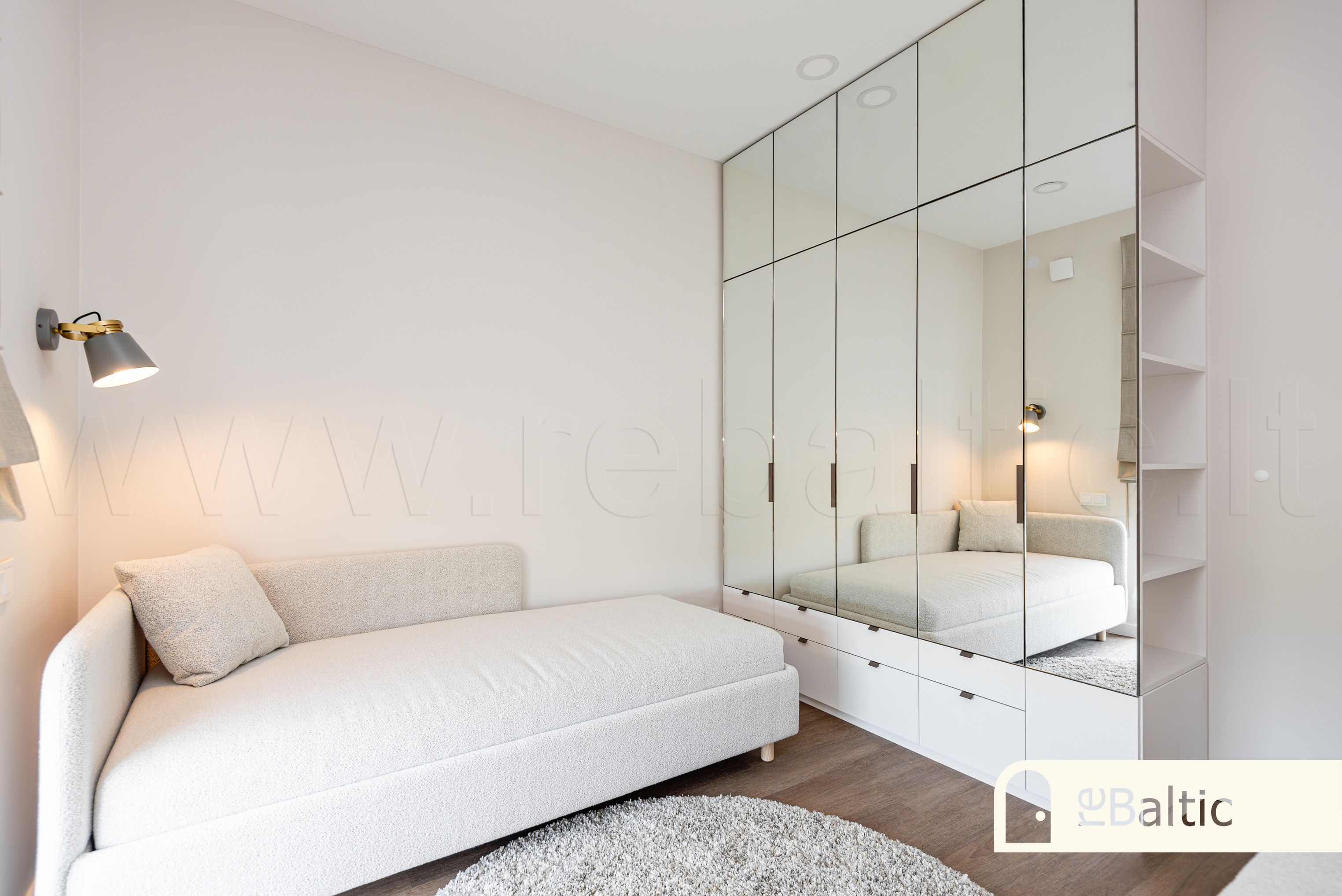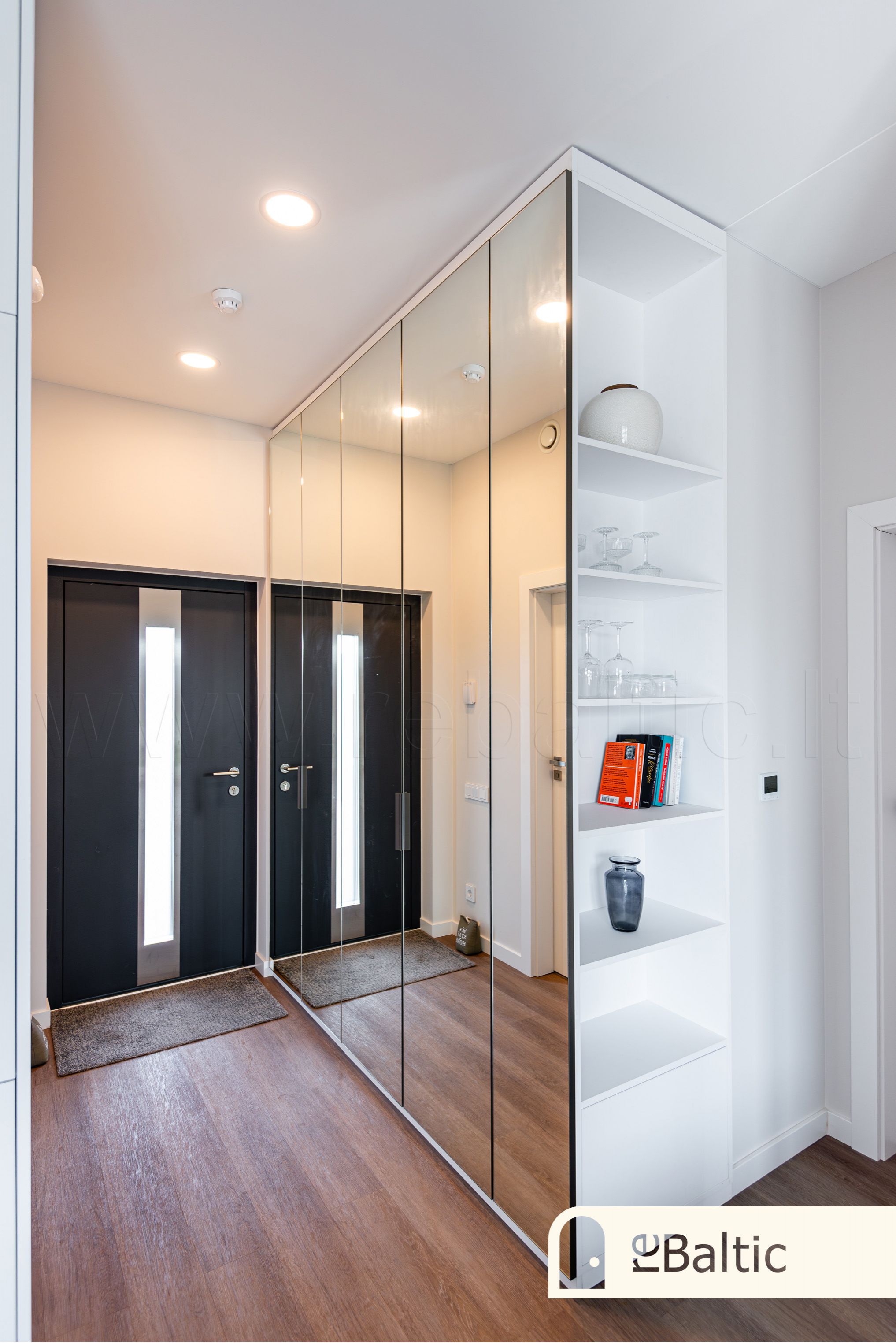- Aukštos klasės įrengimo medžiagos ir baldai, įmontuojami baldai gaminti pagal individualų užsakymą. Stilinga virtuvė, išskirtinės sieninės spintos iki lubų koridoriuje ir viename iš miegamųjų.