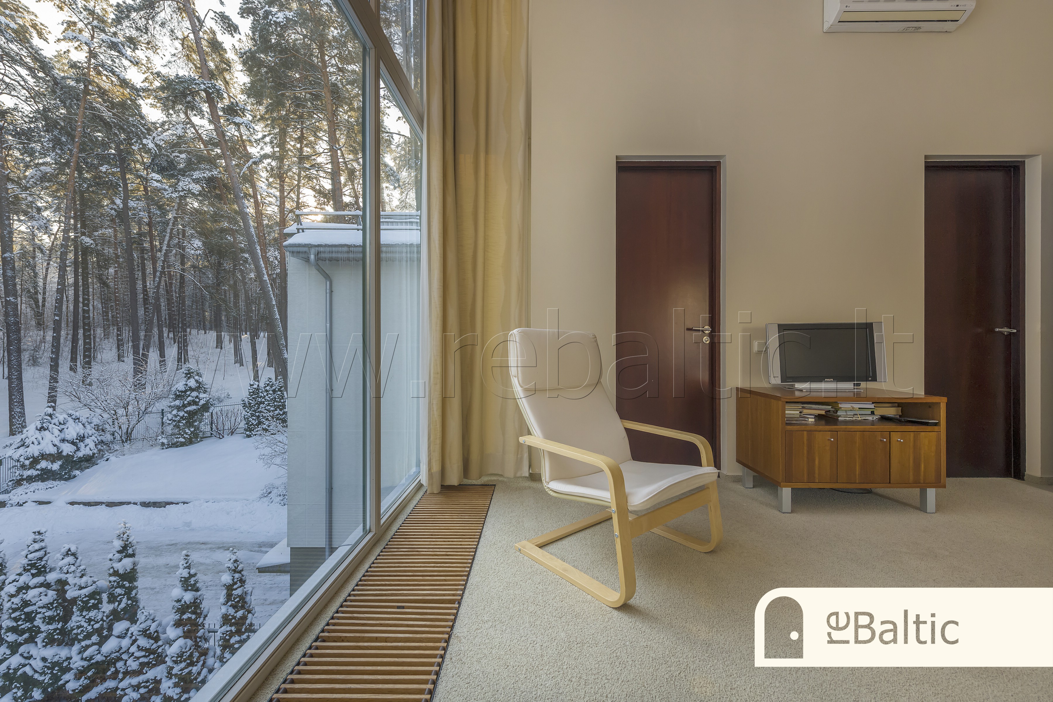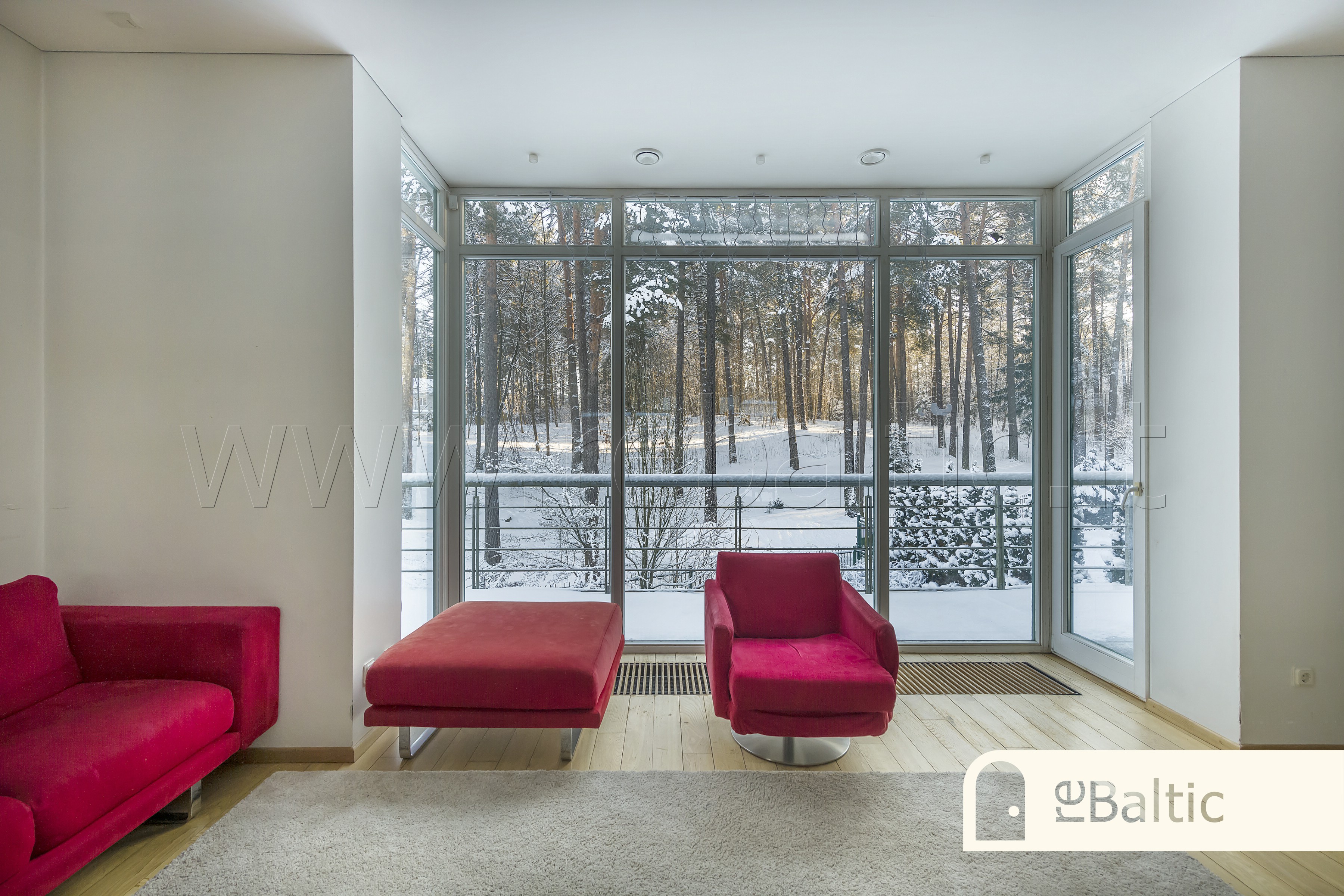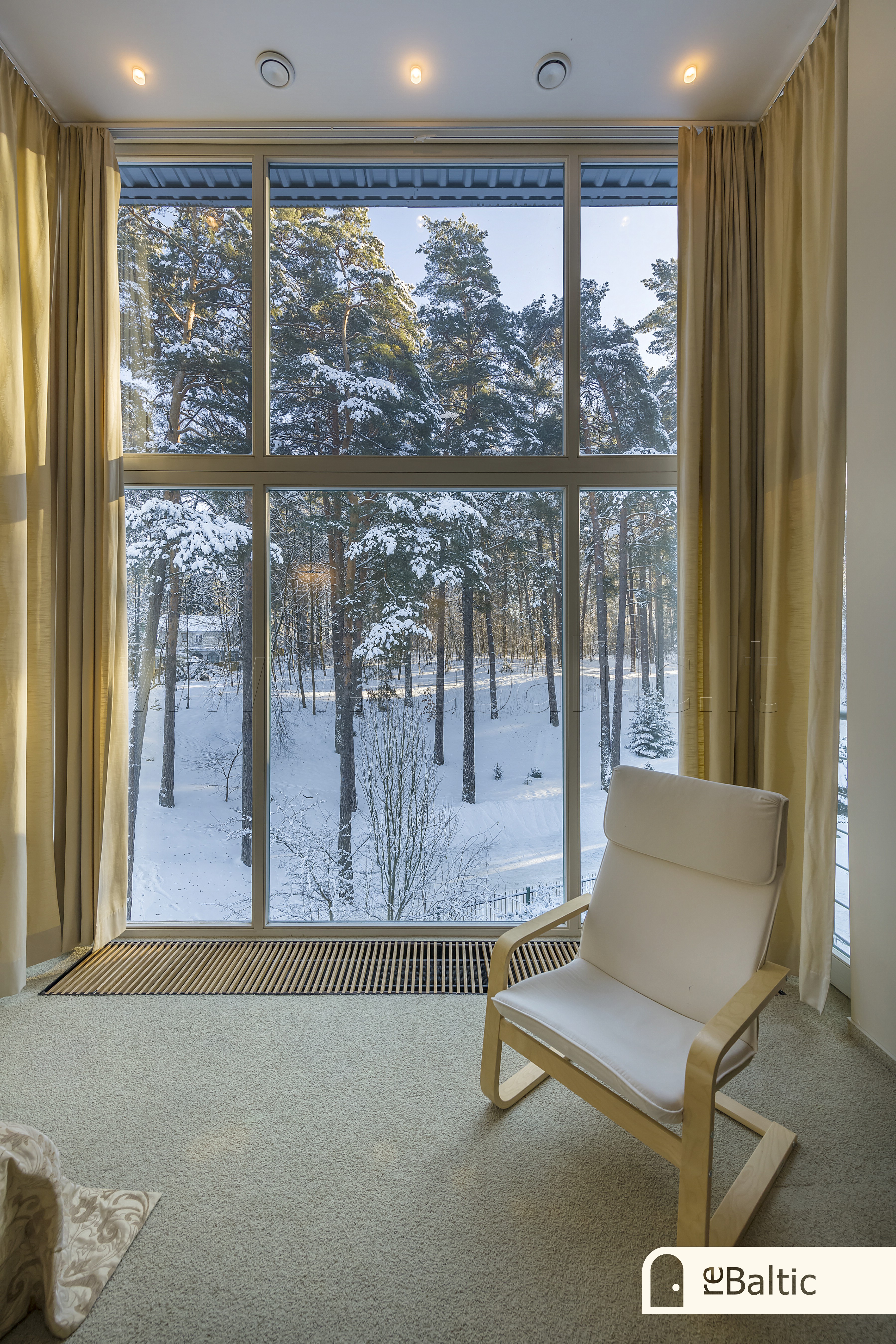 - Trečiame aukšte pagrindinis miegamasis įspūdingo aukščio lubomis ir vaizdais į mišką, su nuosava vonia ir drabužine, dar du miegamieji kambariai, antras vonios kambarys.