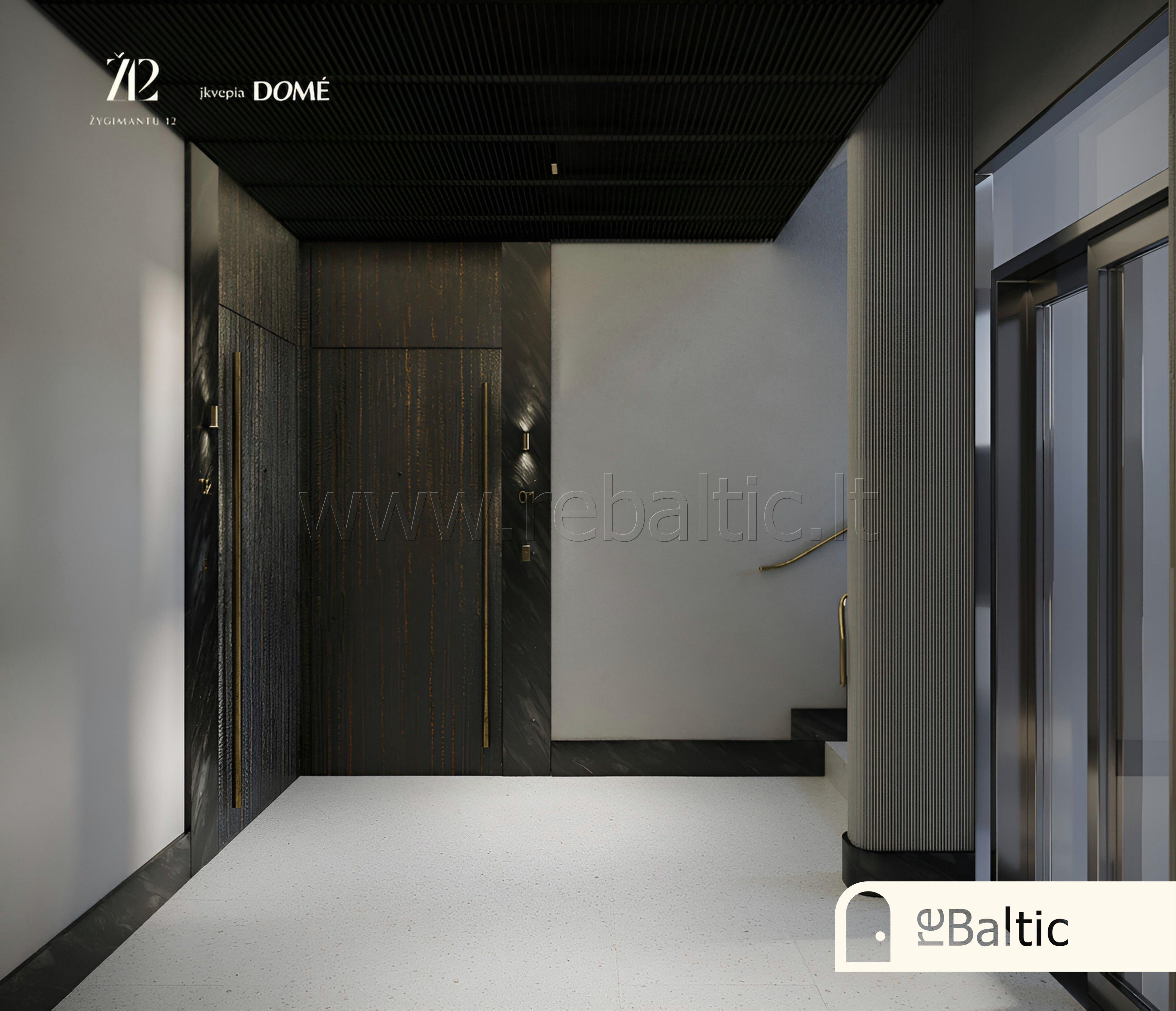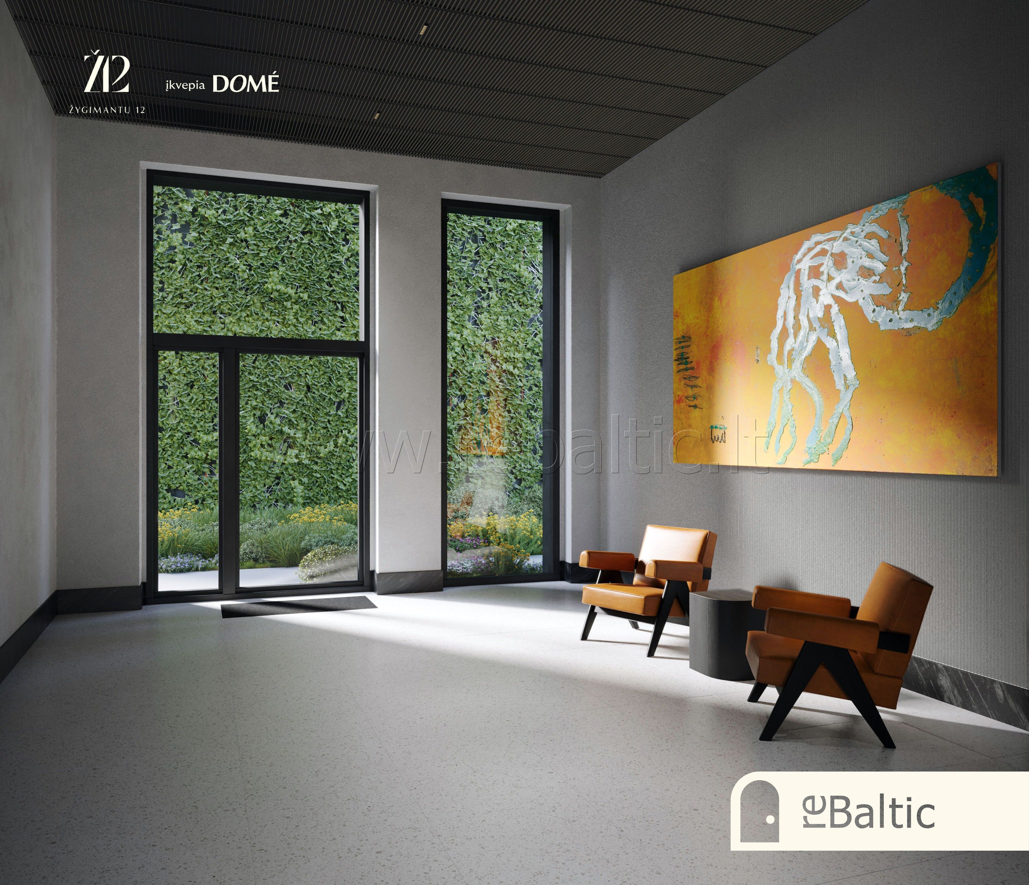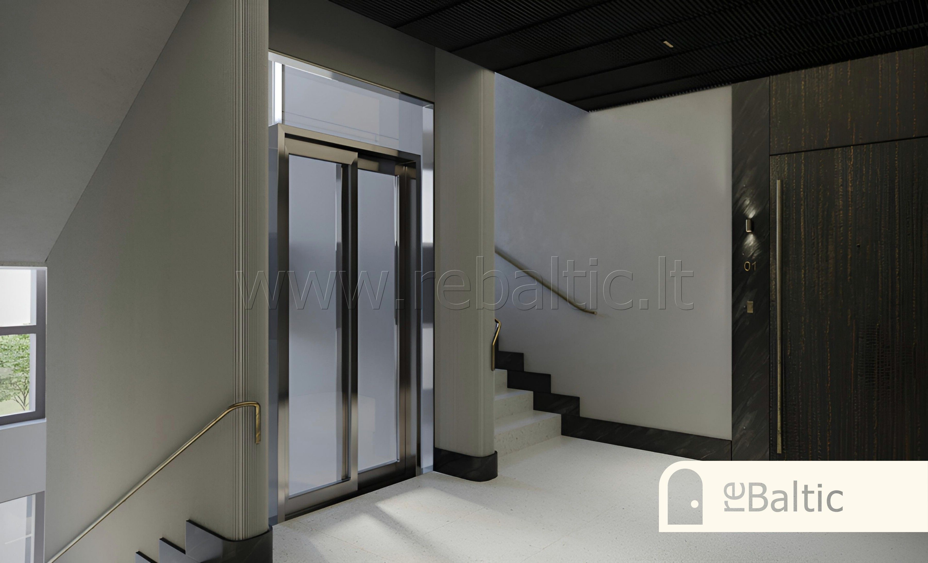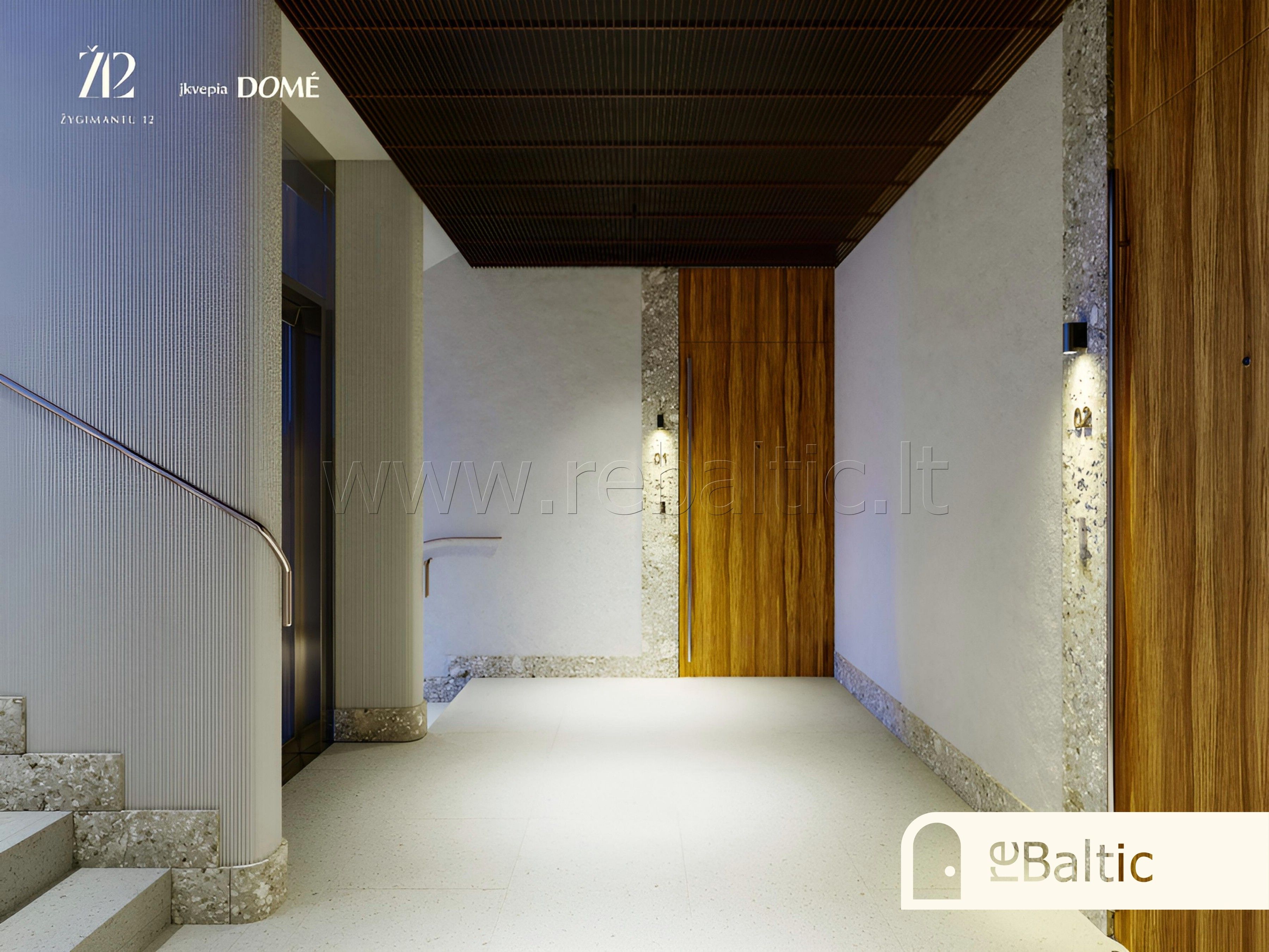 - Laiptinės su kalkakmenio plytelių ir akmens apdaila, butų įėjimo durys – šarvo tipo, su natūralaus egzotiško medžio lukštu (alyvmedžio arba eukalipto), žalvarinėmis ar plieno detalėmis bei išmaniąja spyna, patekimas su piršto atspaudu