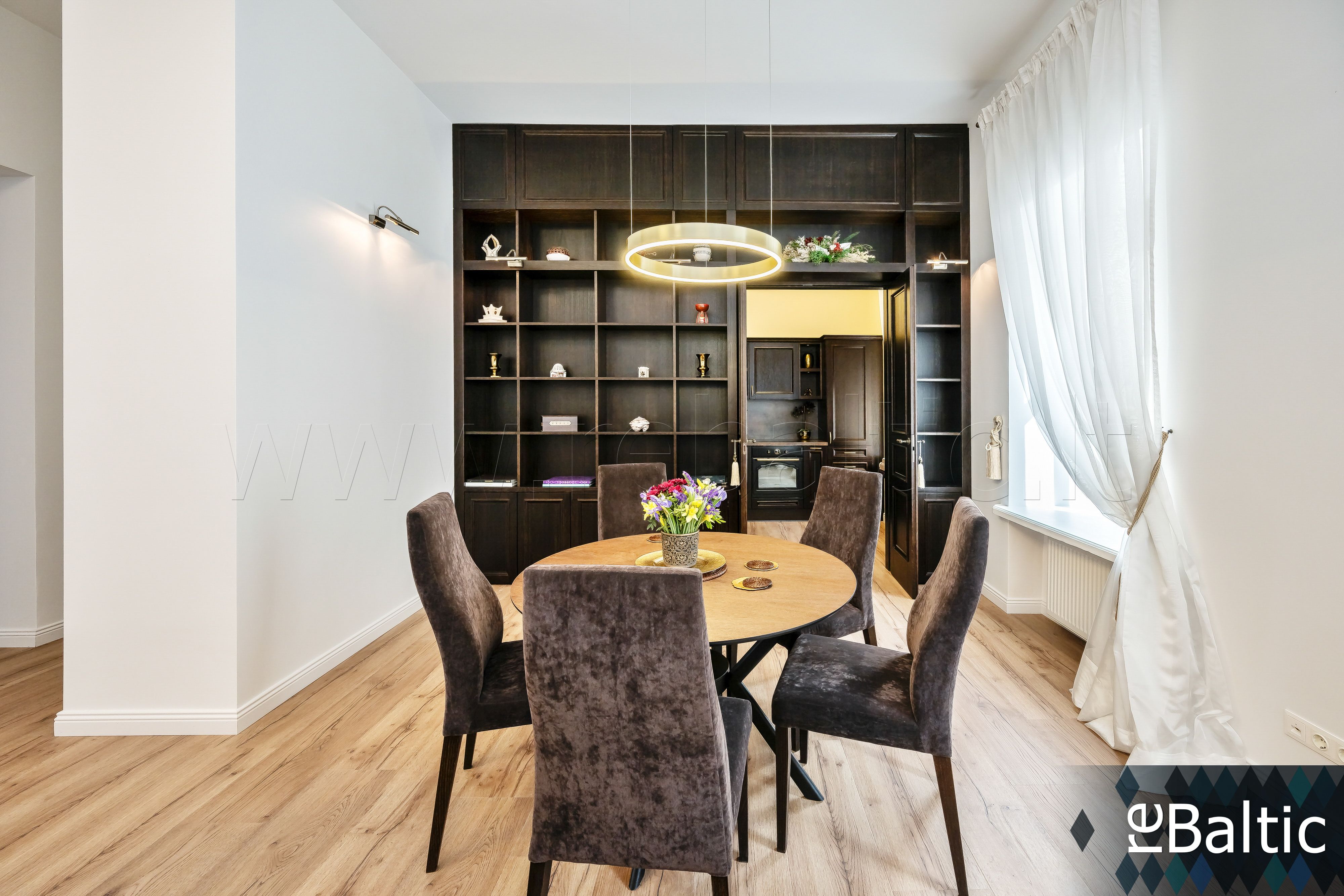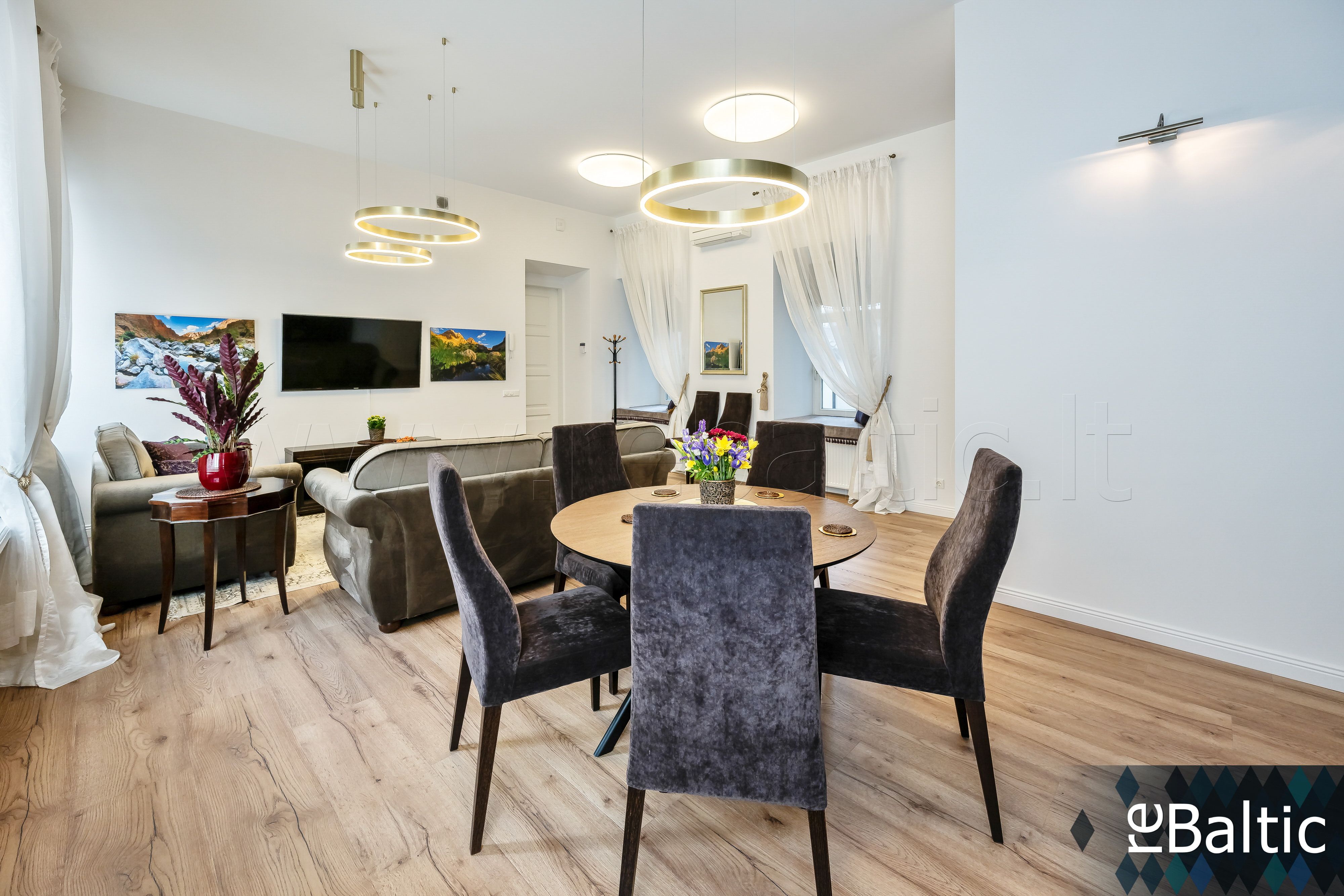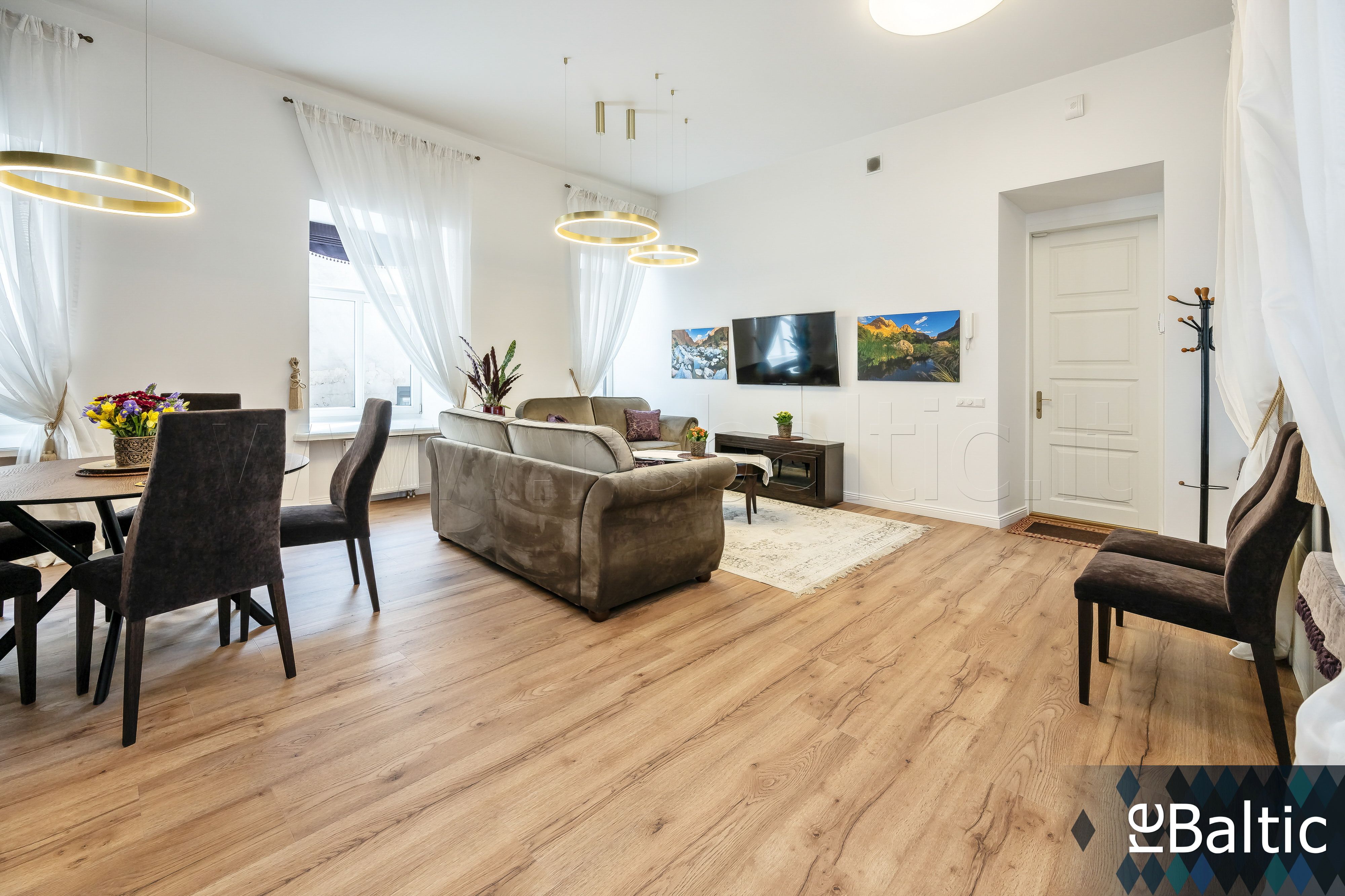 • Svetainė kartu su valgomojo erdve, atskirta virtuvės zona